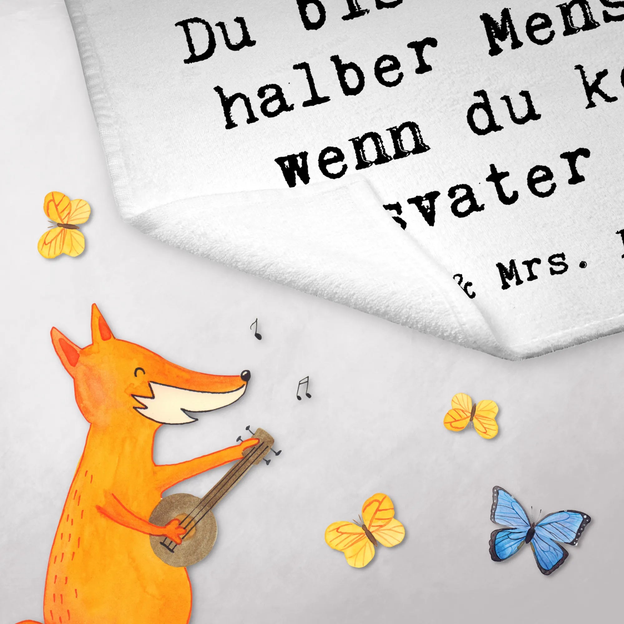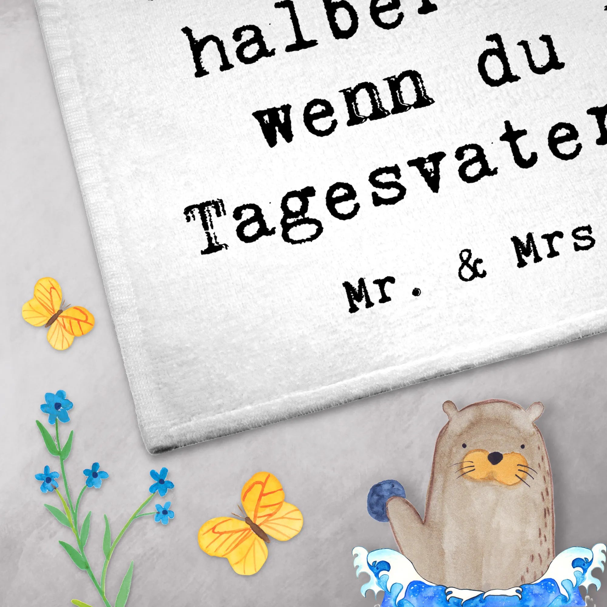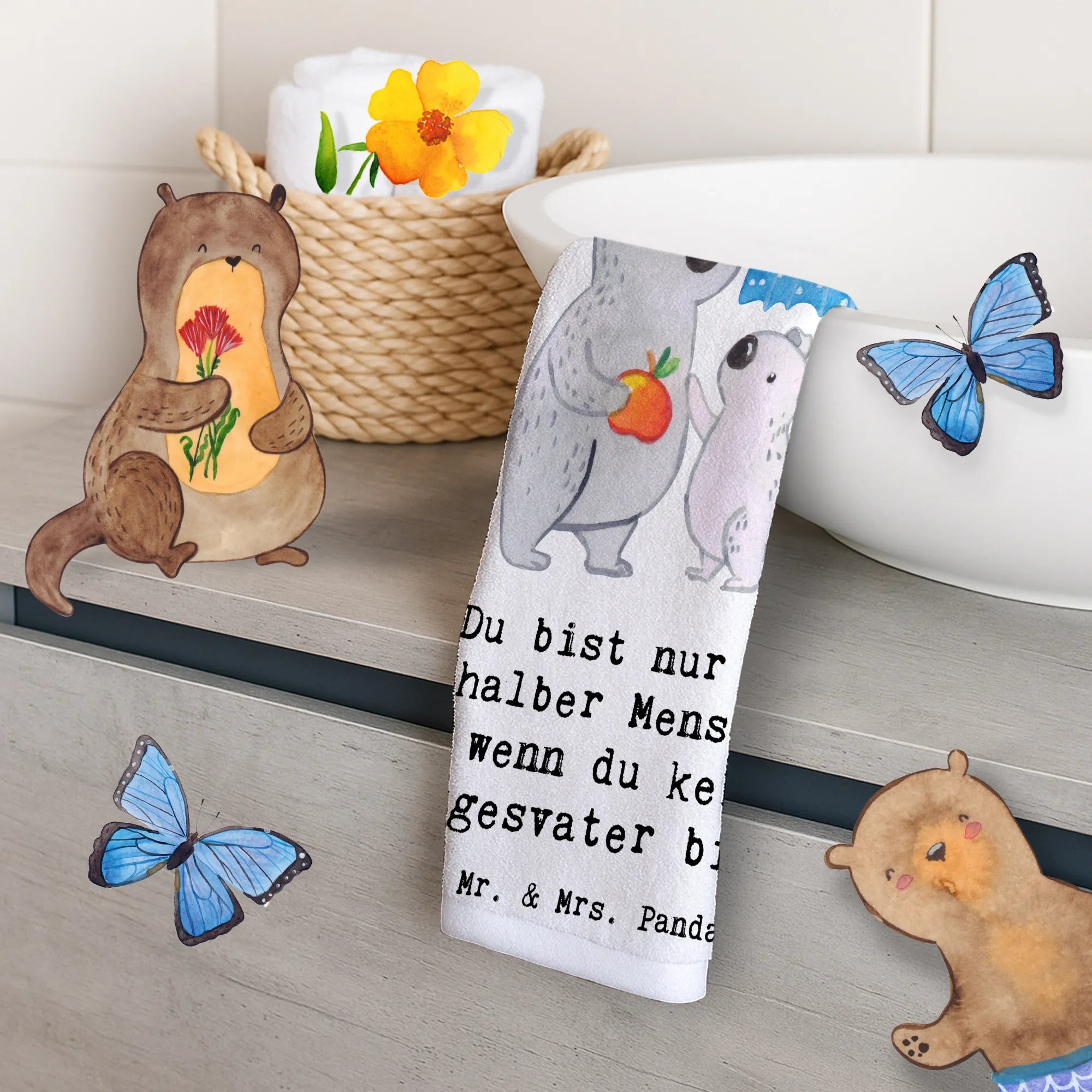 Das Gästetuch "Tagesvater mit Herz" aus der Berufe-Kollektion von Mr. & Mrs. Panda ist das perfekte Geschenk für all die liebevollen Tagesväter da draußen! Mit einem süßen Motiv eines Koalas, der ein kleines Koala-Kind unter einem Regenschirm schützt und ihm einen Apfel bringt, versprüht dieses Handtuch jede Menge Charme und Wärme.