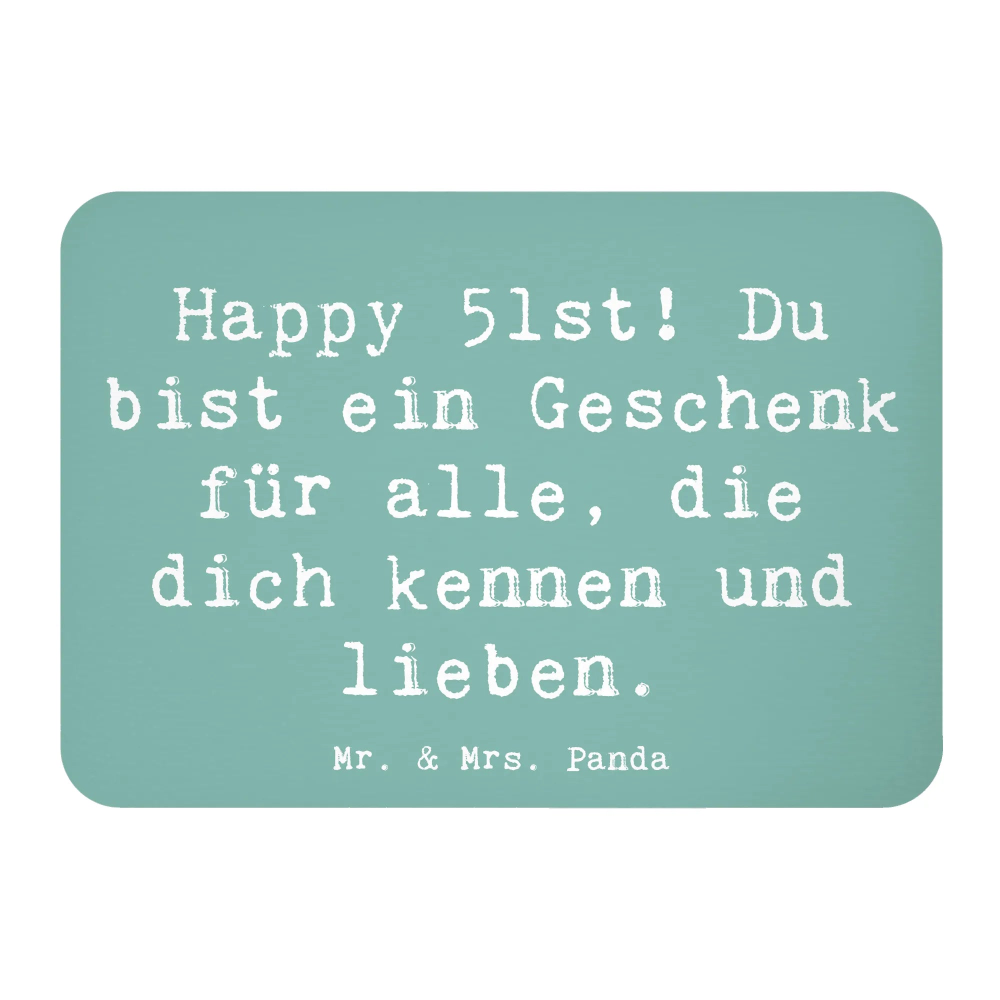 Herzlichen Glückwunsch zum 51. Geburtstag! Der Kühlschrankmagnet "Happy 51st! Du bist ein Geschenk für alle, die dich kennen und lieben." von Mr. & Mrs. Panda ist das ideale Geschenk für diesen ganz besonderen Anlass.