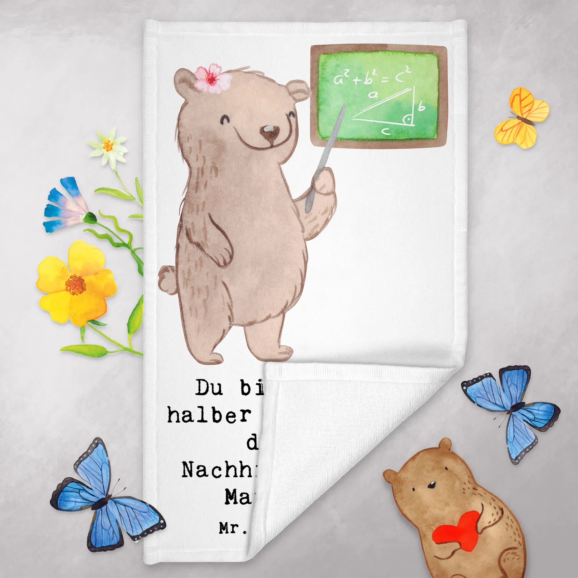 Das Gästehandtuch "Nachhilfelehrerin Mathe mit Herz" von Mr. & Mrs. Panda ist das perfekte Geschenk für alle Mathematik Nachhilfelehrerinnen! Es ist mehr als nur ein Handtuch - es ist ein liebevolles und durchdachtes Geschenk, das jeder Mathe-Nerd und Nachhilfelehrer sicher zu schätzen weiß. Mit seinem charmanten Design, das einen süßen Bären zeigt, der vor einer Schultafel steht und unterrichtet, bringt dieses Handtuch einen Hauch von Freude und Wärme in jedes Badezimmer.