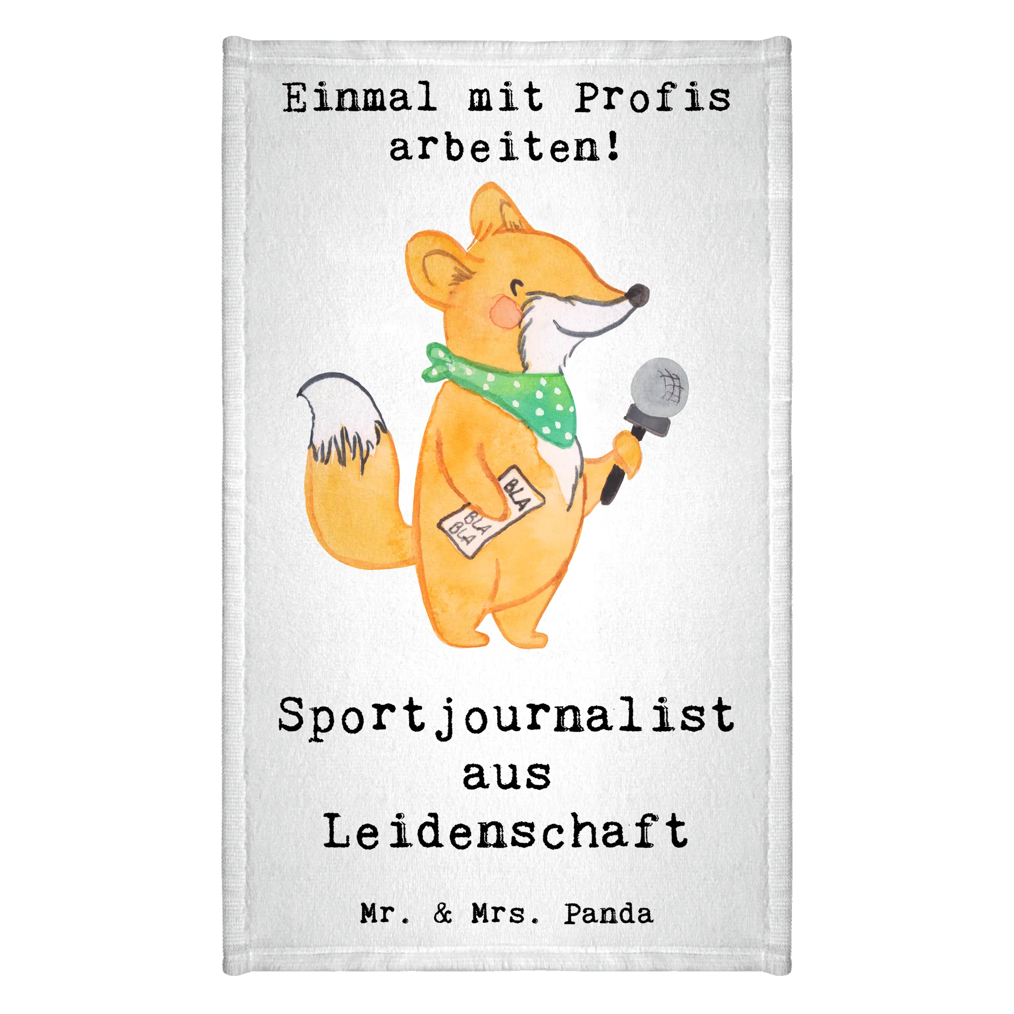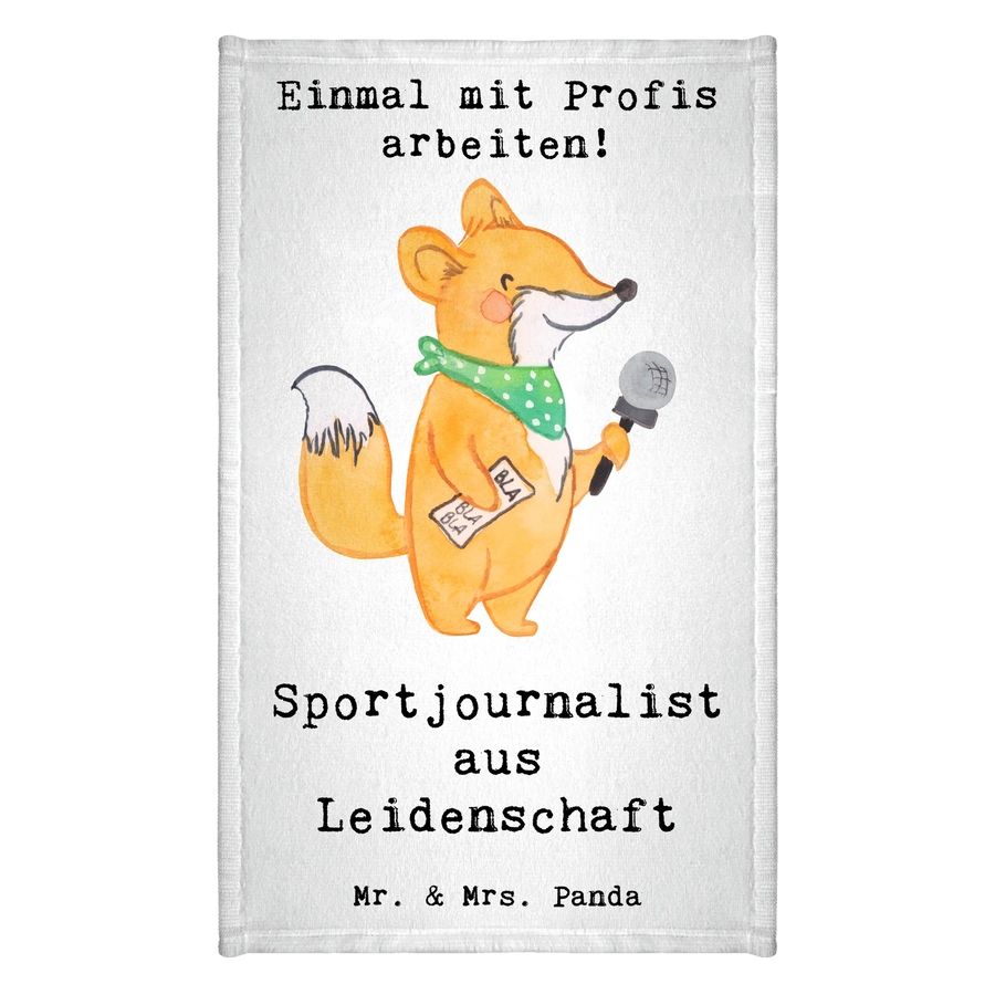 Das Gästehandtuch "Sportjournalist aus Leidenschaft" von Mr. & Mrs. Panda ist das perfekte Geschenk für Sportjournalisten und alle, die die Welt des Sports lieben. Mit einem süßen Motiv eines Fuchses, der begeistert in ein Mikrofon spricht, bringt dieses Handtuch nicht nur Farbe in jedes Badezimmer, sondern auch ein Lächeln auf die Gesichter deiner Gäste.