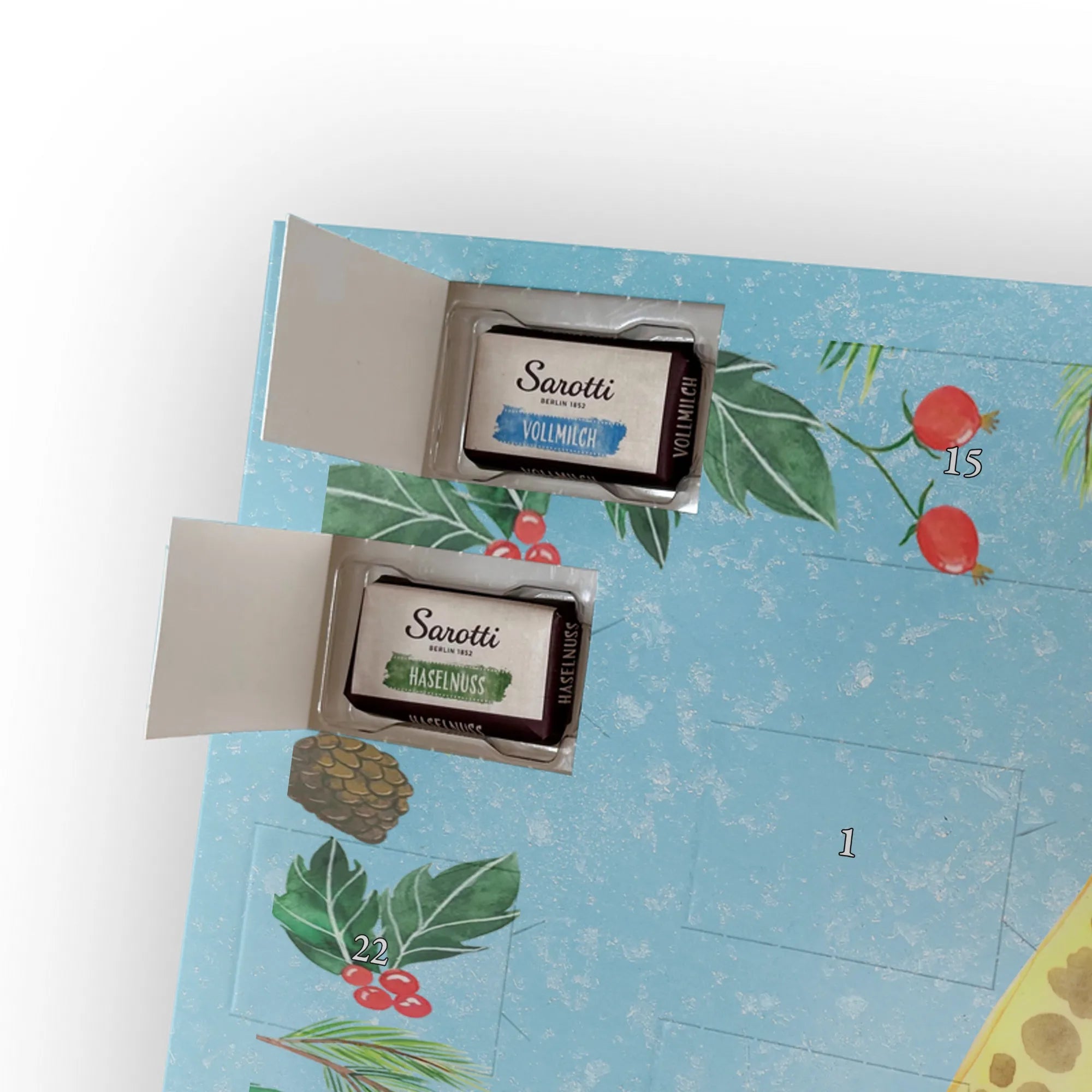 Schokoladen Adventskalender Giraffe Kind - Kinder Schokolade - mit Spruch - Eisblau