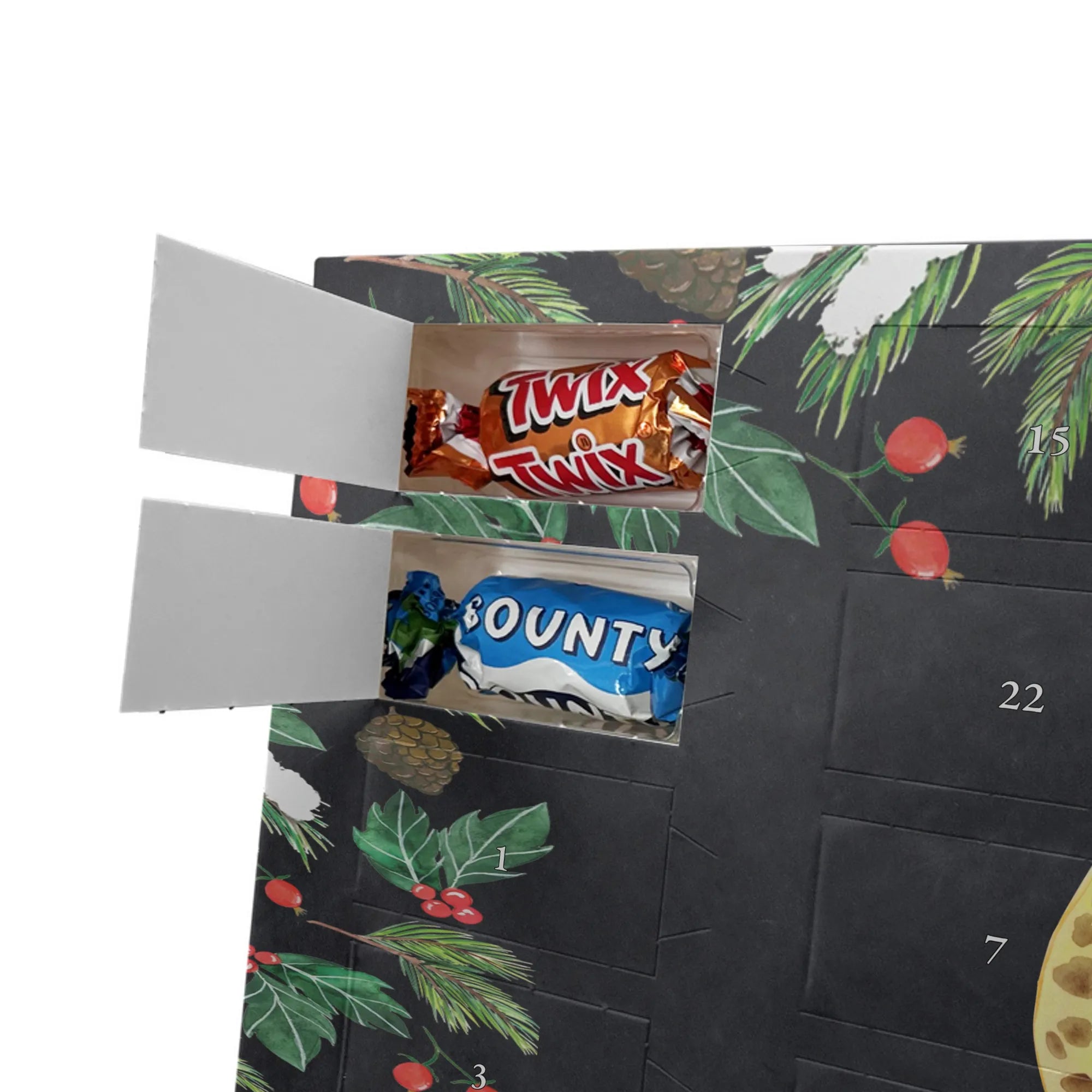 Verschenke Vorfreude mit unserem liebevoll gestalteten Personalisierter Schoko Adventskalender von Mr. & Mrs. Panda. Jeder Kalender wird mit deinem Wunschtext oder Namen personalisiert und ist ein echter Blickfang – dank der fröhlichen Illustrationen und Kurzsprüche, die typisch für Mr. & Mrs. Panda sind. Die Druckqualität ist hervorragend, ergänzt durch eine seidenmatte Oberflächenveredelung, die das Motiv besonders edel erscheinen lässt. Auch die Seiten sind bedruckt, sodass kein Blickwinkel verloren geht. Der Kalender ist flexibel einsetzbar: du kannst ihn aufstellen oder platzsparend aufhängen. Hinter den 24 Türchen verstecken sich Ritter Sport Schokowürfel in folgenden leckeren Geschmacksrichtungen: Mousse au Chocolat, Schoko Crisp, Voll-Nuss in Nougatcreme, Karamell Duo, Joghurt und Erdbeer-Joghurt – für jeden Geschmack ist etwas dabei. Maße: 325 mm x 225 mm x 27 mm. Ein tolles Geschenk für Familie, Freunde oder für dich selbst, das jeden Dezembertag etwas süßer macht.