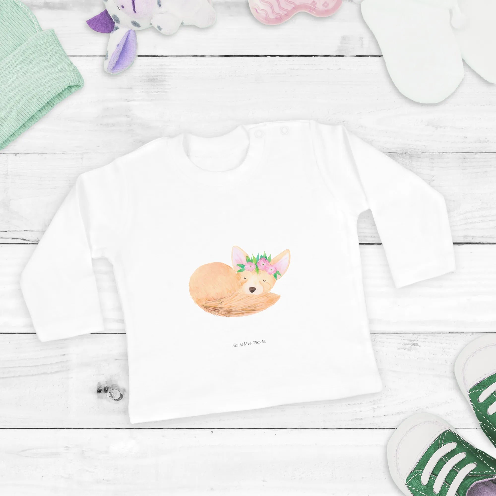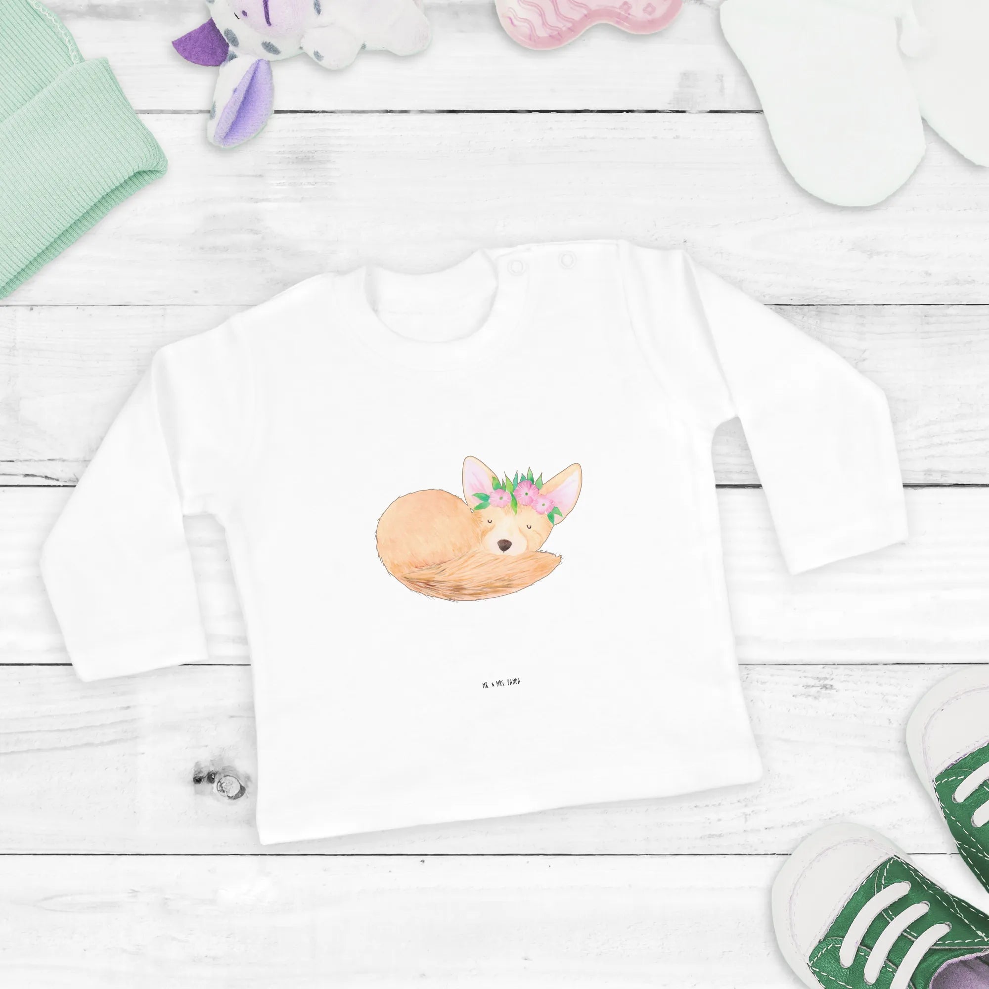 Baby Longsleeve Wüstenfuchs Blumen – Mr. & Mrs. Panda