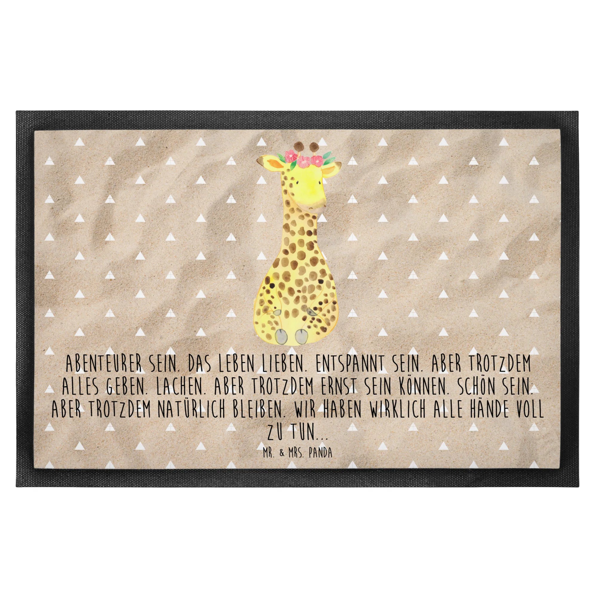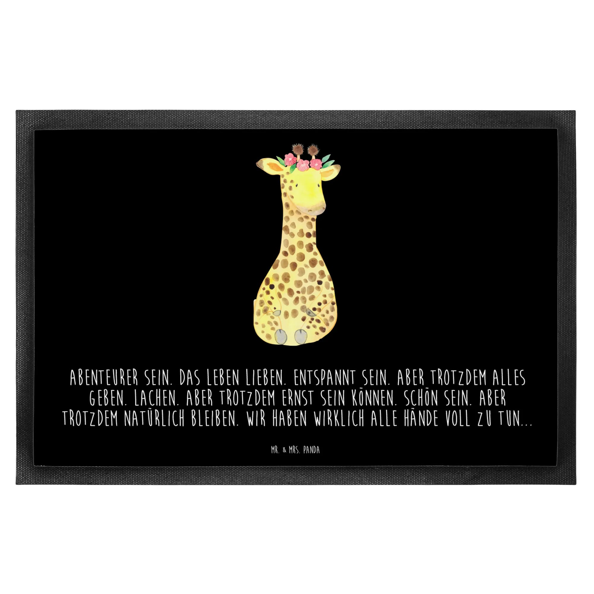 Begrüße mit Liebe: Unsere Mr. & Mrs. Panda Fußmatte „Giraffe Blumenkranz“ zaubert sofort ein Lächeln. Die niedliche Giraffe mit Blumenkranz kombiniert mit dem lebensbejahenden Spruch „Abenteurer sein. Das Leben lieben. Entspannt sein. Aber trotzdem alles geben. Lachen. Aber trotzdem ernst sein können. Schön sein. Aber trotzdem natürlich bleiben. Wir haben wirklich alle Hände voll zu tun...“ macht deine Türmatte zum kleinen Alltagsglück. 🌿