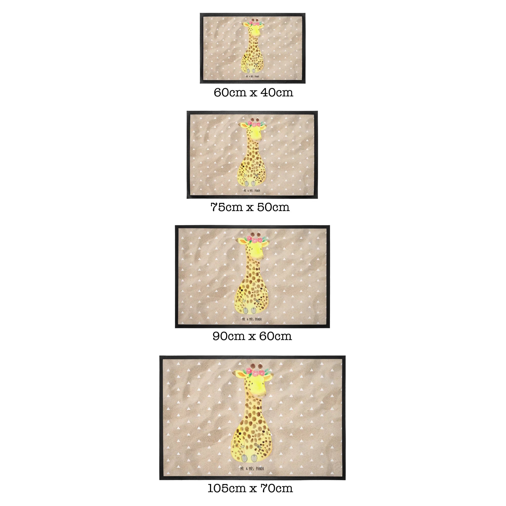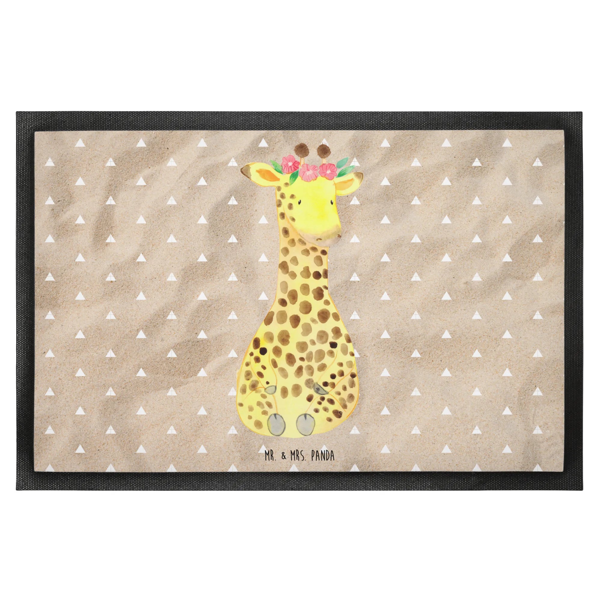 Entdecke die bezaubernde Fußmatte mit dem Motiv "Giraffe Blumenkranz" aus der Afrika Kollektion von Mr. & Mrs. Panda! Diese schöne und funktionale Fußmatte ist nicht nur ein Blickfang vor deiner Haustür, sondern auch ein praktisches Accessoire für dein Zuhause. Mit einer Größe von 40 x 60 cm bietet sie ausreichend Platz zum Abtreten von Schmutz und Nässe.