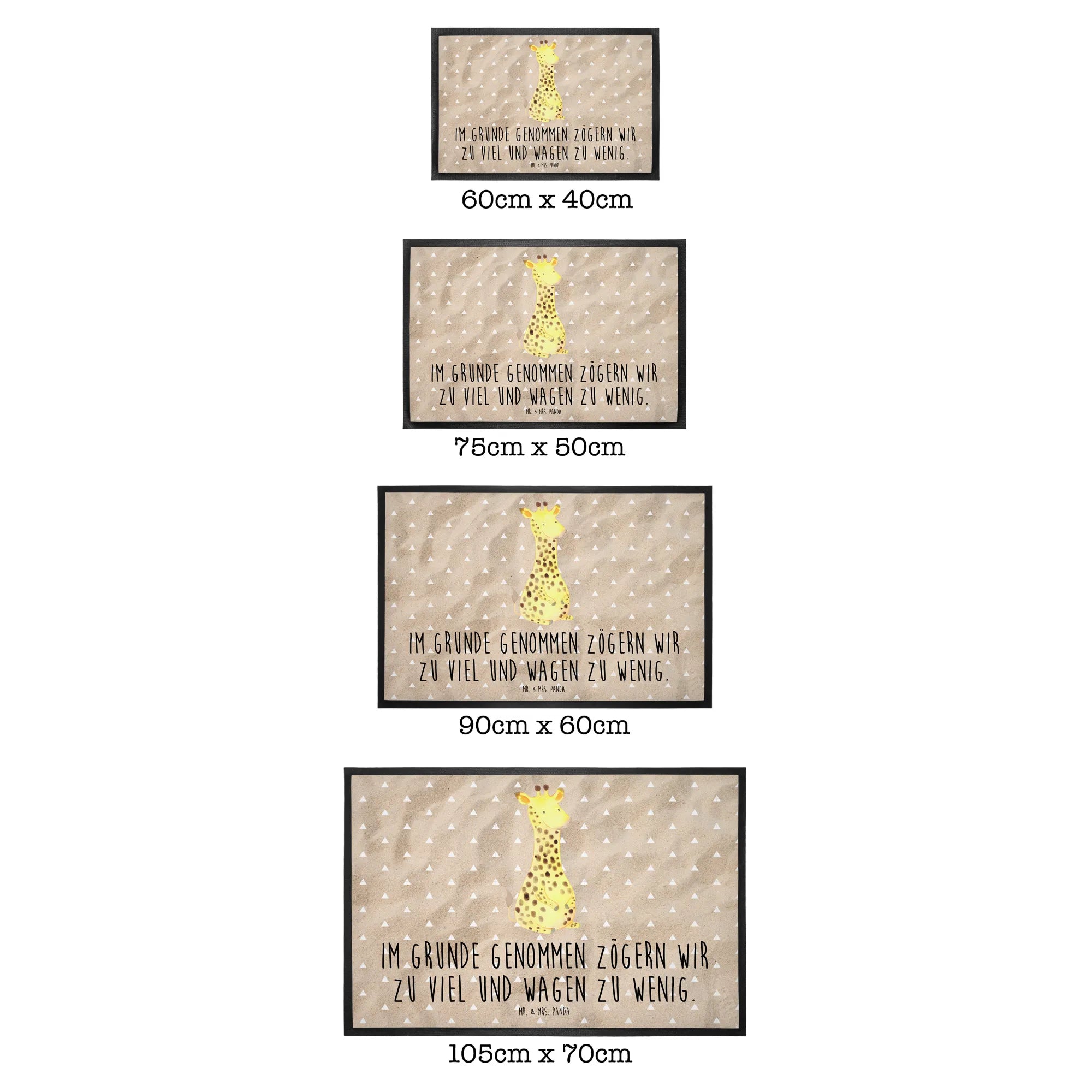 Entdecke die wunderbare Welt der Mr. & Mrs. Panda Fußmatte mit der süßen Giraffe Zufrieden aus der exklusiven Afrika Kollektion! Diese charmante Fußmatte setzt nicht nur einen strahlenden Akzent vor deiner Haustür, sondern heißt auch jeden Gast mit einem Lächeln Willkommen.