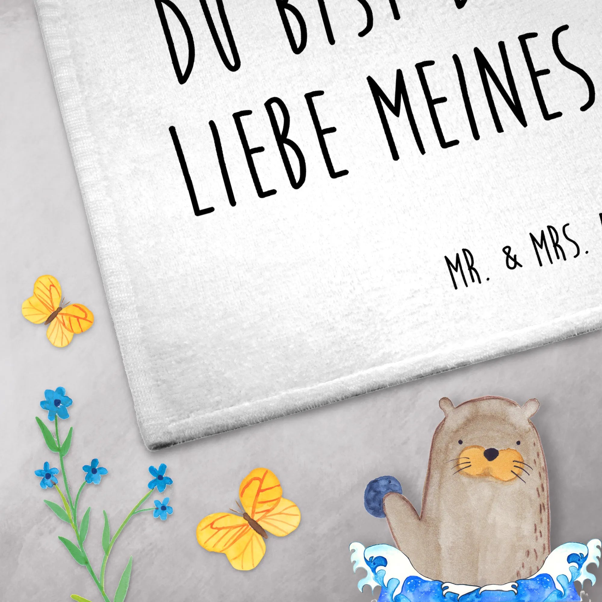 Ideal für das Gästebad oder dein eigenes Badezimmer, wird es sicherlich deine Gäste beeindrucken und gleichzeitig für eine warme, einladende Atmosphäre sorgen. Der einprägsame Spruch "Du bist die größte Liebe meines Lebens!" macht dieses Tuch zu einem wundervollen Geschenk für besondere Anlässe wie Geburtstage, Muttertag oder einfach, um einem Lieblingsmenschen eine Freude zu machen.