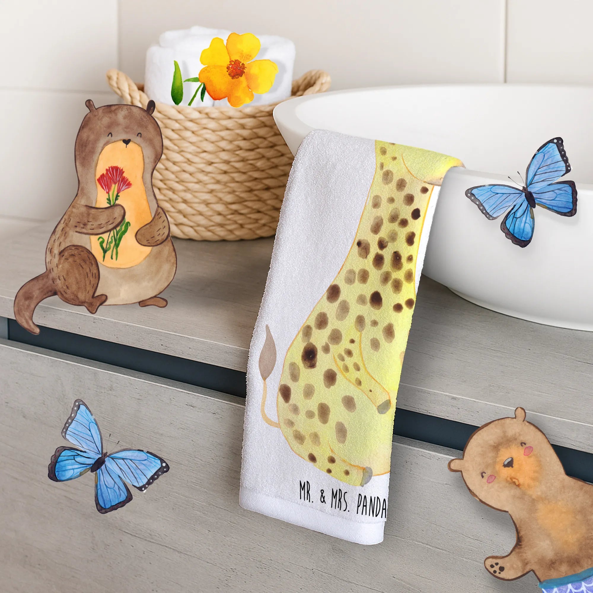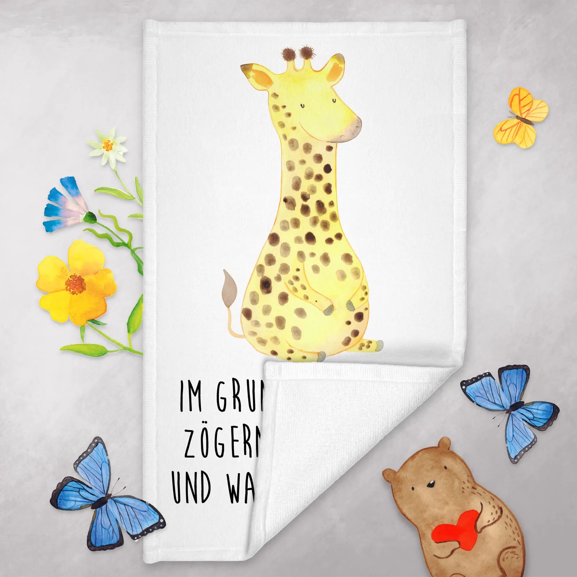 Ob als Überraschung für Freunde oder zur eigenen Freude, dieses Gästehandtuch ist immer eine gute Wahl. Schenke Lächeln, Komfort und eine Prise Abenteuer mit dem "Giraffe Zufrieden" Handtuch von Mr. & Mrs. Panda!