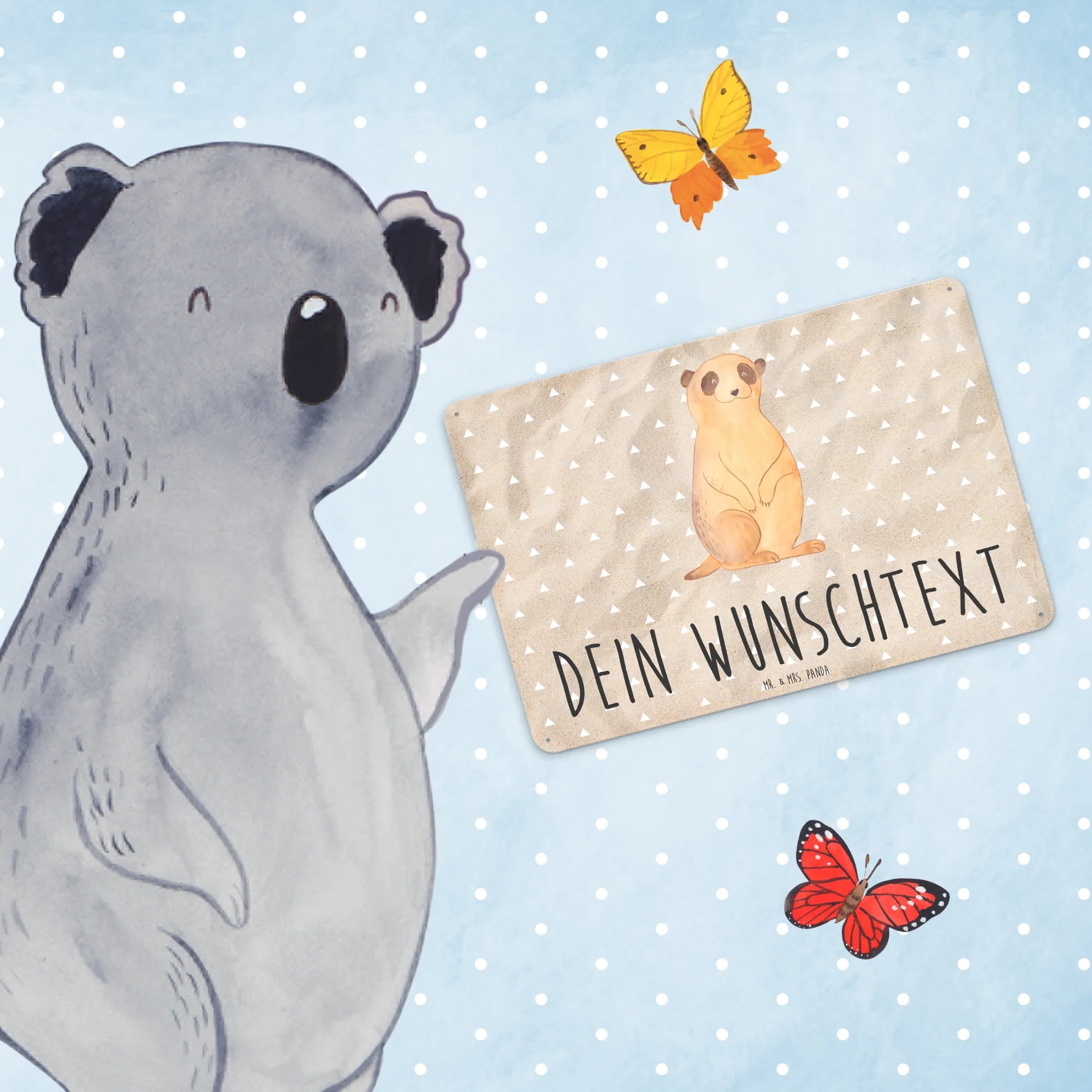 Entdecke das bezaubernde personalisierte Blechschild mit dem süßen Erdmännchen-Motiv aus der Afrika-Kollektion von Mr. & Mrs. Panda!