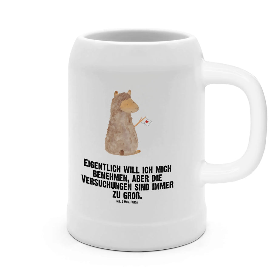 Der Bierkrug "Alpaka Fahne" aus der Kollektion von Mr. & Mrs. Panda ist das perfekte Geschenk für jeden, der Alpakas und gutes Bier liebt! Dieser rustikale und robust gestaltete Bierkrug aus hochwertigem Steingut hat eine Füllmenge von 500 ml und ist ideal für gesellige Runden im Biergarten oder gemütliche Abende zu Hause.