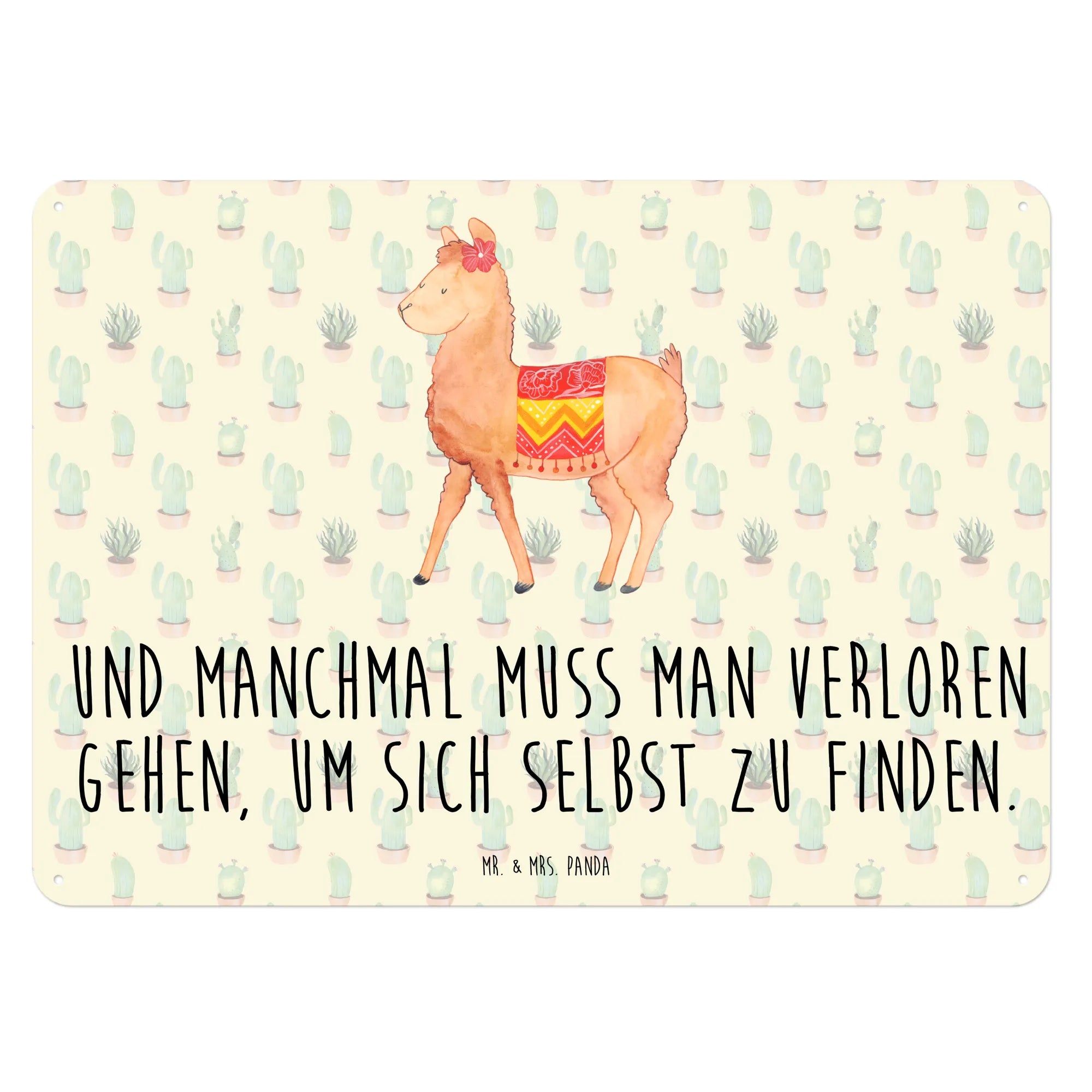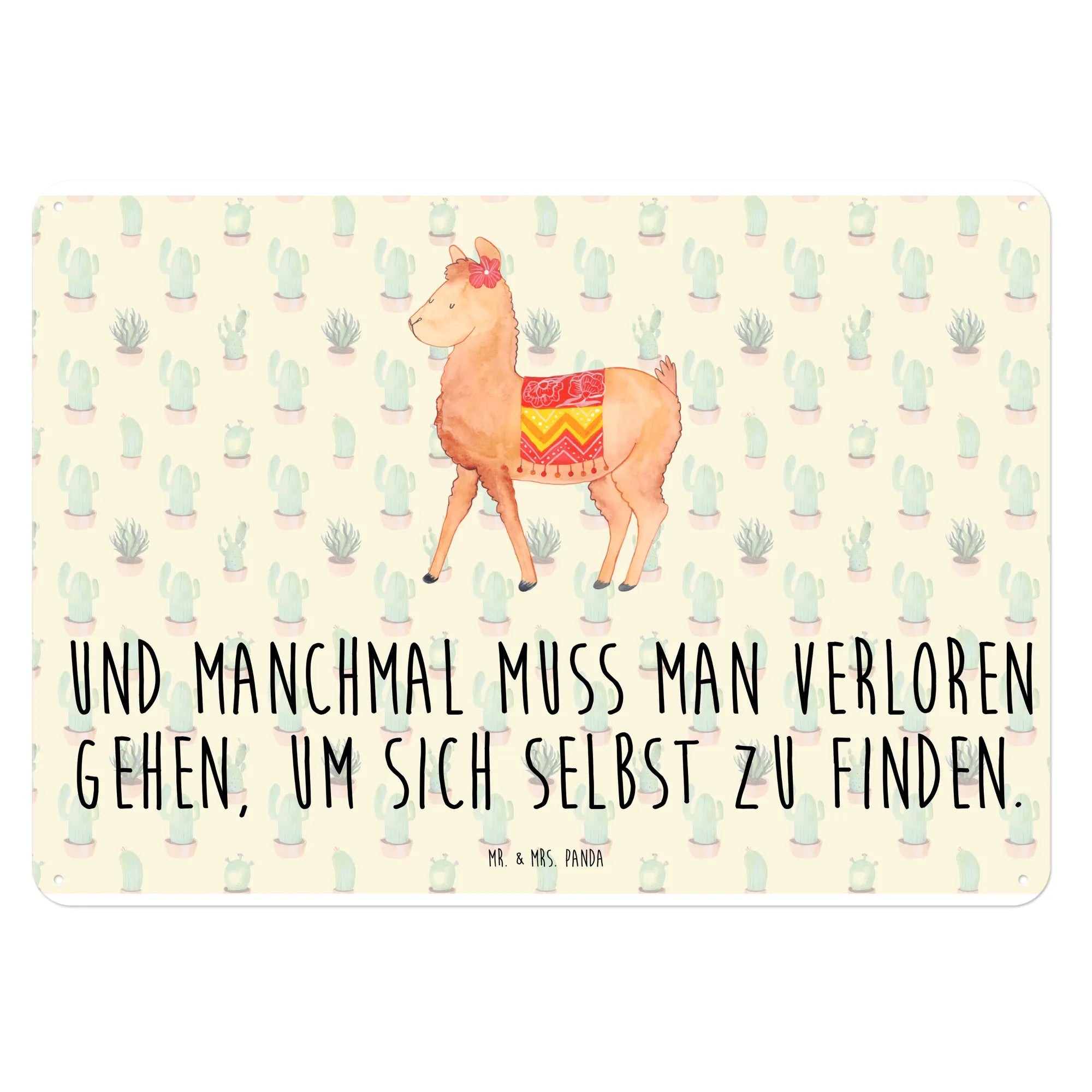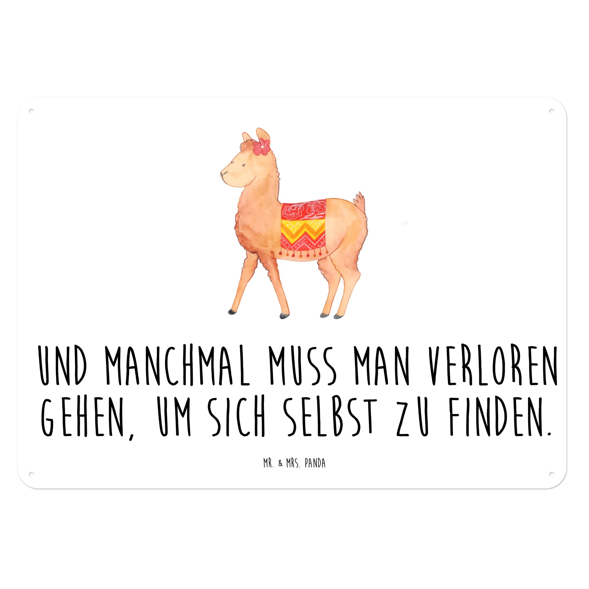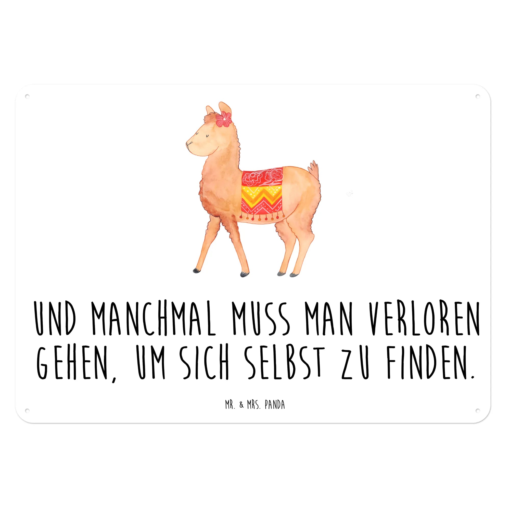 Der Spruch 'Und manchmal muss man verloren gehen, um sich selbst zu finden' inspiriert und macht das Schild zu einem geschätzten Begleiter, der zum Nachdenken anregt. Wenn du das Alpaka Motiv liebst, wirst du auch die gesamte Kollektion von Mr. & Mrs. Panda lieben, die zahlreiche liebevoll handgezeichnete Motive bietet.