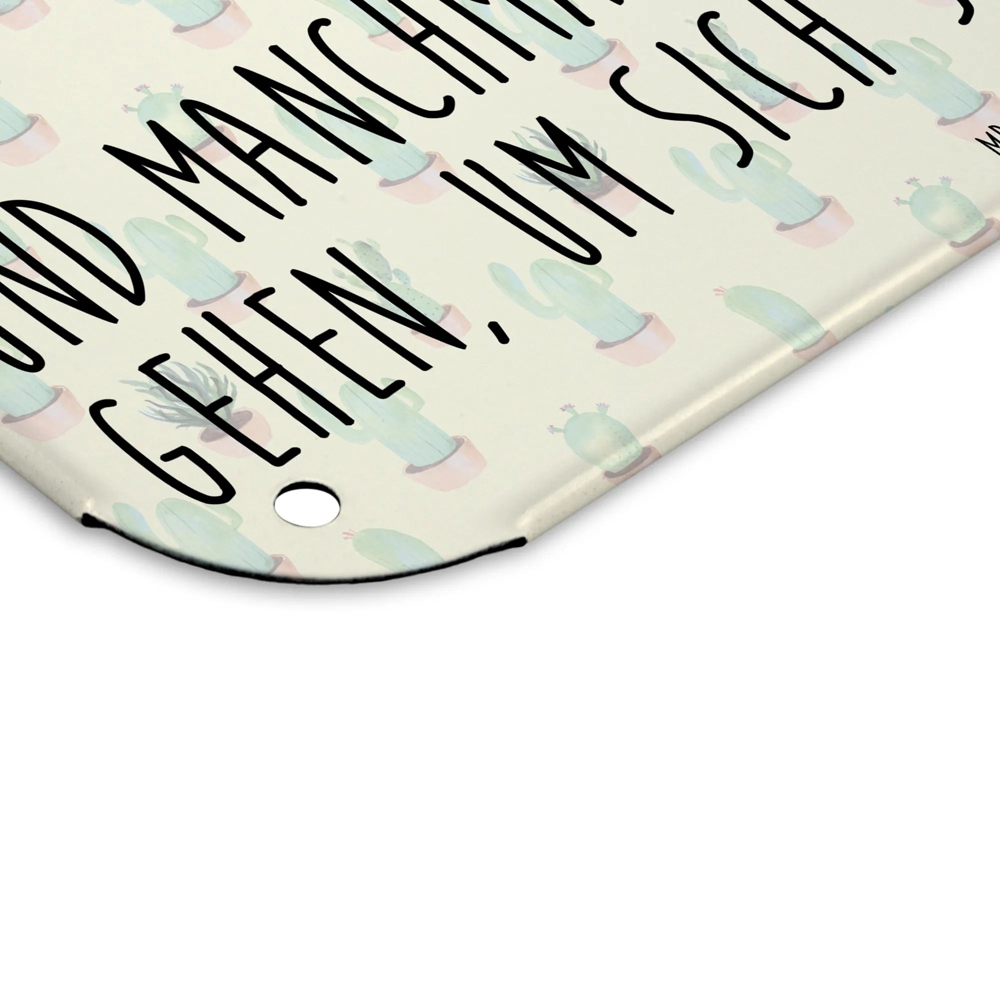 Die seidenmatte Oberfläche und die abgerundeten Ecken sorgen dafür, dass das Schild nicht nur gut aussieht, sondern auch sicher zu handhaben ist. Dank der vier Bohrungen kannst du das Schild ganz einfach anbringen und ihm einen besonderen Platz in deinem Zuhause geben.