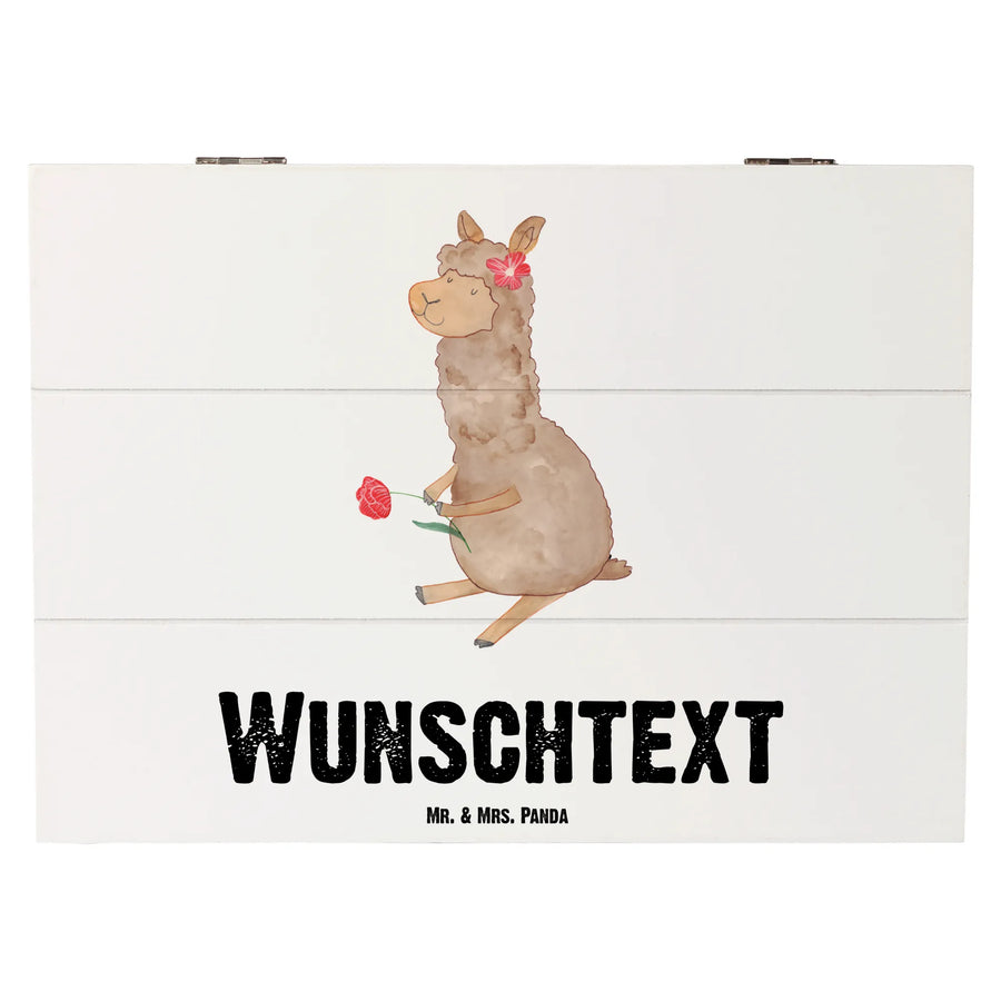 Personalisierte Holzkiste Alpaka Blume - 25 x 18 cm - Weiß
