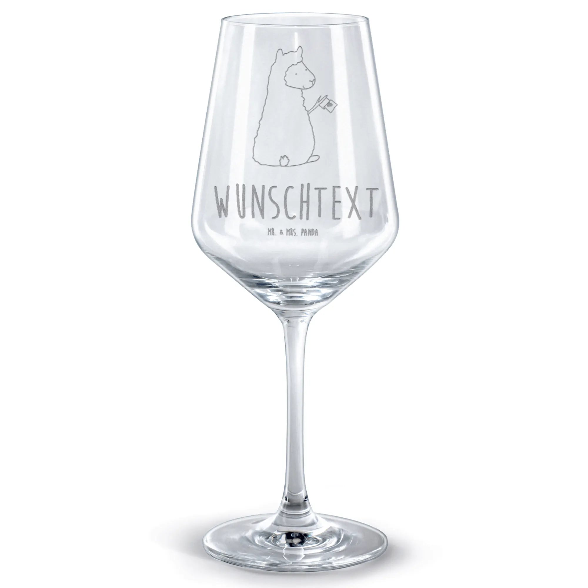 Das personalisierte Rotweinglas mit dem süßen Alpaka-Motiv von Mr. & Mrs. Panda ist das perfekte Geschenk für alle Weinliebhaber! Wenn Du auf der Suche nach einem besonderen Geschenk für Freunde, Familie oder Dich selbst bist, dann ist dieses hochwertige Weinglas genau das richtige.