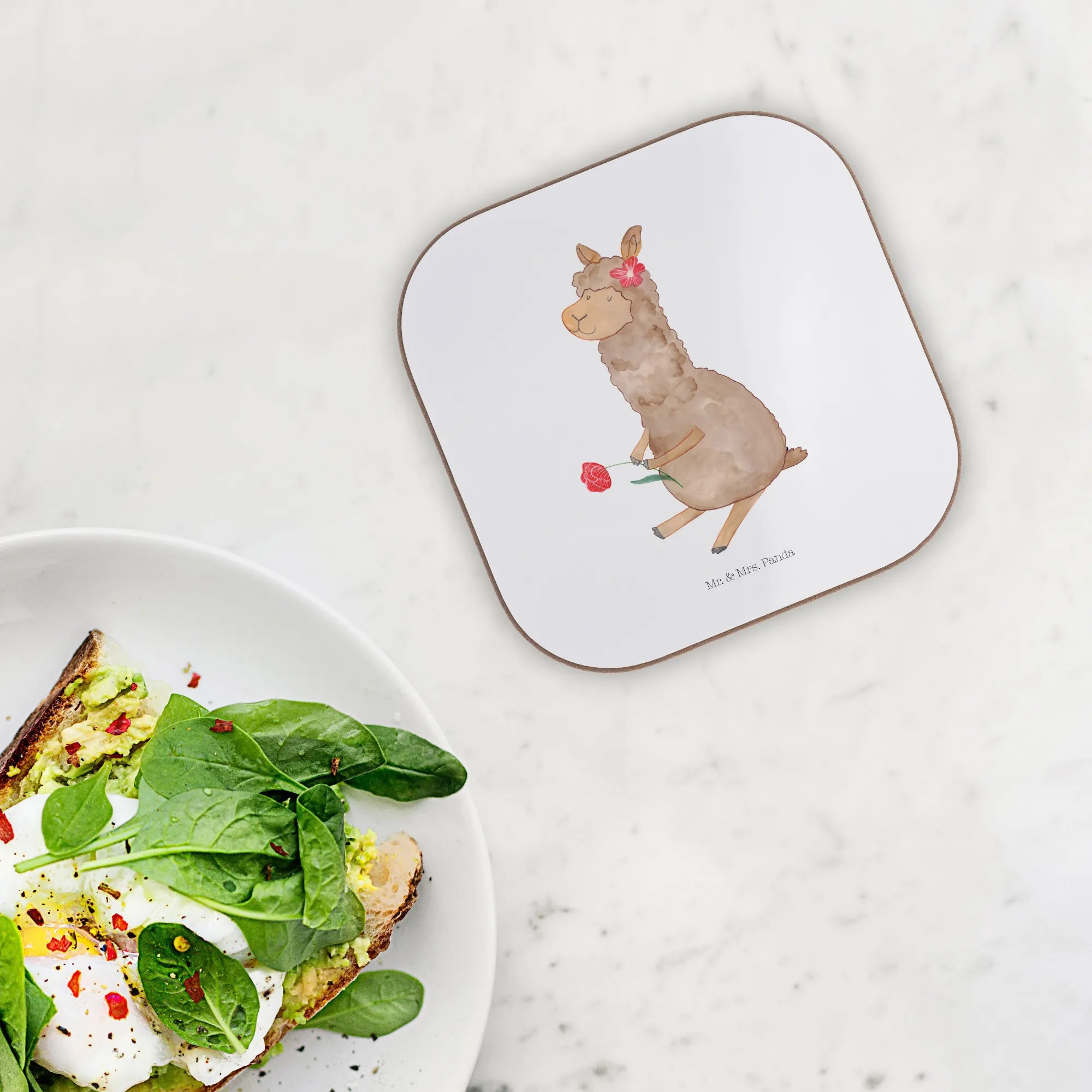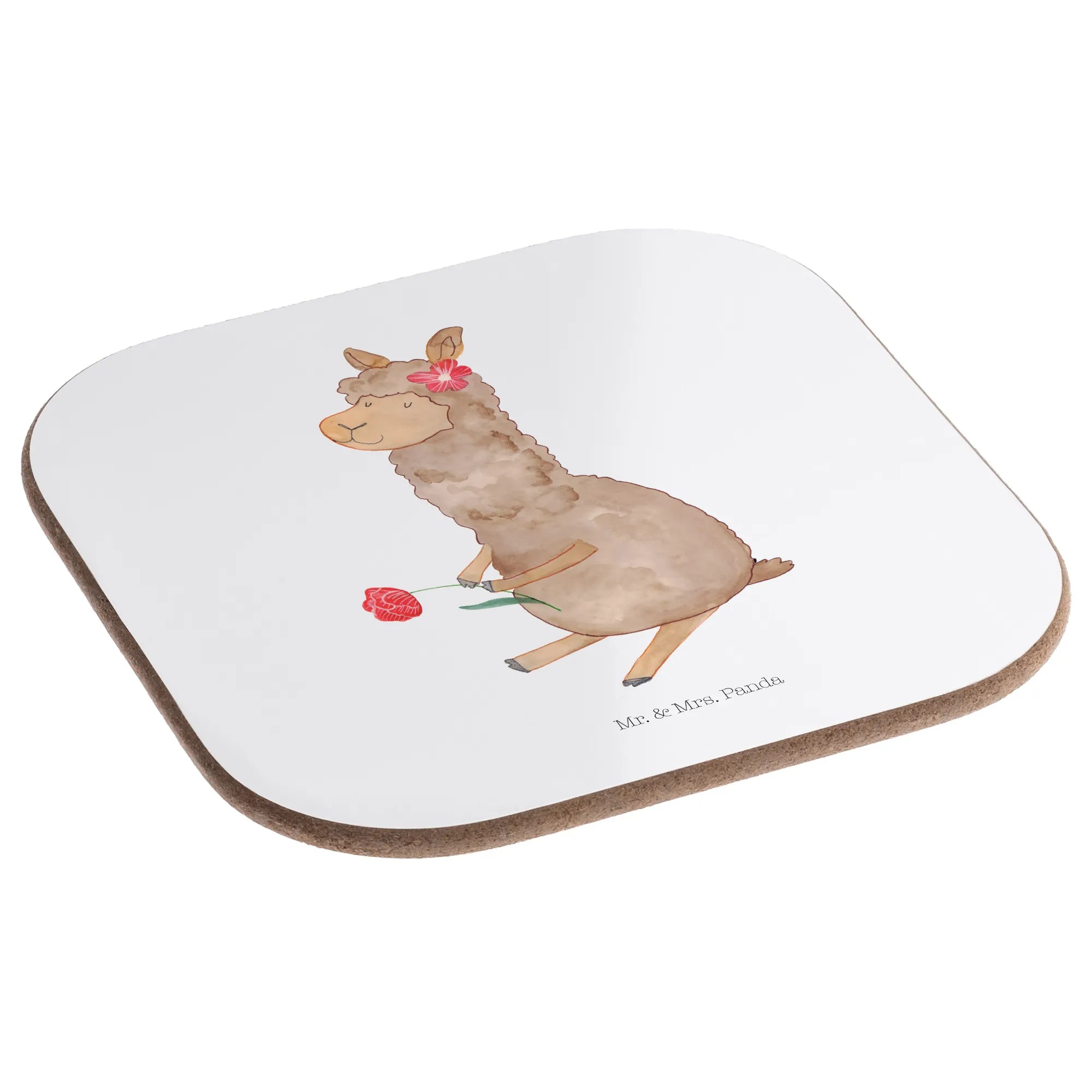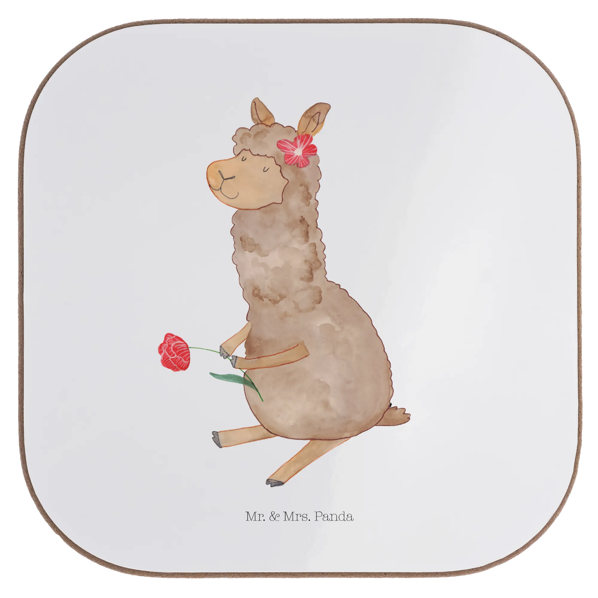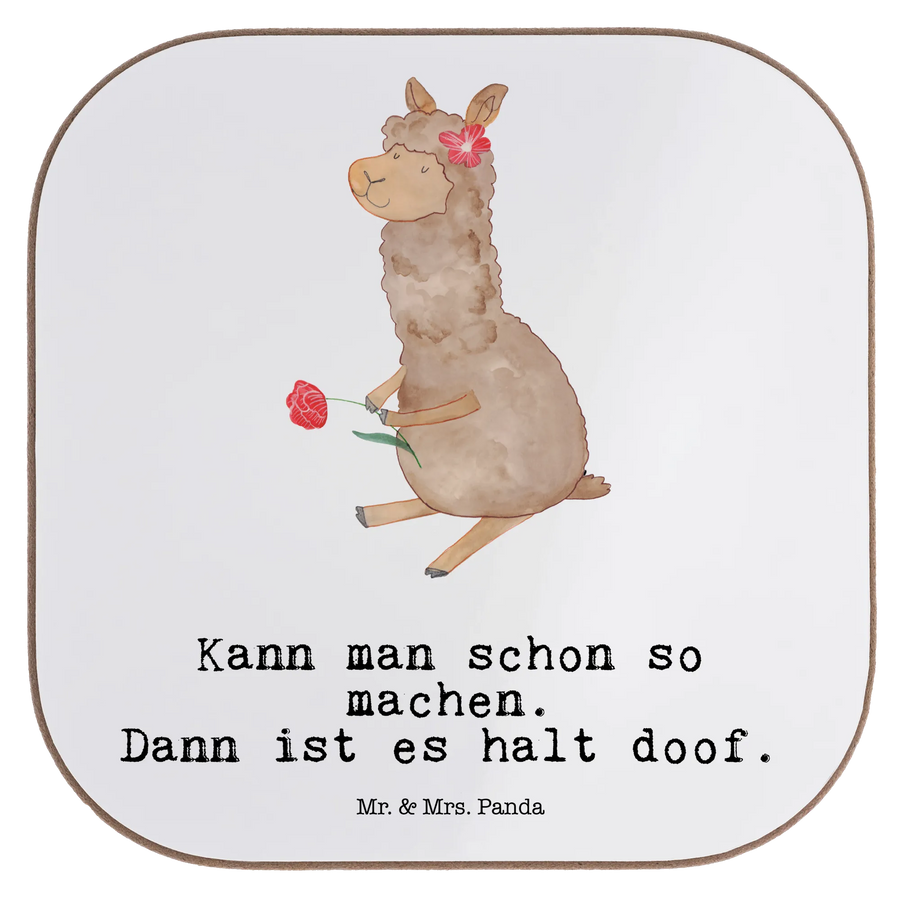 Quadratische Untersetzer Alpaka Blume - mit Spruch