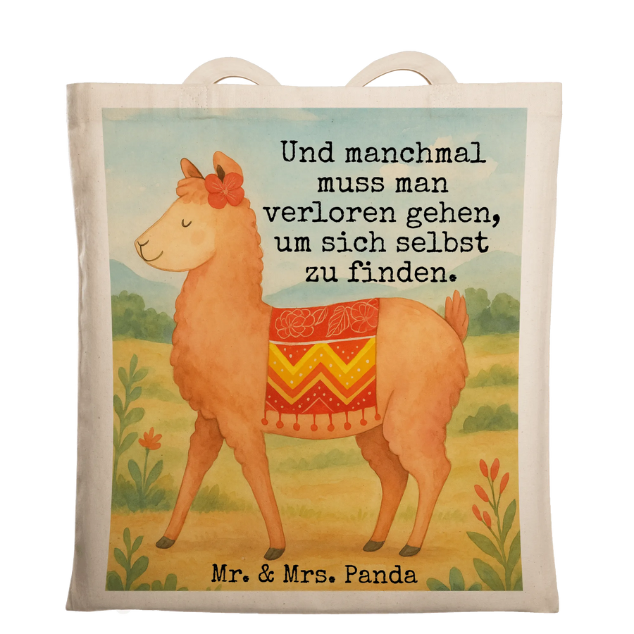Diese bezaubernde Stofftasche vereint süßes Design und Alltagstauglichkeit. Das handgezeichnete Alpaka mit seiner schicken Schleife und dem kleinen Lebensspruch „Und manchmal muss man verloren gehen, um sich selbst zu finden.“ macht die Tasche zum liebenswerten Begleiter beim Einkauf, am Strand oder in der Uni. Die Tasche ist ideal als Einkaufstasche, Shopper, Jutebeutel oder Umhängetasche.