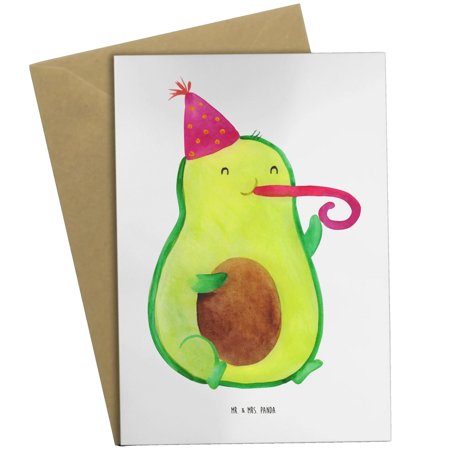 Mr. & Mrs. Panda Avocado Partyhupe – Geburtstagsmotiv mit Avocado, Partyhut und Partypfeife für Karten & Geschenke