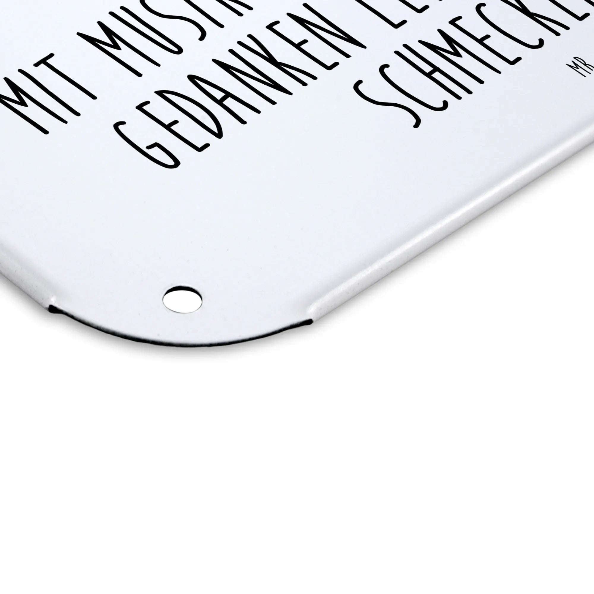 Das perfekte Stück für deine Wohnung: unser hochwertiges Blechschild von Mr. & Mrs. Panda! Mit den eindrucksvollen Maßen 146 mm x 148 mm x 105 mm, strahlt dieses Schild eine besondere Eleganz aus. Das edle Stahlblech ist doppelt beschichtet, sodass es langlebig und resistent gegen Verfärbungen bleibt. Der kreative Druck mit süßen Motiven und griffigen Sprüchen bringt Freude in jeden Raum und eignet sich hervorragend als Geschenkoption. Die seidenmatte Oberfläche wertet nicht nur das Schild selbst auf, sondern macht es auch zu einem zeitlosen Accessoire. Ob an der Wand oder der Tür - die Anbringung ist dank der 4 bereits vorgebohrten Löcher besonders einfach. Kanten und Ecken sind abgerundet und bilden somit ein sicheres Design für dein Zuhause. Dieses Blechschild passt perfekt in jeden Innenraum und lässt sich mühelos mit einem feuchten Tuch reinigen. Verfügbar in verschiedenen Größen, um sich harmonisch in dein Ambiente einzufügen.