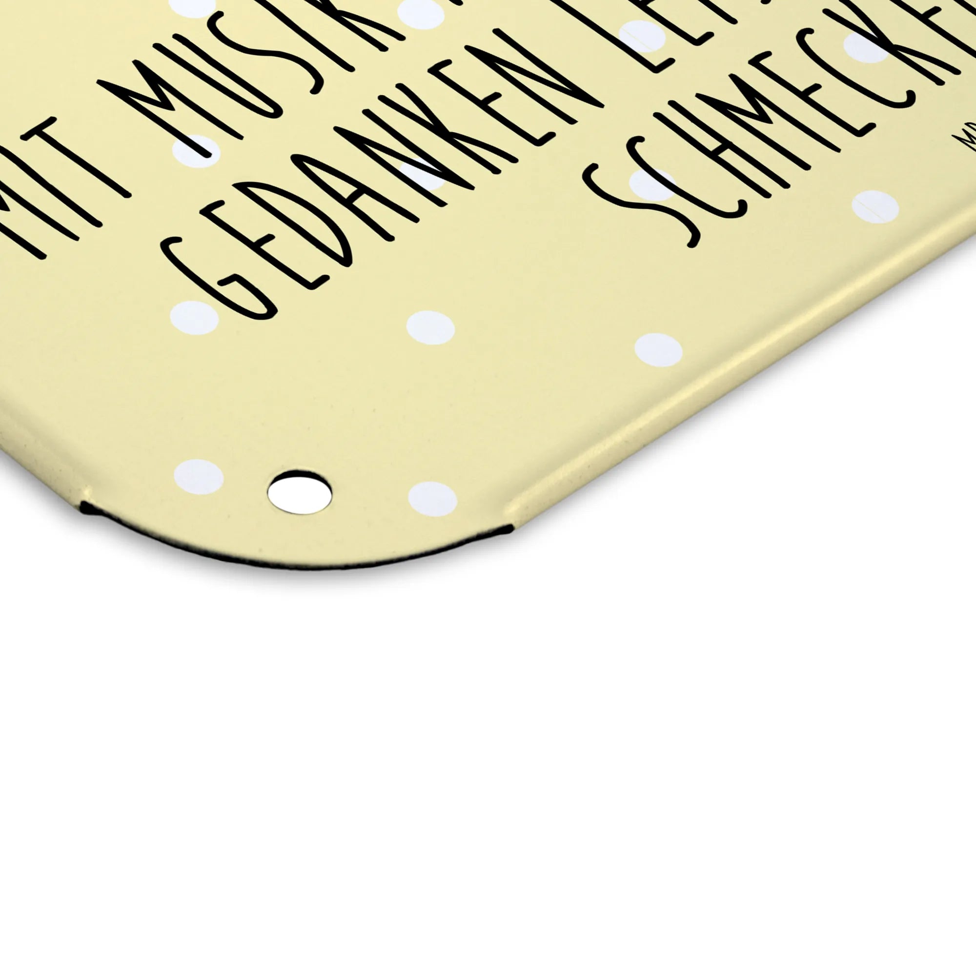 Mach dein Zuhause zu einem noch schöneren Ort mit dem Blechschild von Mr. & Mrs. Panda! Mit den Maßen 146 mm x 297 mm x 210 mm ist es der perfekte Akzent für deine Wand oder Tür. Hergestellt aus feinstem Stahlblech, überzeugt es mit einem hochwertigen, seidenmatten Druck, der die bunten Motive auf wunderschöne Weise zur Geltung bringt. Die abgerundeten Ecken und gefalzten Kanten runden das Gesamtbild ab und bieten zugleich Sicherheitsaspekte. Eine unkomplizierte Montage ist dank der 4 Bohrungen gegeben. Ob du es als persönliche Dekoration verwenden möchtest oder als originelles Geschenk für Freunde – mit diesem Schild bringst du Freude und Stil in dein Zuhause. Pflege ist kinderleicht – einfach mit einem feuchten Tuch abwischen und schon strahlt es wieder!