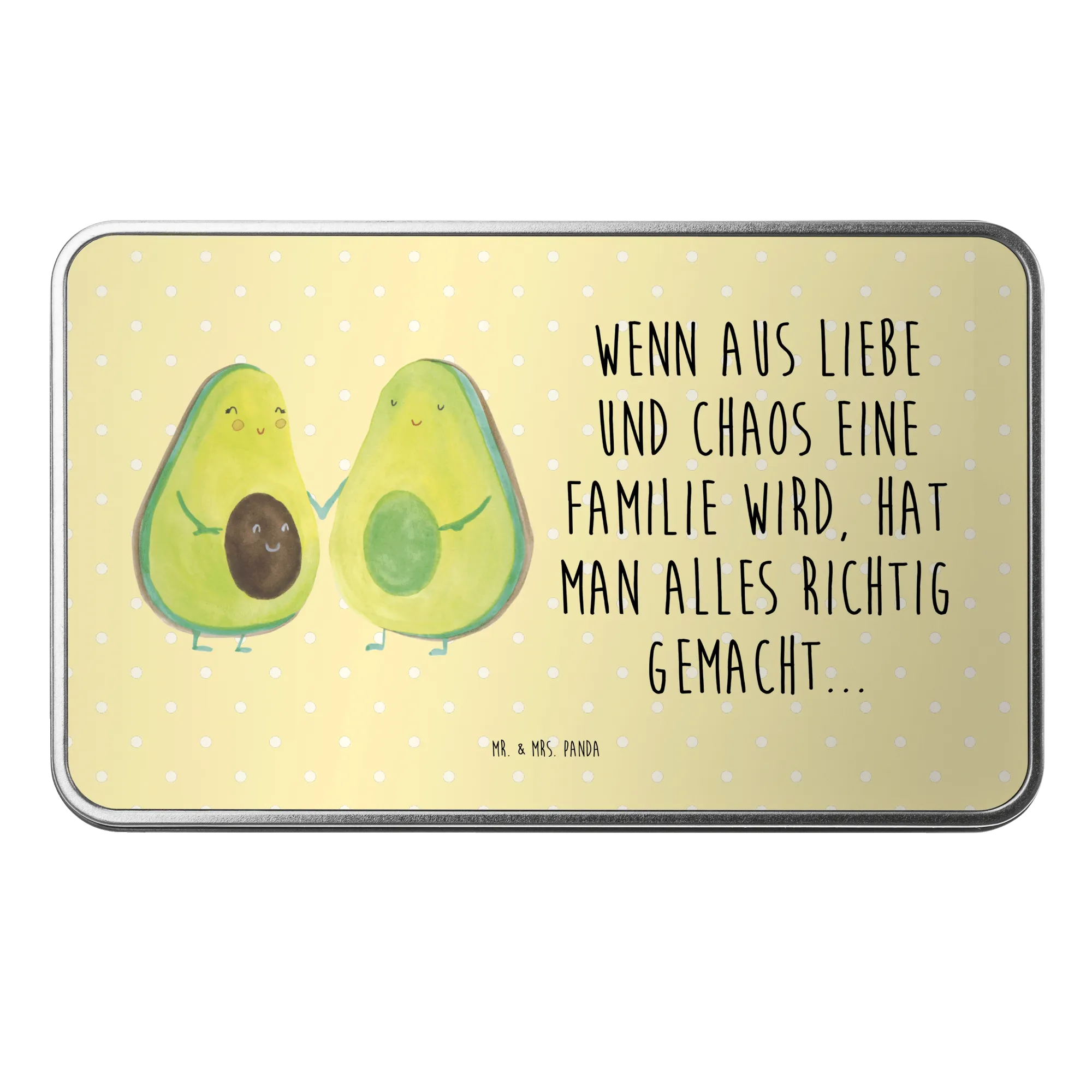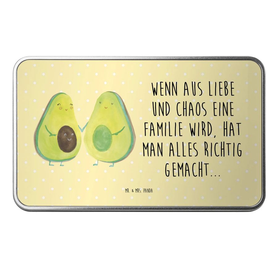 Die wunderschöne Metalldose rechteckig mit dem süßen Motiv des Avocado Pärchens von Mr. & Mrs. Panda ist das ideale Geschenk für jeden Anlass. Egal, ob zur Babyshower, zur Hochzeit oder einfach nur als liebevolle Überraschung für Freunde und Familie – diese Blechdose ist nicht nur praktisch, sondern auch ein echter Hingucker.