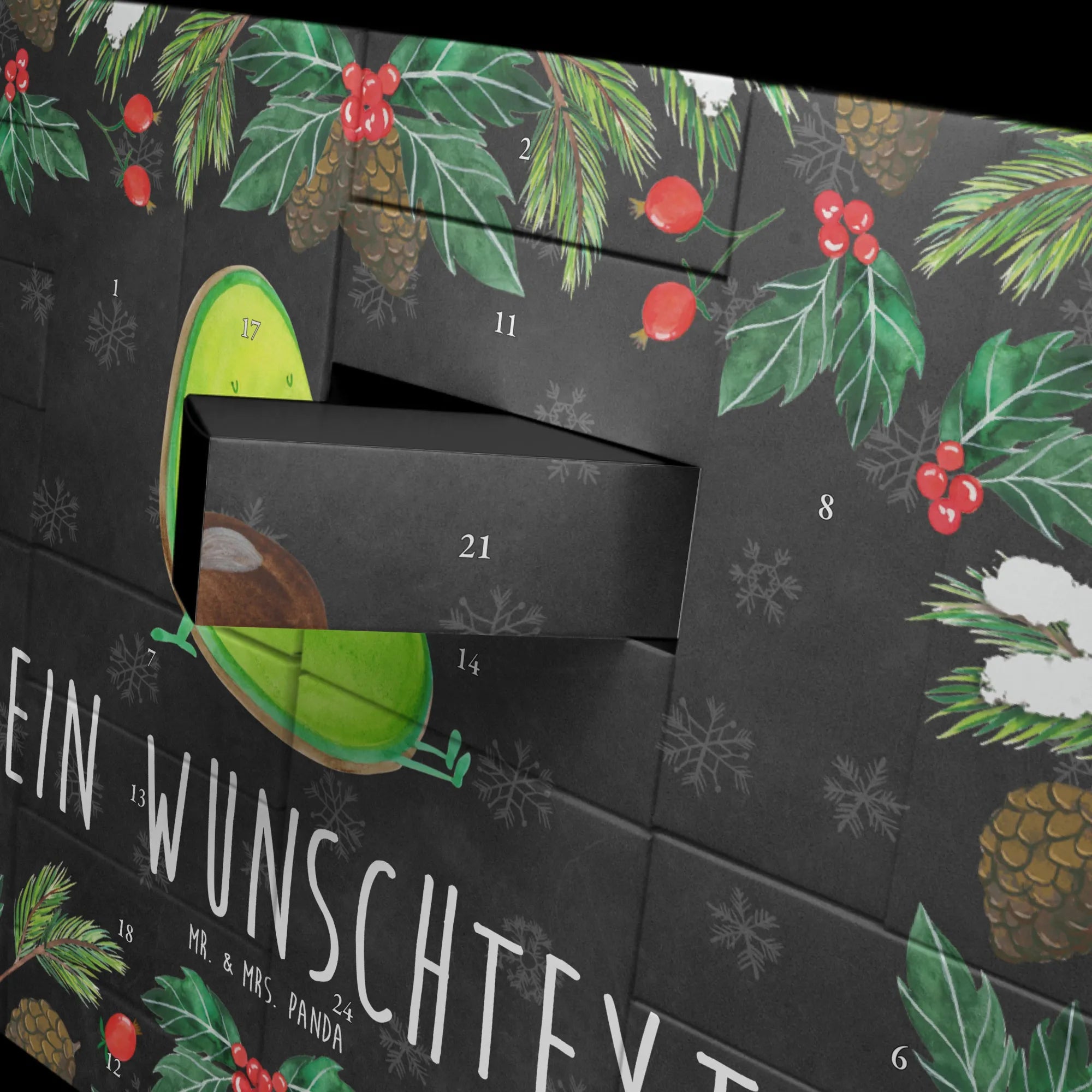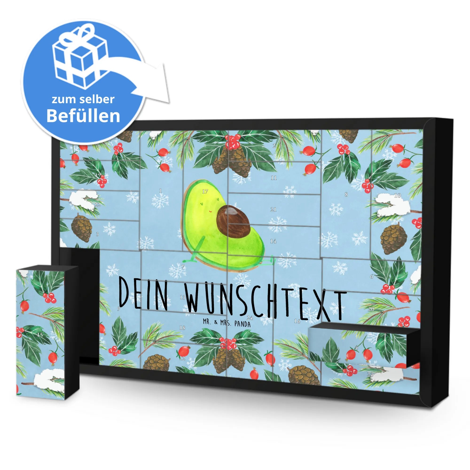 Personalisierter Befüllbarer Adventskalender „Avocado schwanger“ von Mr. & Mrs. Panda – das perfekte Geschenk für werdende Mamas, Avocado-Liebhaberinnen und alle, die eine persönliche, fröhliche Adventszeit schätzen. Die liebevoll gezeichnete Avocado sitzt stolz da und zeigt ihren runden Kern-Bauch. Der süße Slogan „Schwanger und darauf
