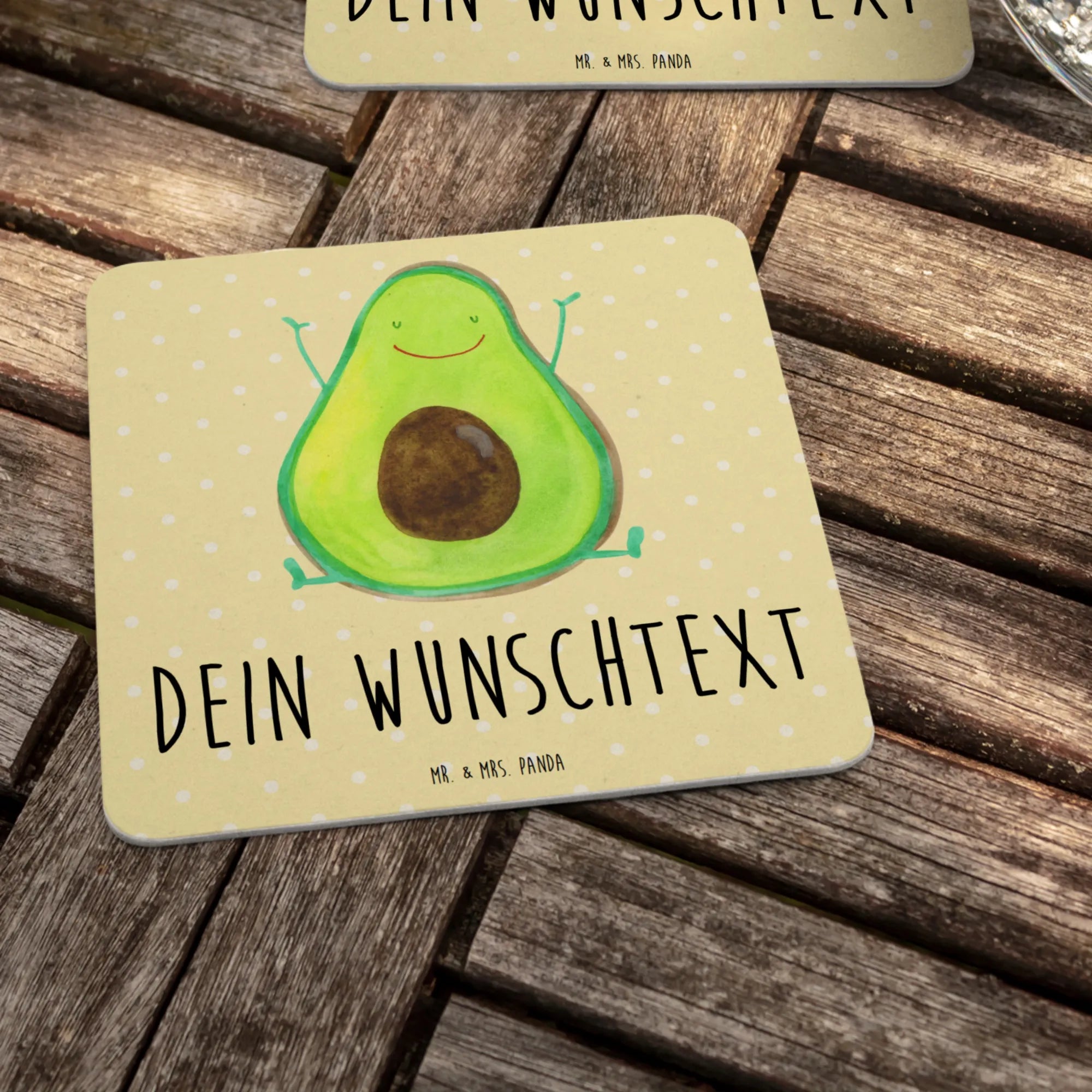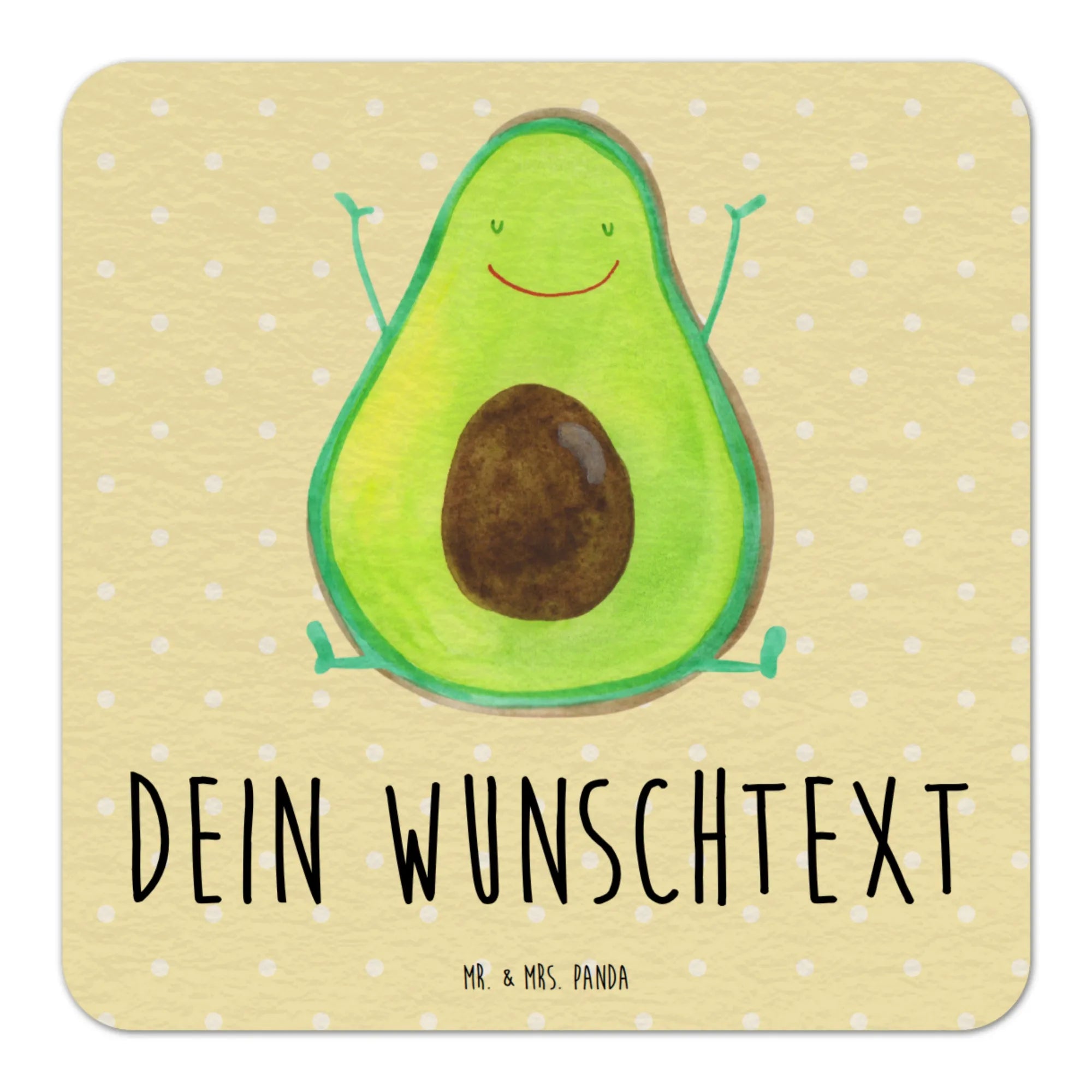 Der personalisierte Bierdeckel "Avocado Happy" von Mr. & Mrs. Panda ist mehr als nur ein einfacher Untersetzer. Mit seinem fröhlichen Design zeigt er eine liebevolle Avocado, die begeistert die Arme nach oben hält – perfekt für alle, die das Leben in vollen Zügen genießen und gleichzeitig ein wenig Humor am Tisch schätzen!
