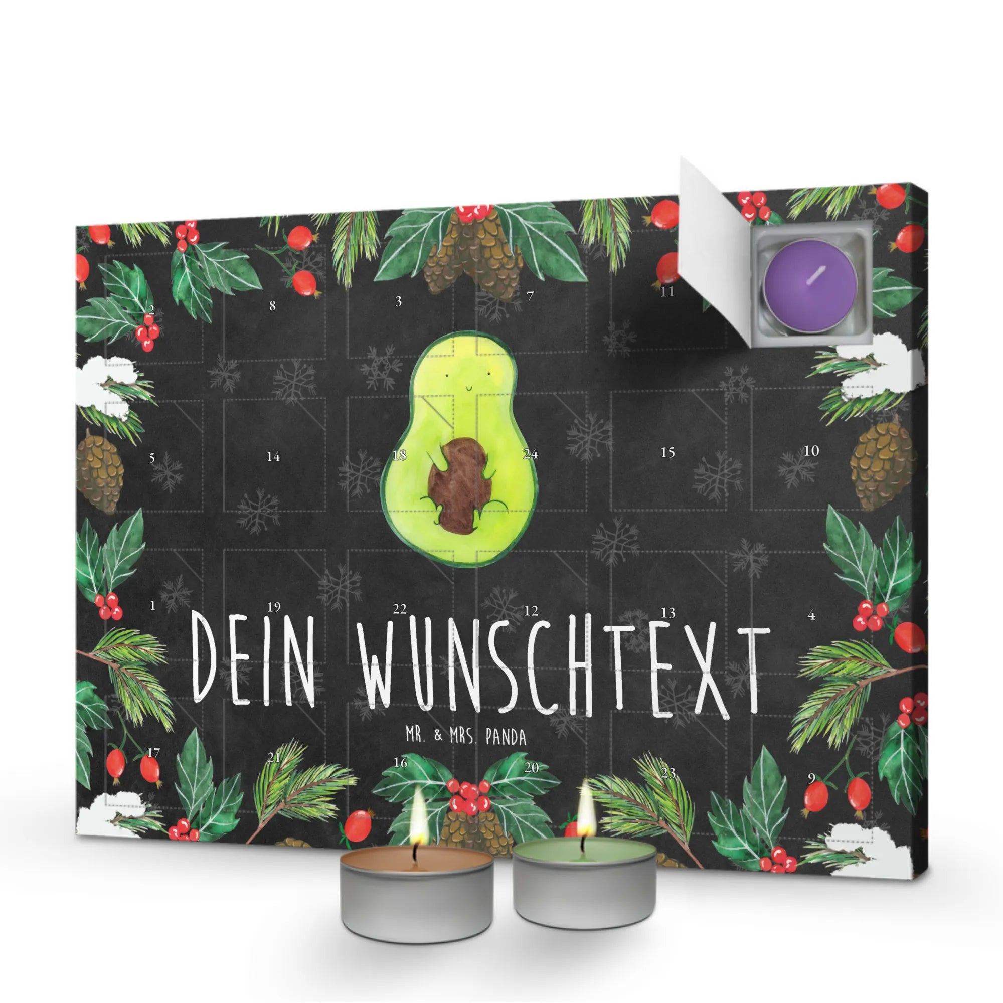Personalisierter Duftkerzen Adventskalender Avocado Kern - Kreidetafel