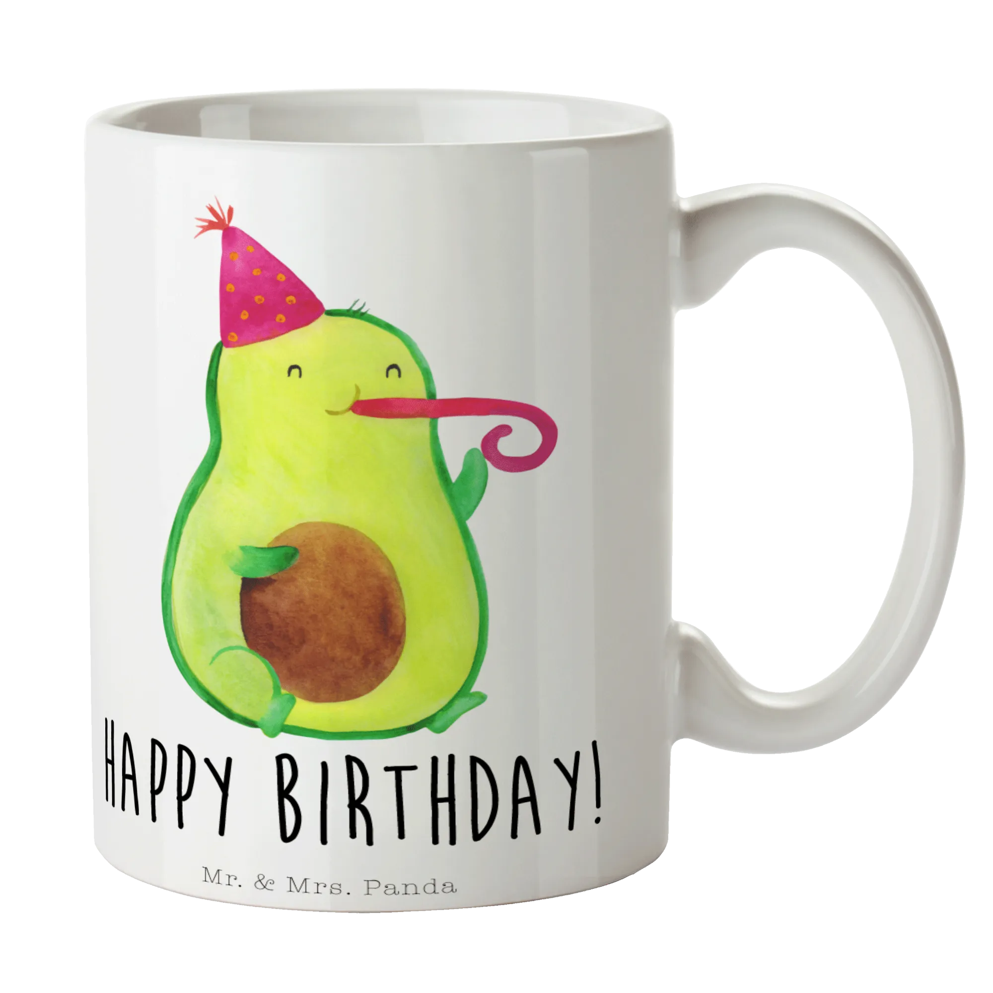 Suchst du nach dem perfekten Geschenk für einen lieben Menschen? Dann ist die wunderschöne Avocado Birthday Tasse von Mr. & Mrs. Panda genau das Richtige! Diese Keramiktasse begeistert nicht nur durch ihr fröhliches Design, sondern auch durch den liebevollen Slogan „Happy Birthday!“. Sie zeigt eine süße Avocado mit einem Partyhut, die mit einer Partypfeife feiert und einfach Lust auf gute Laune macht.