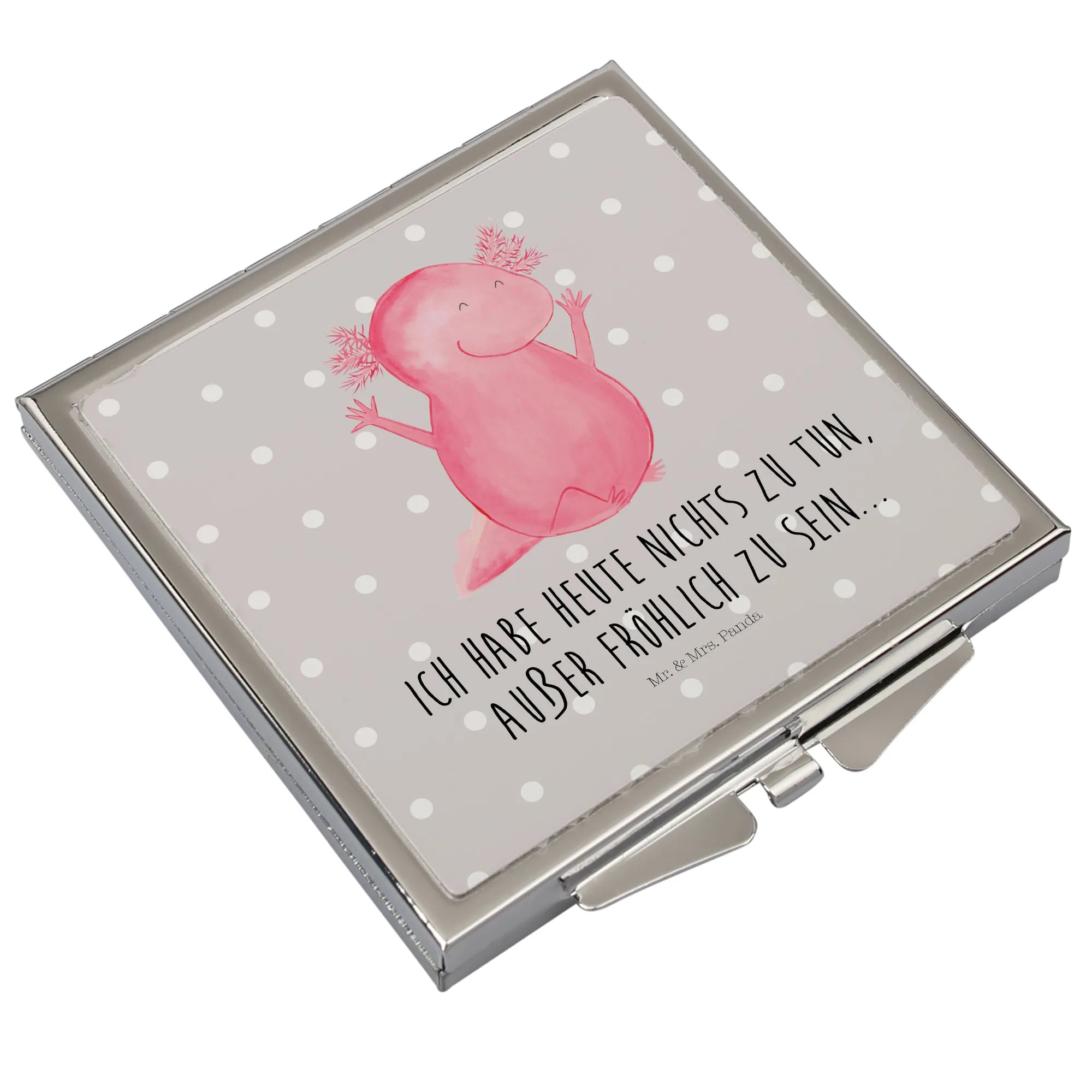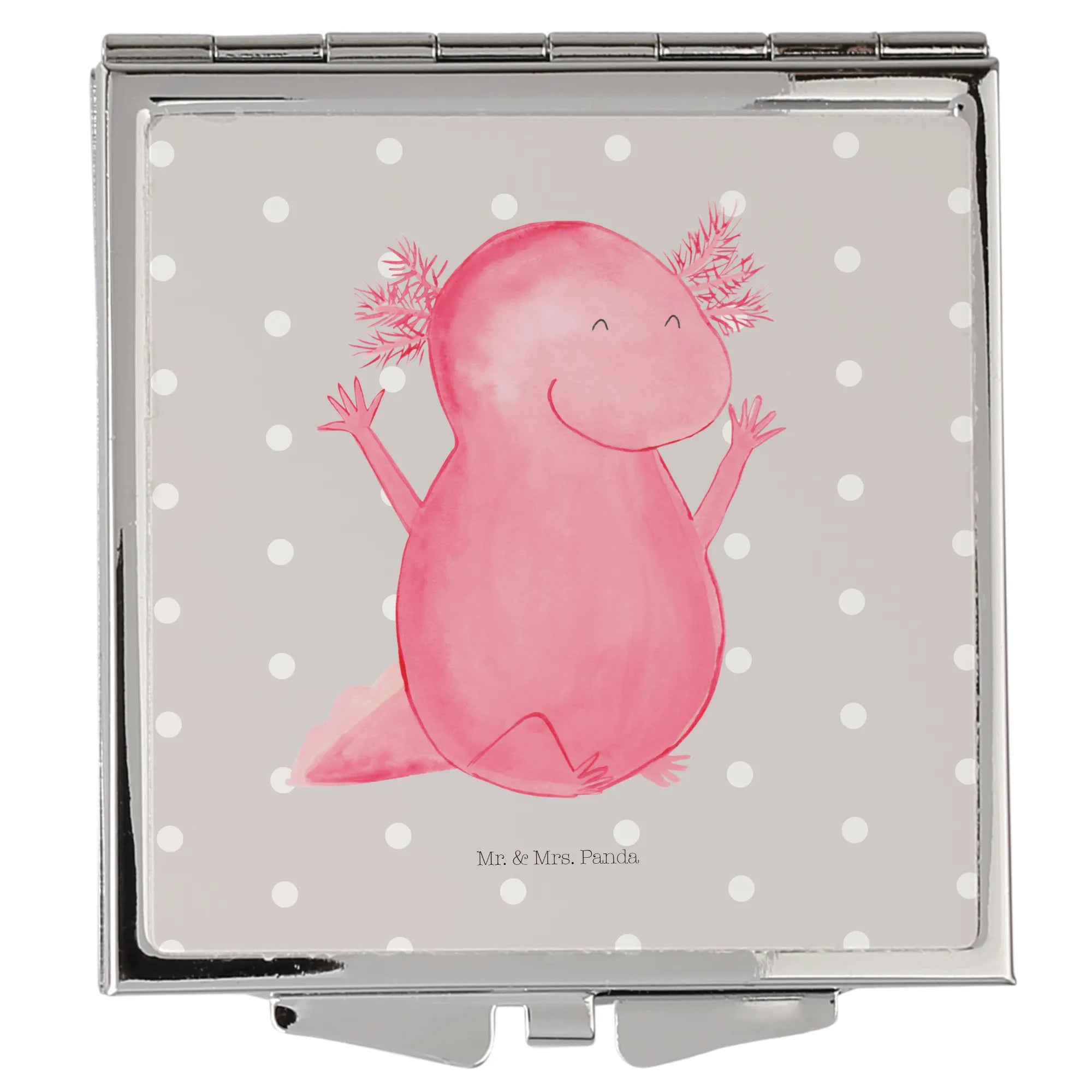 Kosmetikspiegel Axolotl Hurra - mit Spruch - Grau Pastell