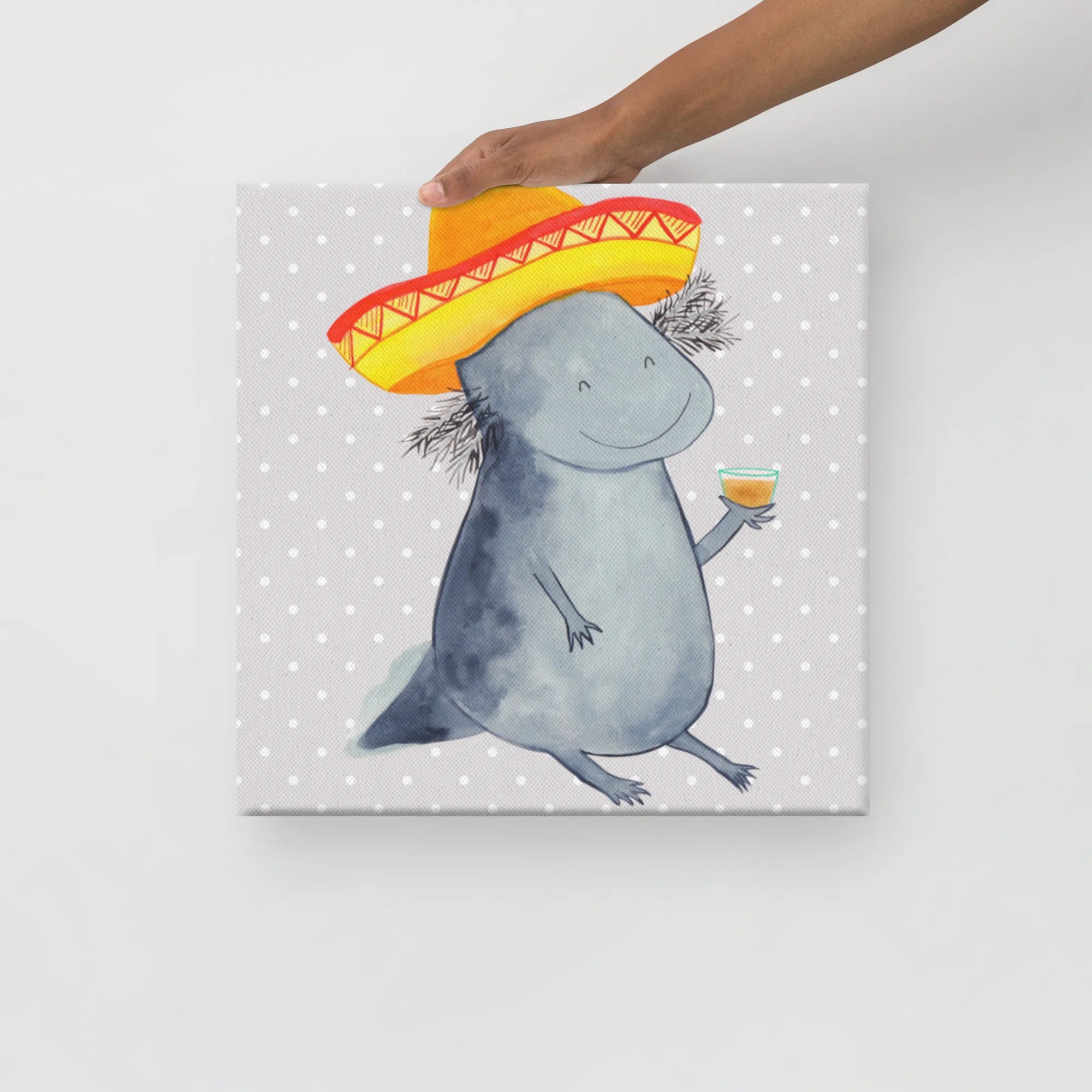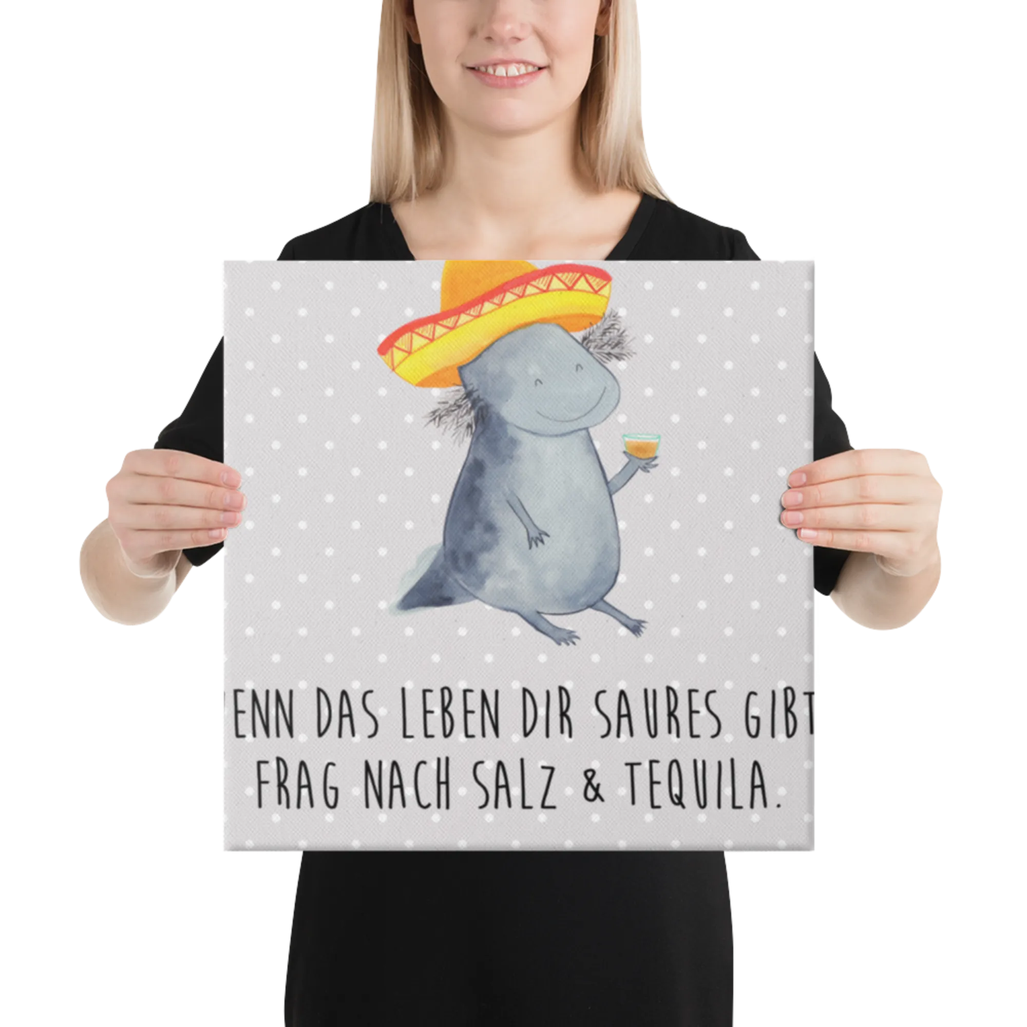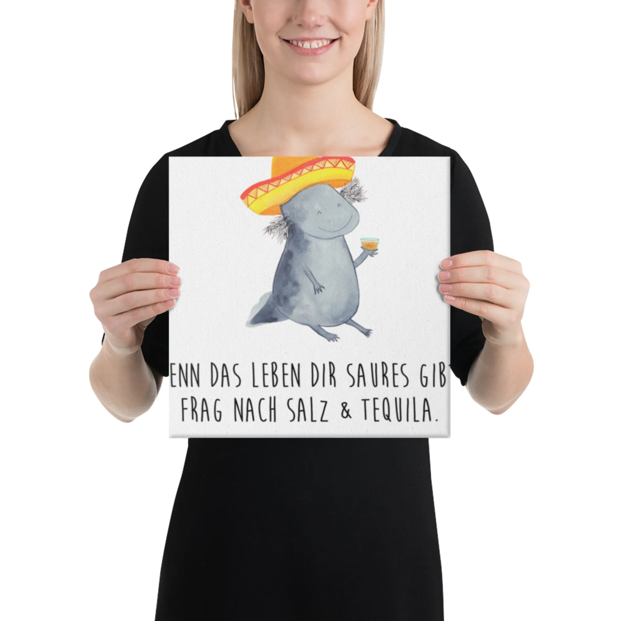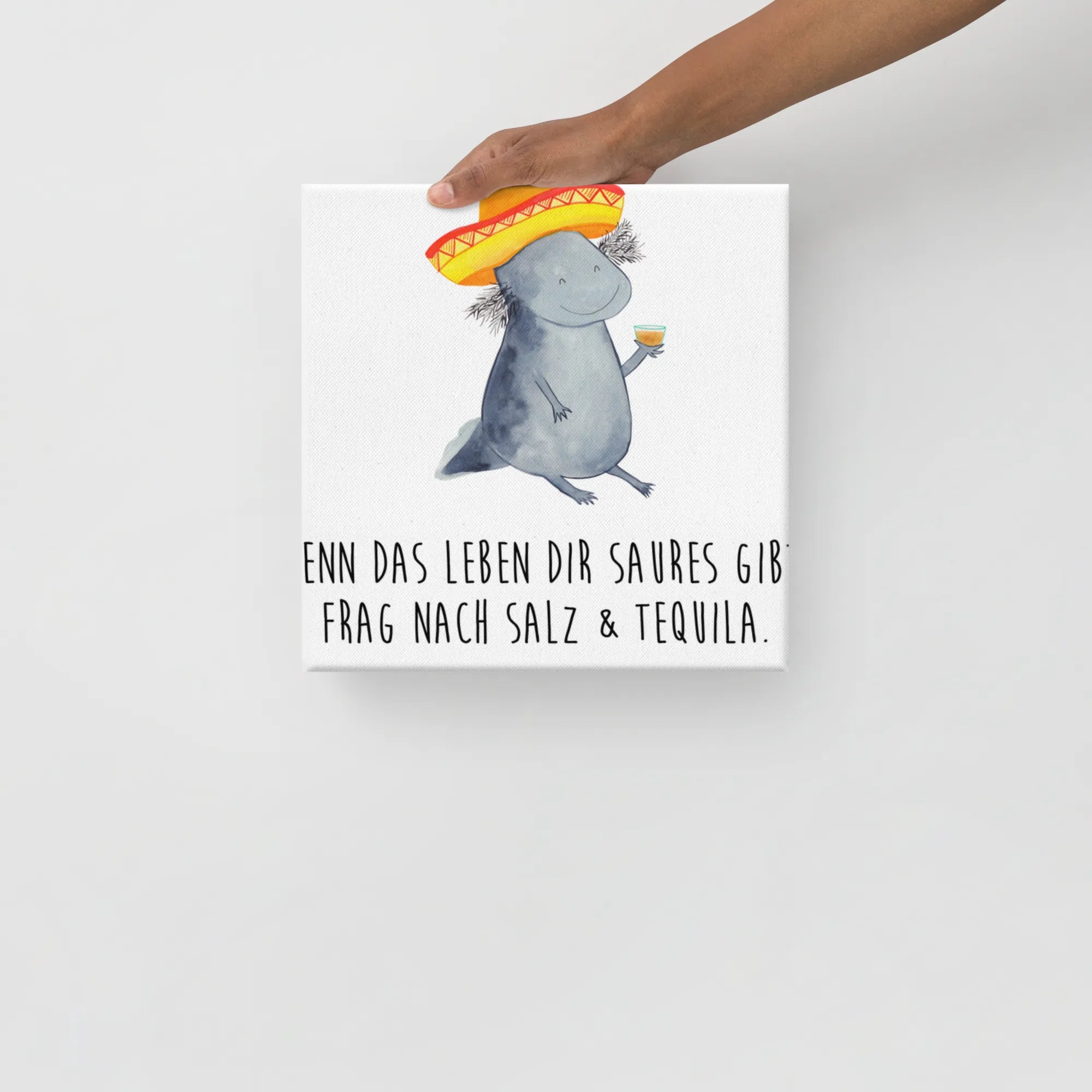 Stell dir vor, du kommst nach einem langen Tag nach Hause und wirst von einem feiernden Axolotl begrüßt! Das Leinwand Bild Axolotl Tequila von Mr. & Mrs. Panda ist die perfekte Mischung aus Niedlichkeit und mexikanischem Temperament. 🌵