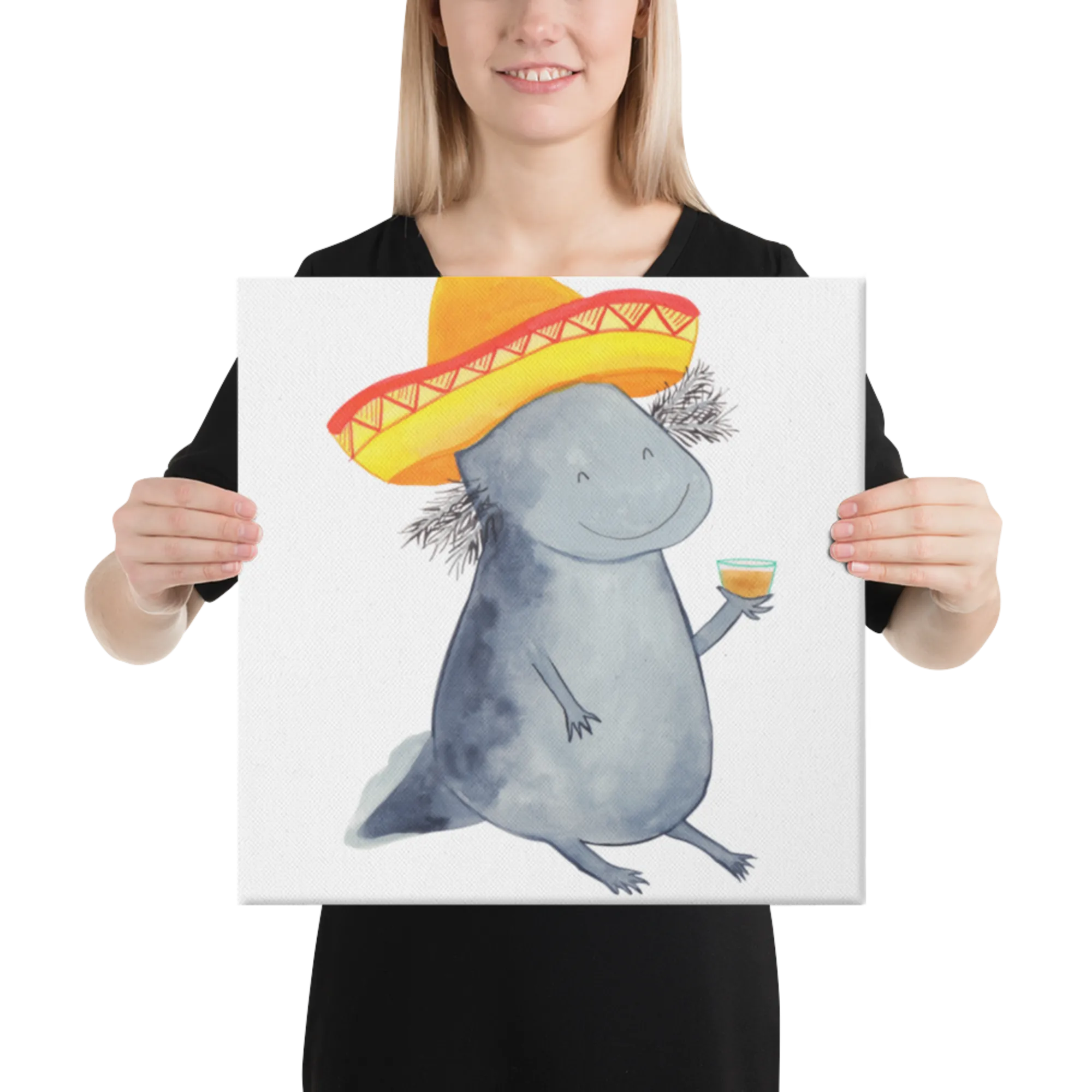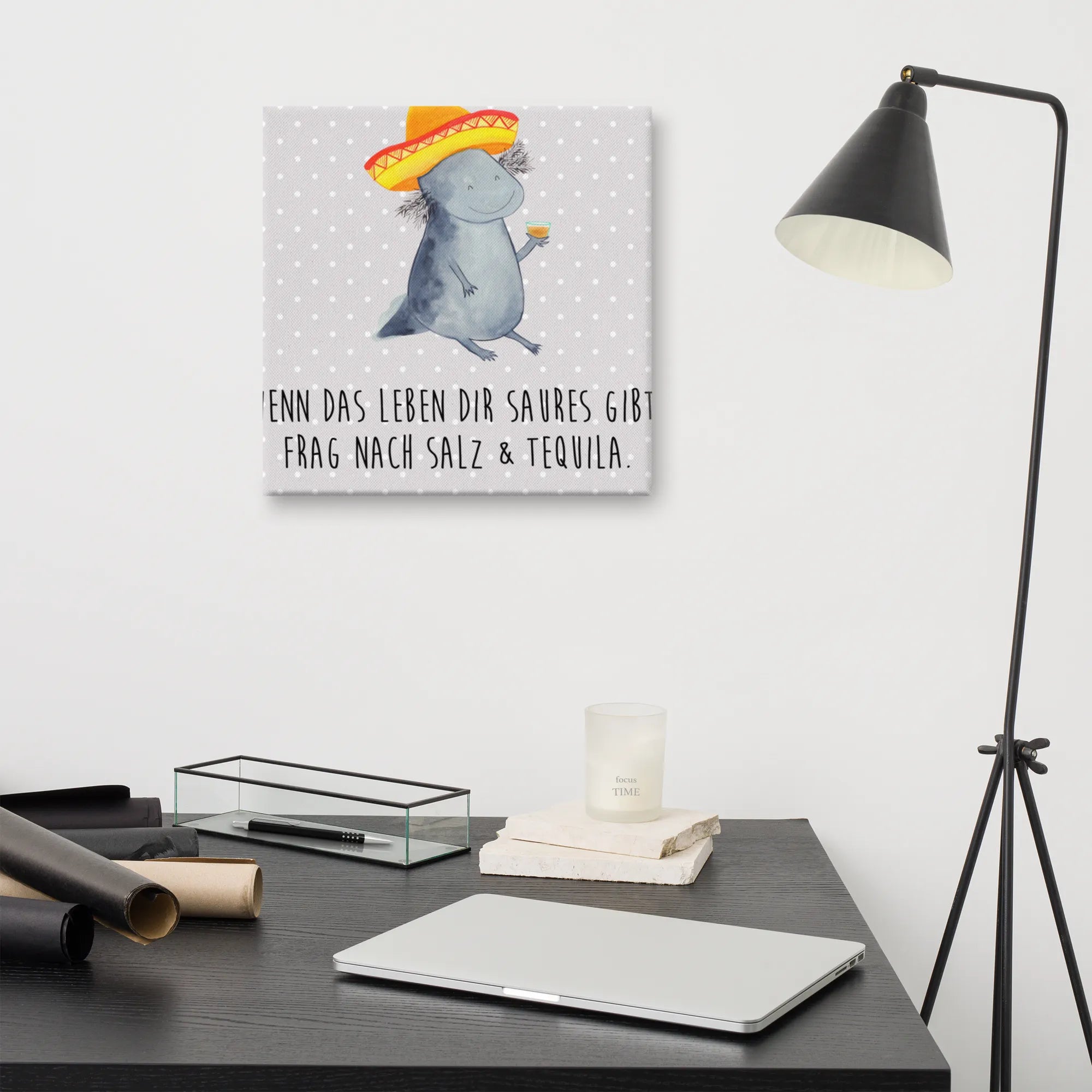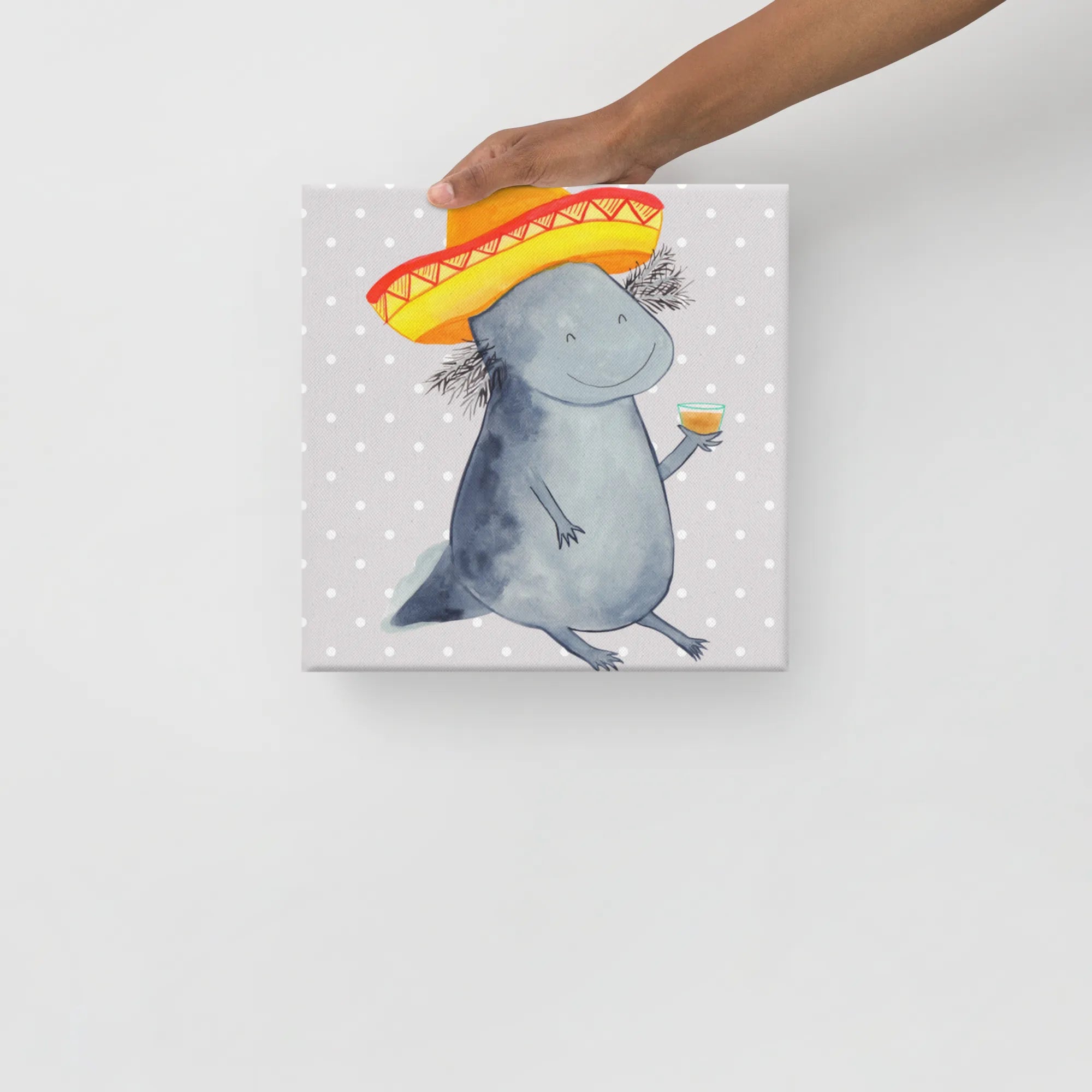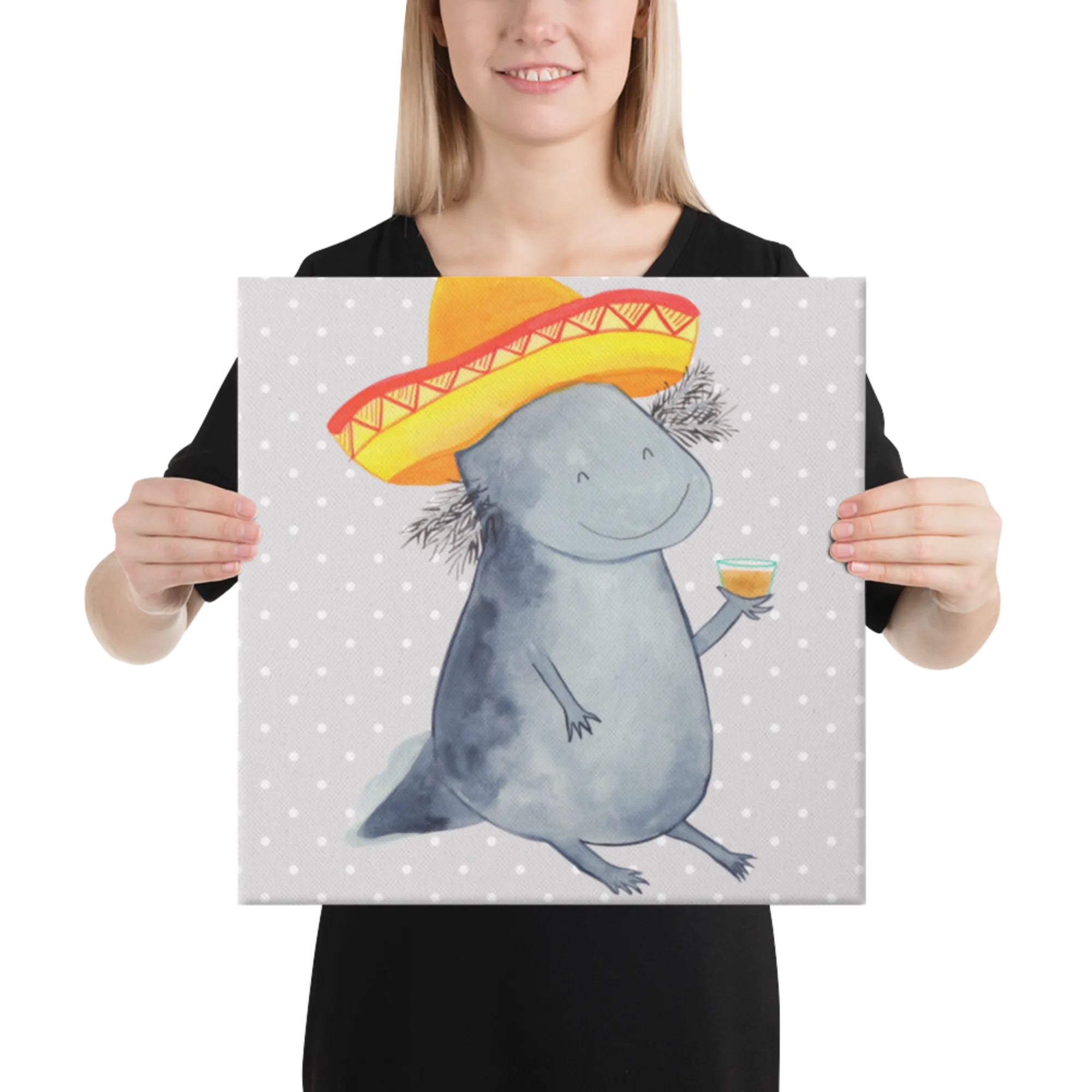 Stell dir vor, du kommst nach einem langen Tag nach Hause und wirst von einem feiernden Axolotl begrüßt! Das Leinwand Bild Axolotl Tequila von Mr. & Mrs. Panda ist die perfekte Mischung aus Niedlichkeit und mexikanischem Temperament. 🌵