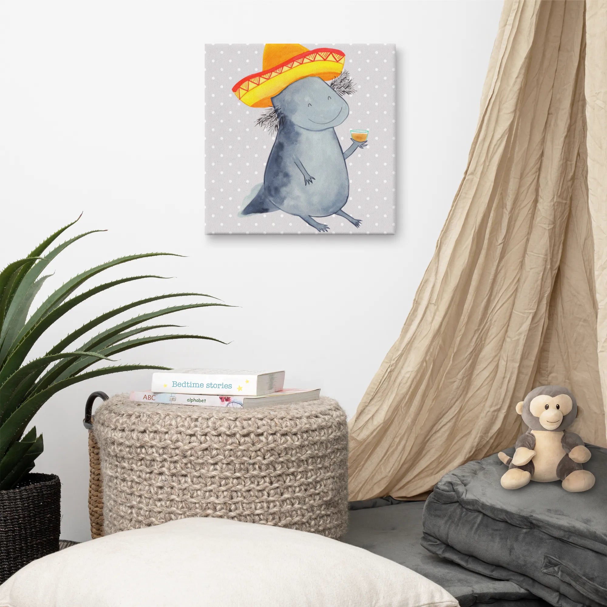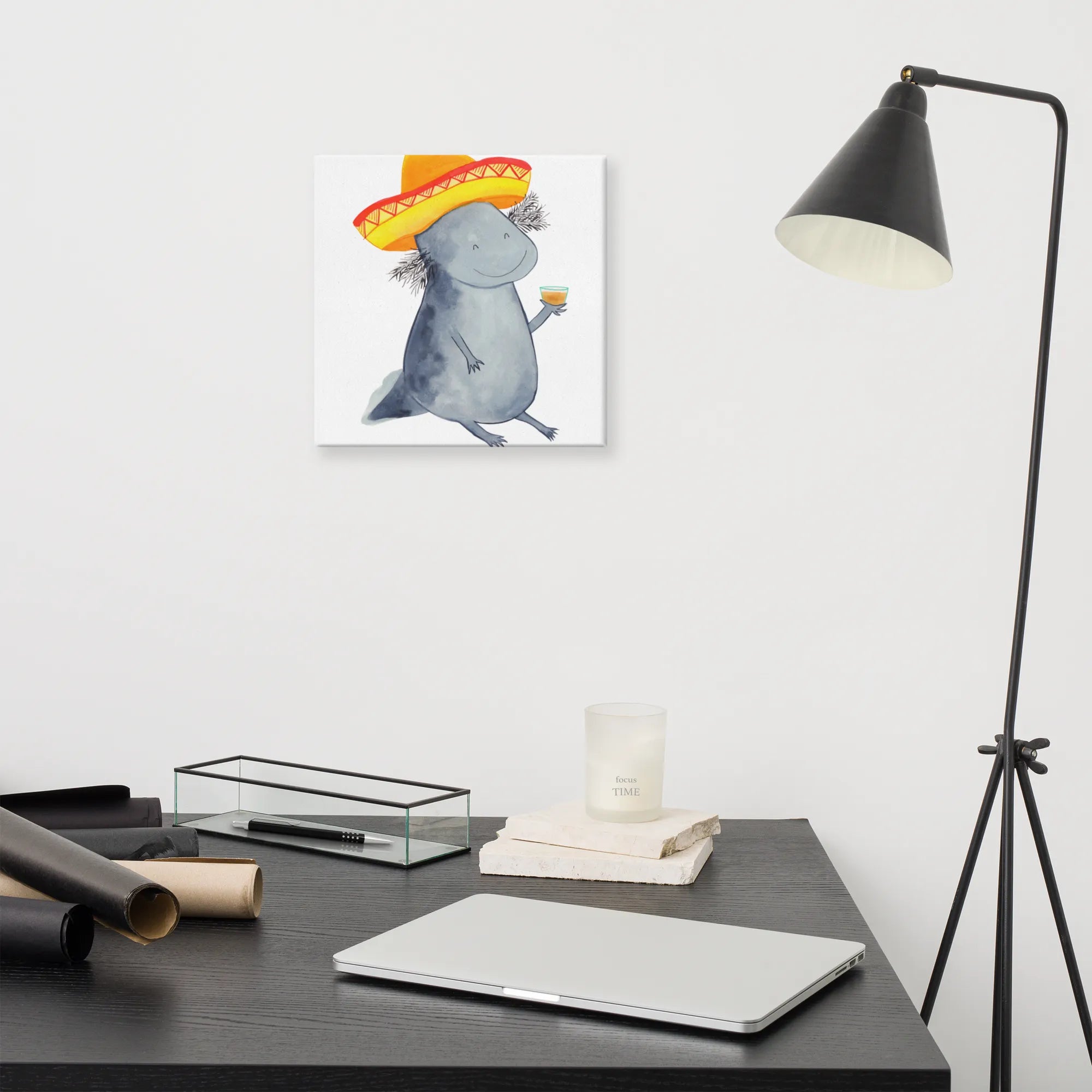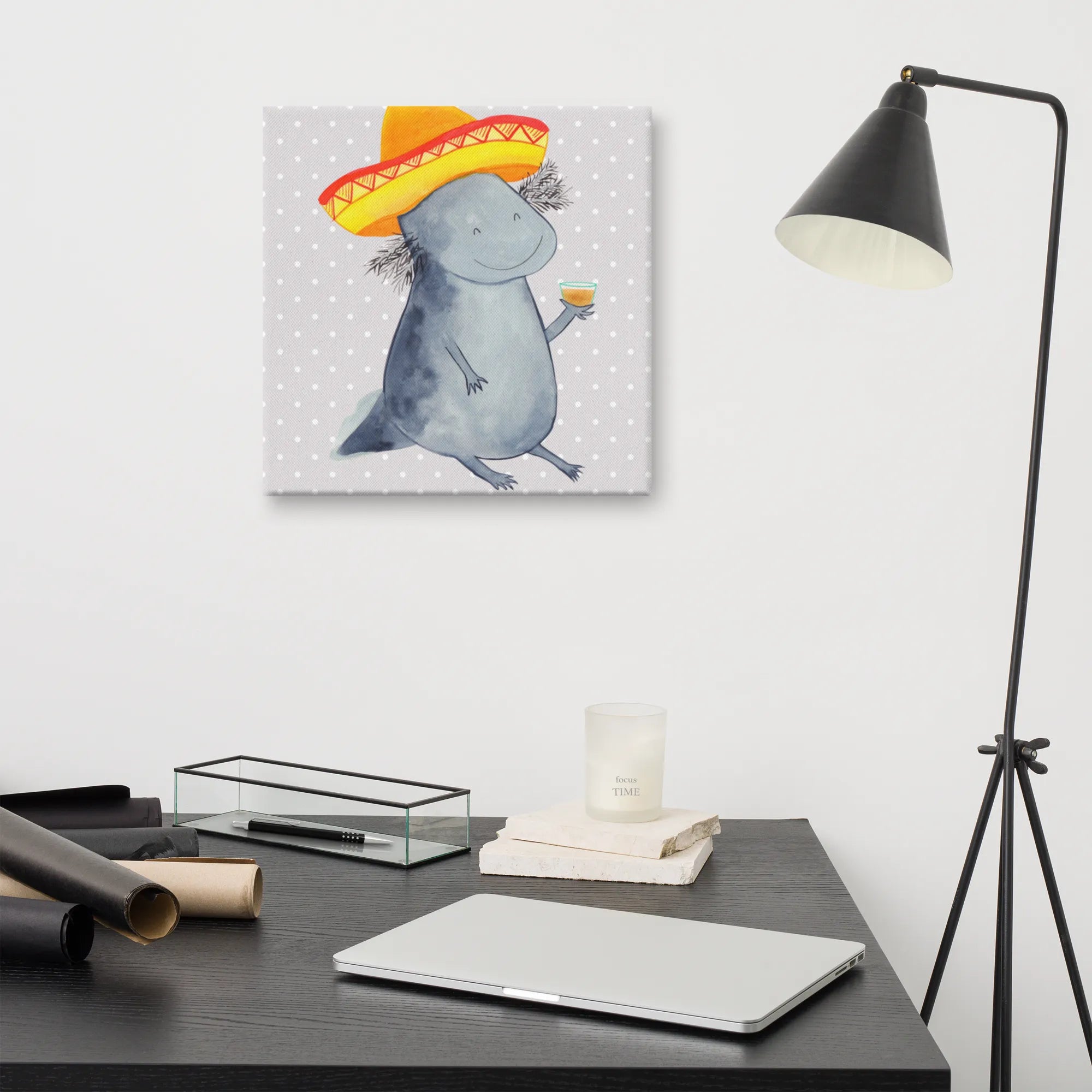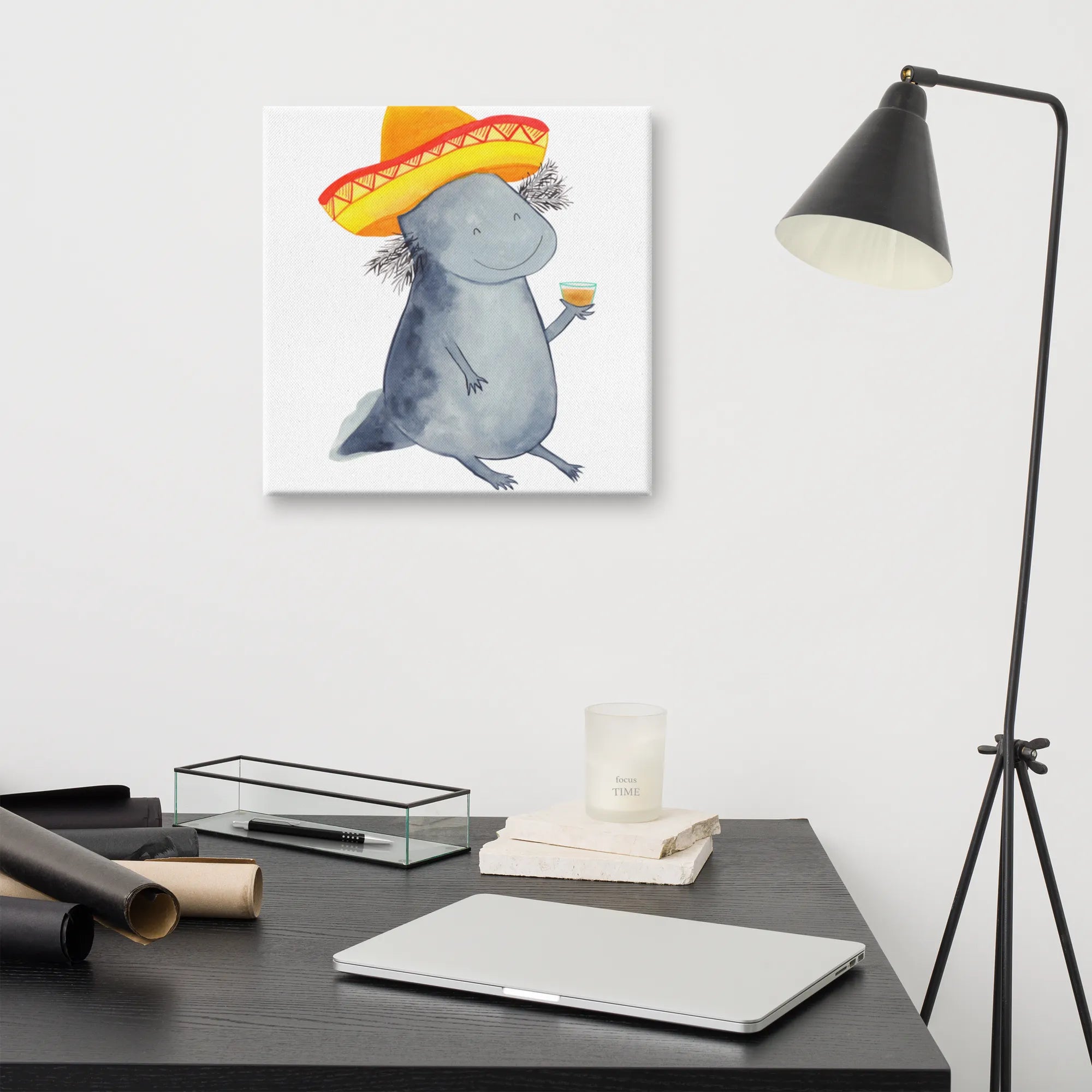 Stell dir vor, du kommst nach einem langen Tag nach Hause und wirst von einem feiernden Axolotl begrüßt! Das Leinwand Bild Axolotl Tequila von Mr. & Mrs. Panda ist die perfekte Mischung aus Niedlichkeit und mexikanischem Temperament. 🌵