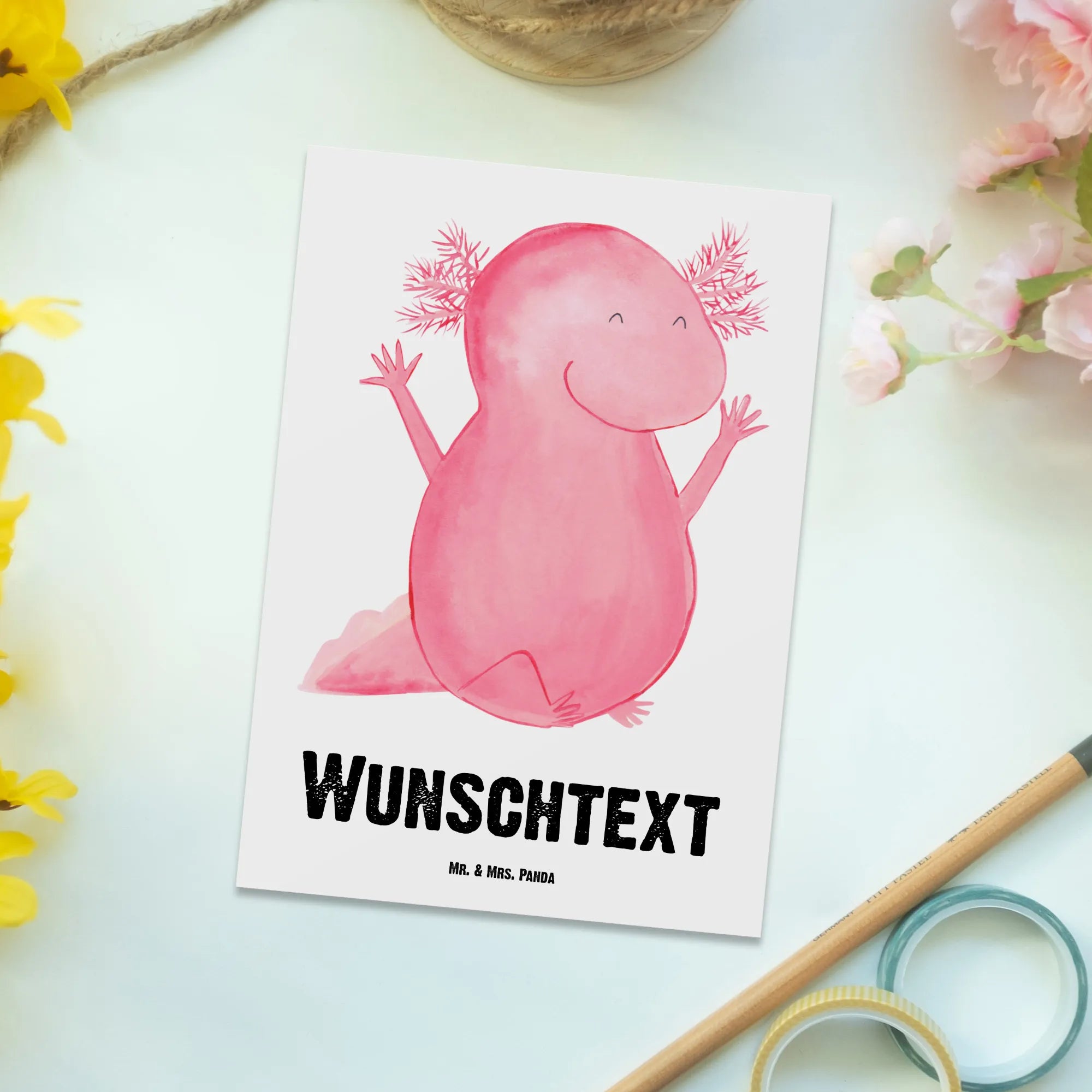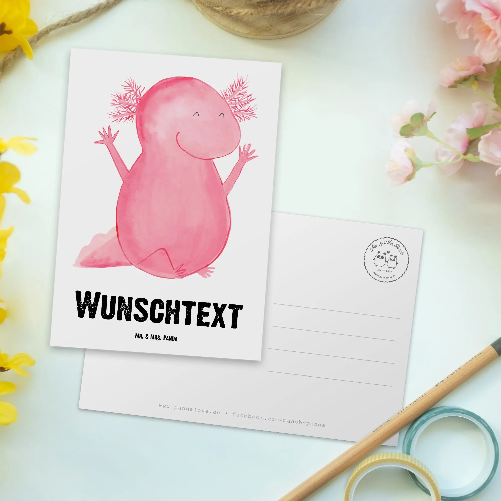 Entdecke die wunderbare personalisierte Postkarte "Axolotl Hurra" von Mr. & Mrs. Panda!