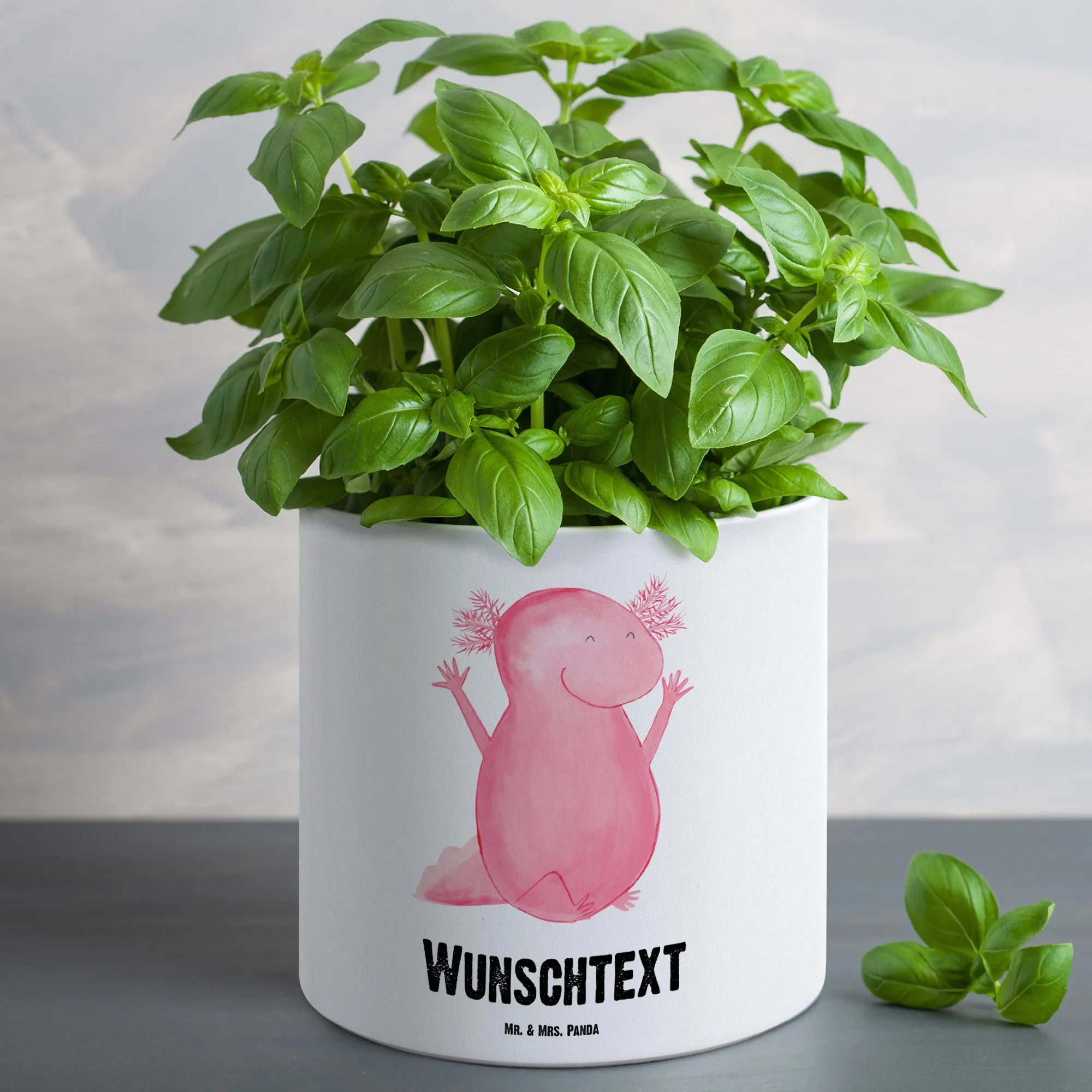 Personalisierter XL Blumentopf Axolotl Hurra – Mr. & Mrs. Panda