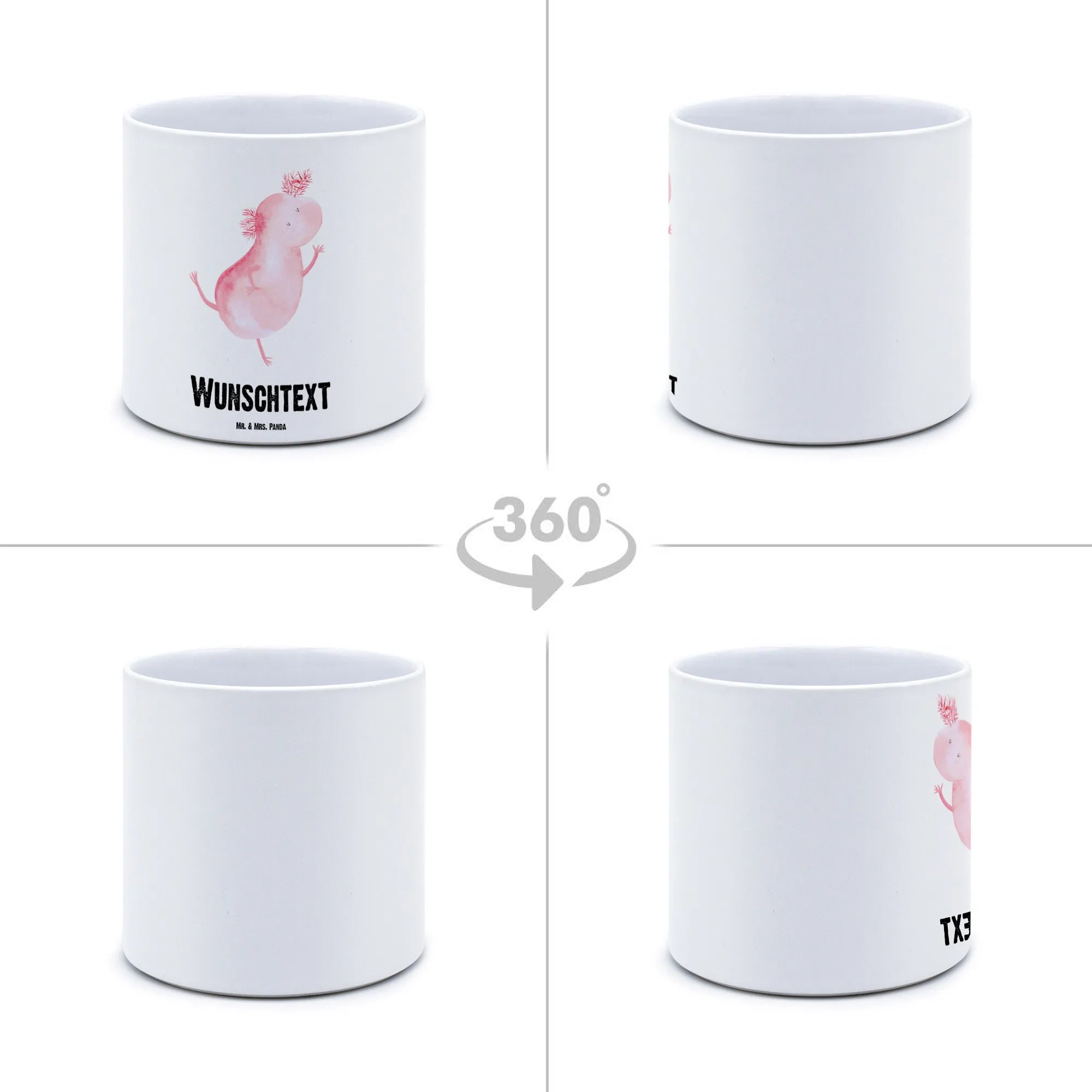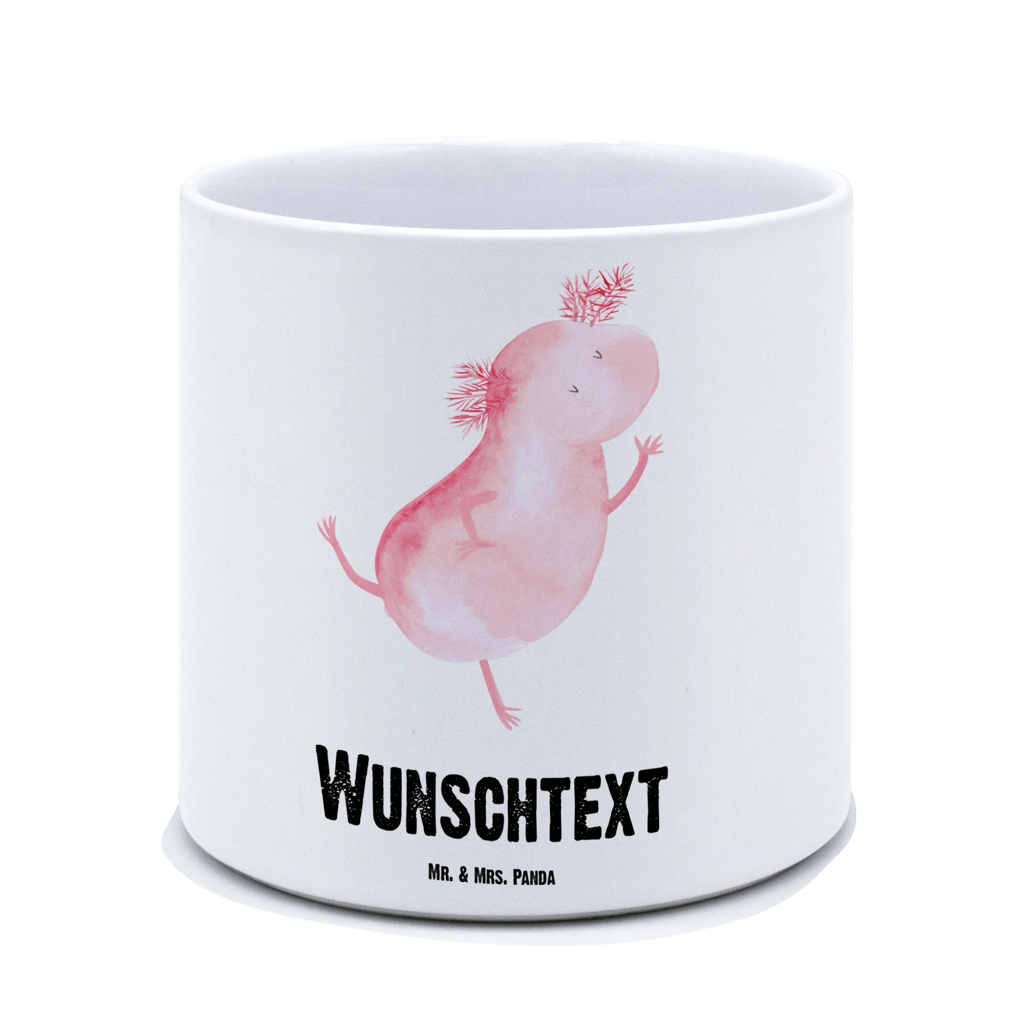Personalisierter XL Blumentopf „Axolotl tanzt“ – ein fröhliches Geschenk von Mr. & Mrs. Panda für Pflanzenliebhaberinnen und -liebhaber. 🐾 Unser niedlicher Axolotl tanzt durchs Leben und bringt mit gelben und grünen Farbtönen sofort gute Laune in dein Zuhause. Nutzer können den Blumentopf mit ihrem Wunschnamen und Wunschtext personalisieren. Der liebevolle Slogan „Je größer der Dachschaden, desto freier der Blick auf die Sterne...“ rundet das Motiv humorvoll ab.