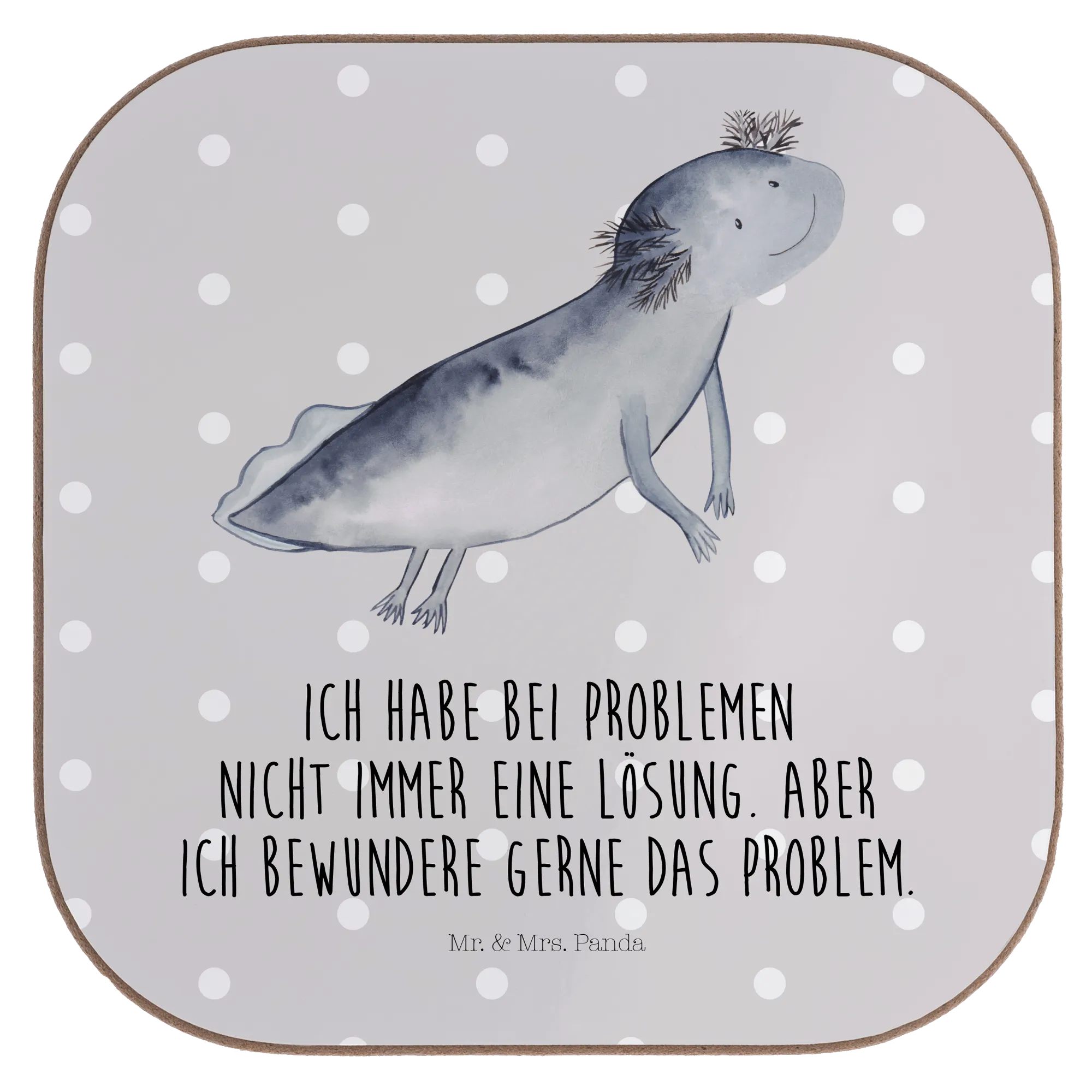 Untersetzer Axolotl Schwimmen - mit Spruch - Grau Pastell