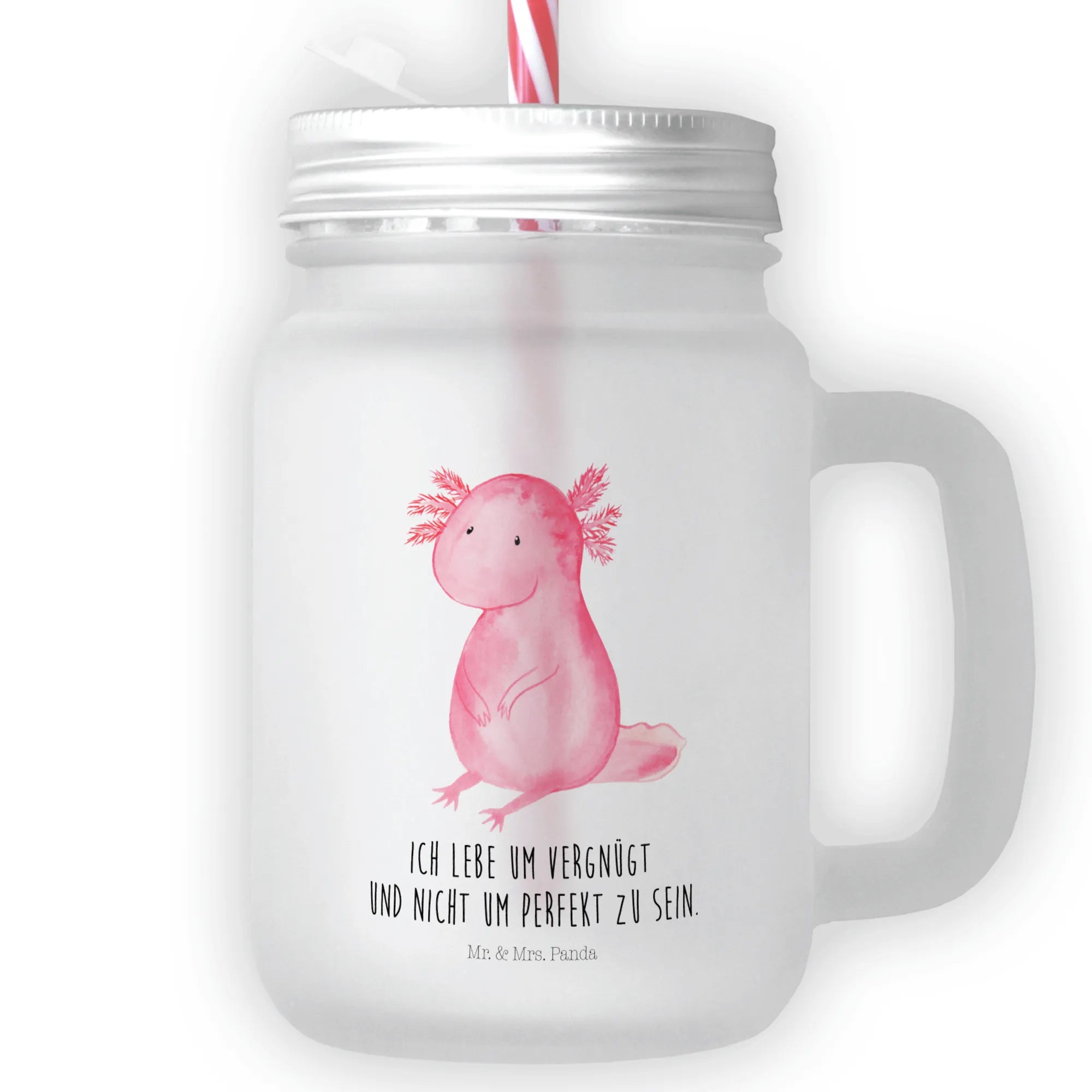 Das Trinkglas Mason Jar mit dem niedlichen Axolotl-Motiv von Mr. & Mrs. Panda ist das perfekte Geschenk für alle, die ein wenig Freude und Lebensweisheit in ihr Leben bringen möchten.