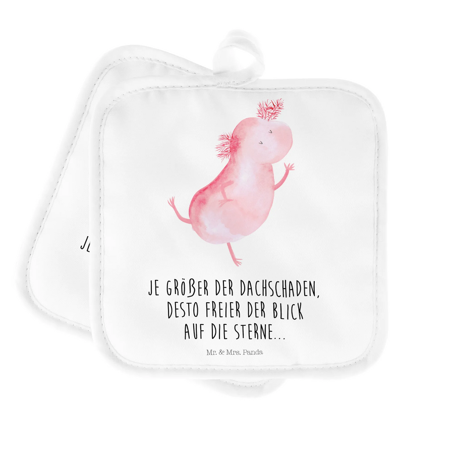 2er Set Topflappen Axolotl Tanzen - mit Spruch - Weiß
