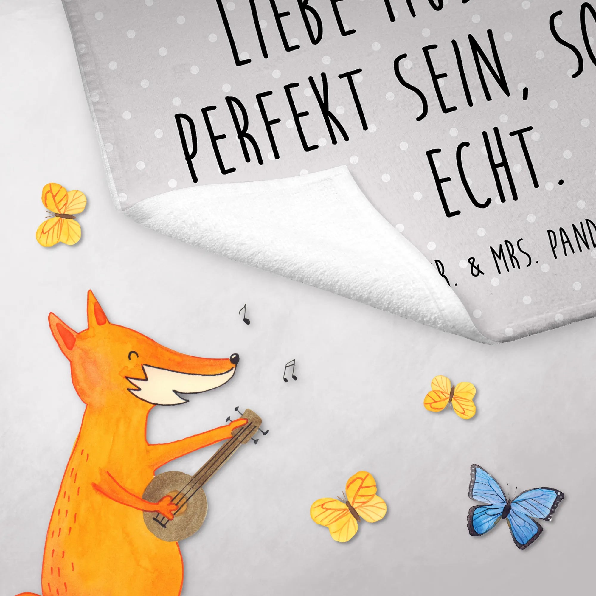 Mit seinen bunten, strahlenden Farben bringt es Freude und Farbe in jedes Gästebad oder Badezimmer. Ob als Geschenk für deinen Freund, Verlobten oder Ehemann zum Valentinstag oder Jahrestag - dieses Handtuch ist ein liebevoller Liebesbeweis. Die künstlerische Gestaltung von Mrs. Panda wird dich sofort in ihren Bann ziehen – die beiden Axolotl halten sich an den Händen, umgeben von einer romantischen Atmosphäre und dem Spruch: "Liebe muss nicht perfekt sein, sondern echt."