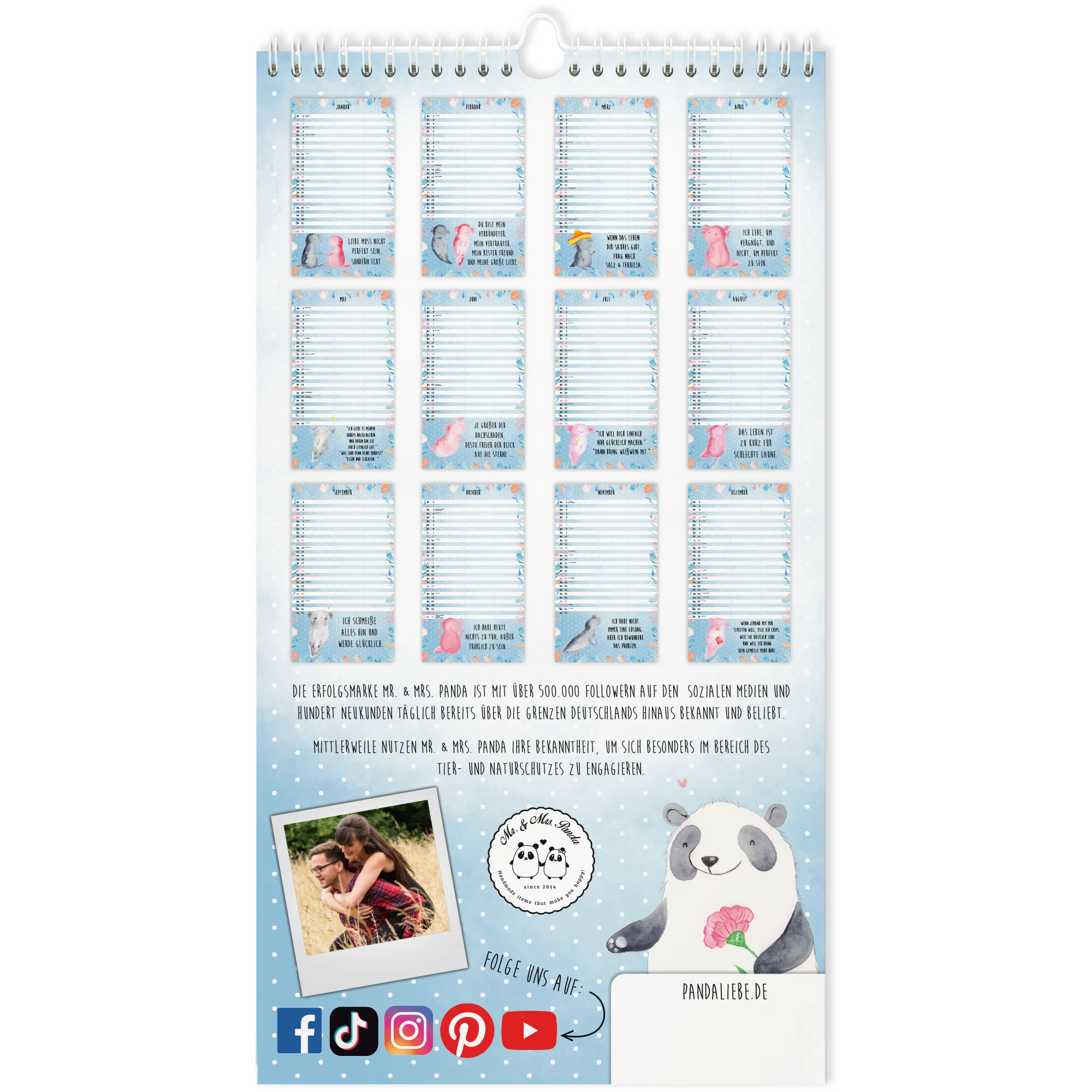 Verliebt, verlobt, und immer perfekt organisiert! Der Mr. & Mrs. Panda Partnerkalender in DIN A3 Format (420 mm x 297 mm) macht jeden Monat zu einem kleinen Abenteuer. Mit lebensfrohen Sprüchen und zauberhaften Motiven, exklusiv von unseren Künstlern entworfen, wird jede Seite zur Inspiration. Dieser Wandkalender für zwei auf hochwertigem Premiumpapier gedruckt, unterstreicht mit seiner edlen Glanzfolie die Besonderheit eurer Verbindung. Drei Spalten sorgen dafür, dass ihr kein wichtiges Datum mehr vergesst. Ob gemeinsame Erlebnisse oder individuelle Termine – hier findet alles seinen Platz. Ein gemeinsamer Kalender, der Liebe in jedem Detail zeigt und euer Jahr unvergesslich macht.