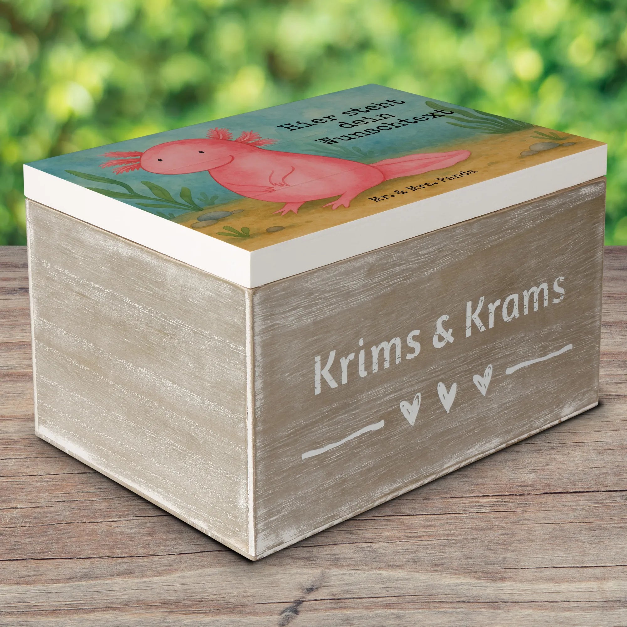 Personalisierte Holzkiste Axolotl Niedlich Design - 19 x 12 cm