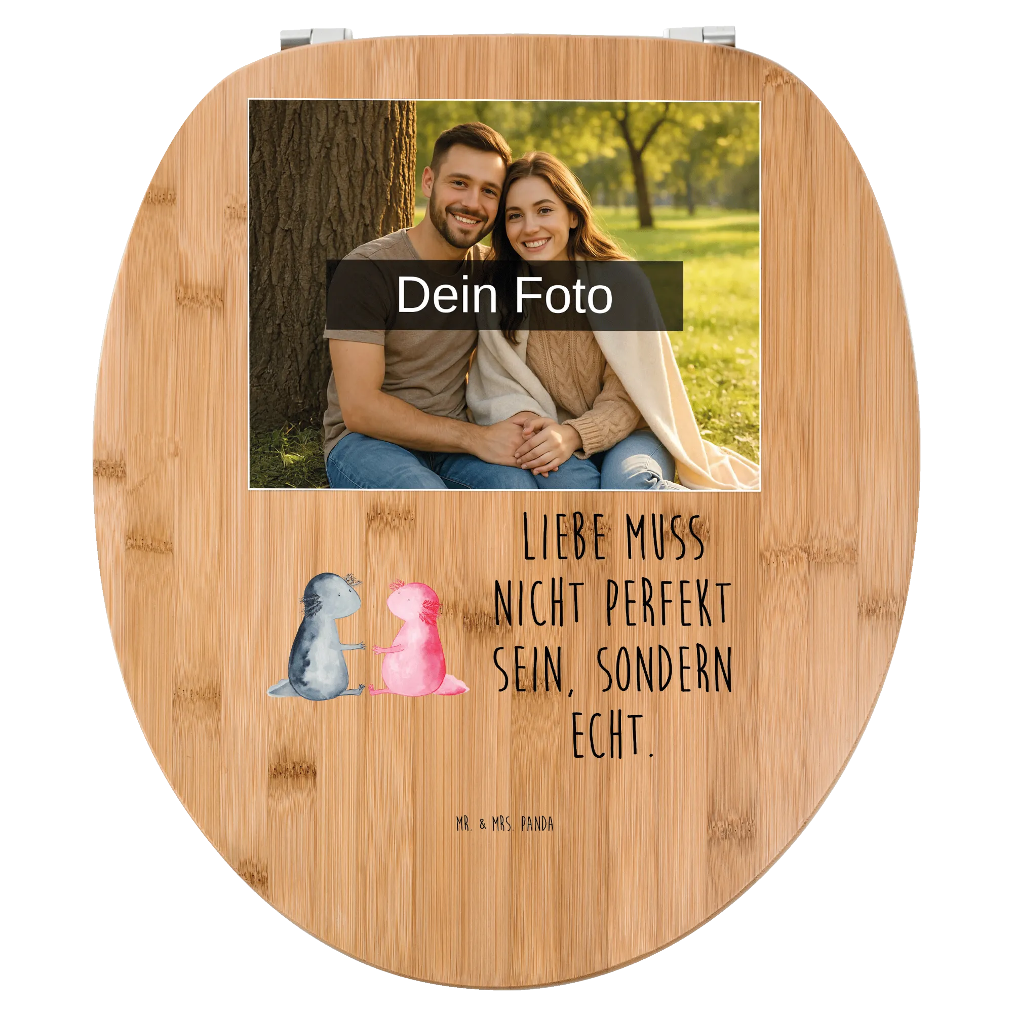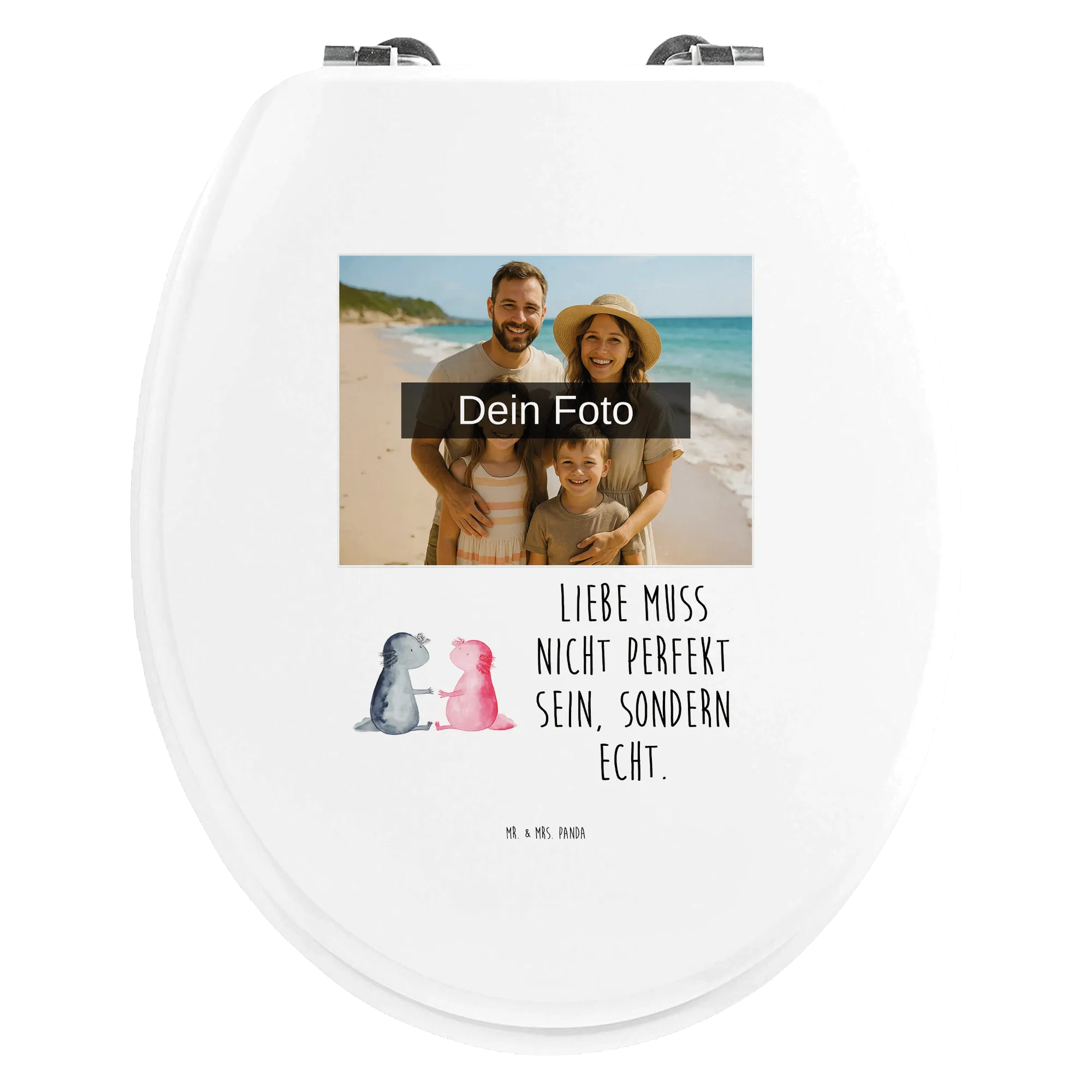 Personalisierter Foto WC Sitz Motiv Axolotl Liebe - Hartfaser Holzkern Weiß