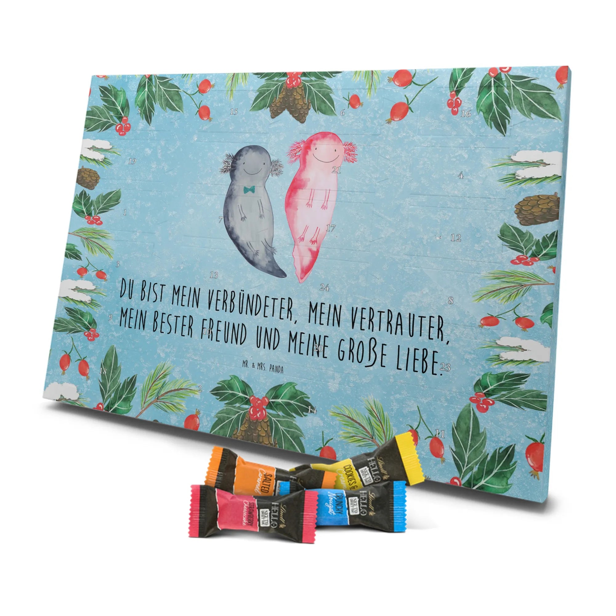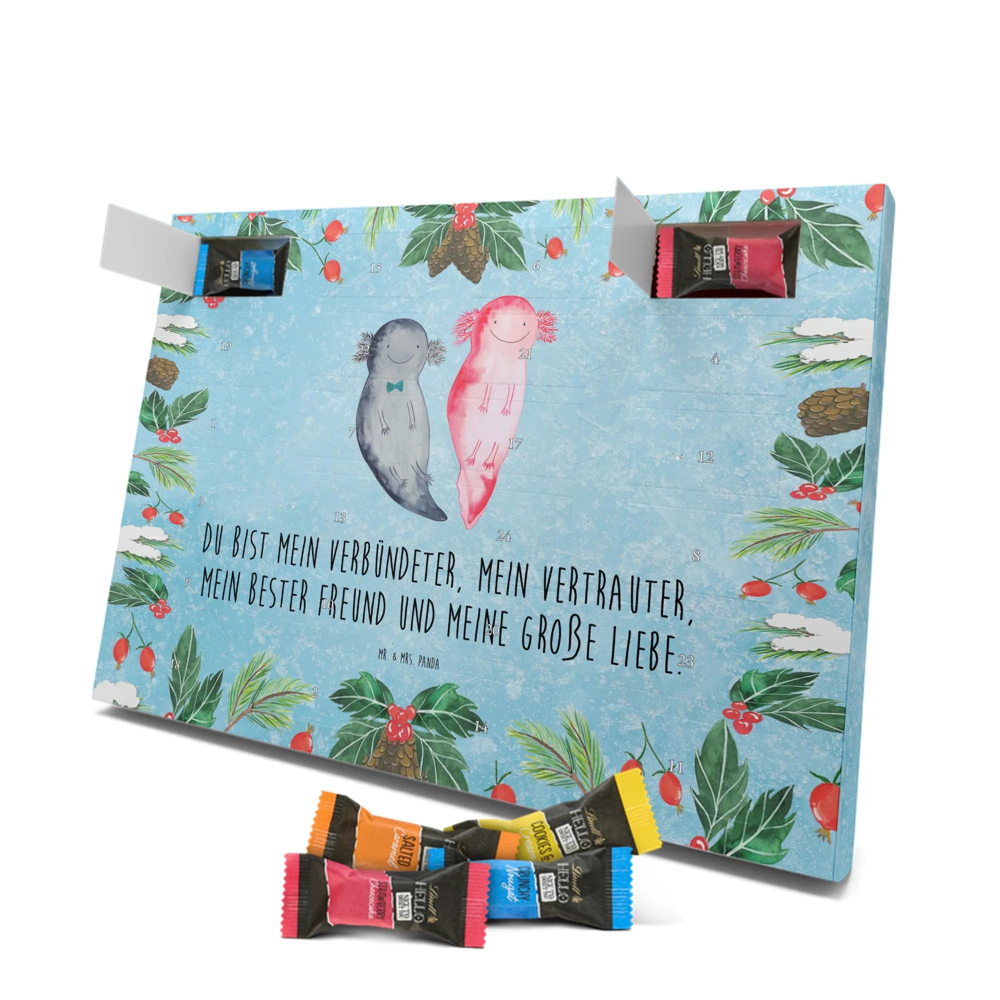 pralinen adventskalender Axolotl Freundin - Classic - mit Spruch - Eisblau