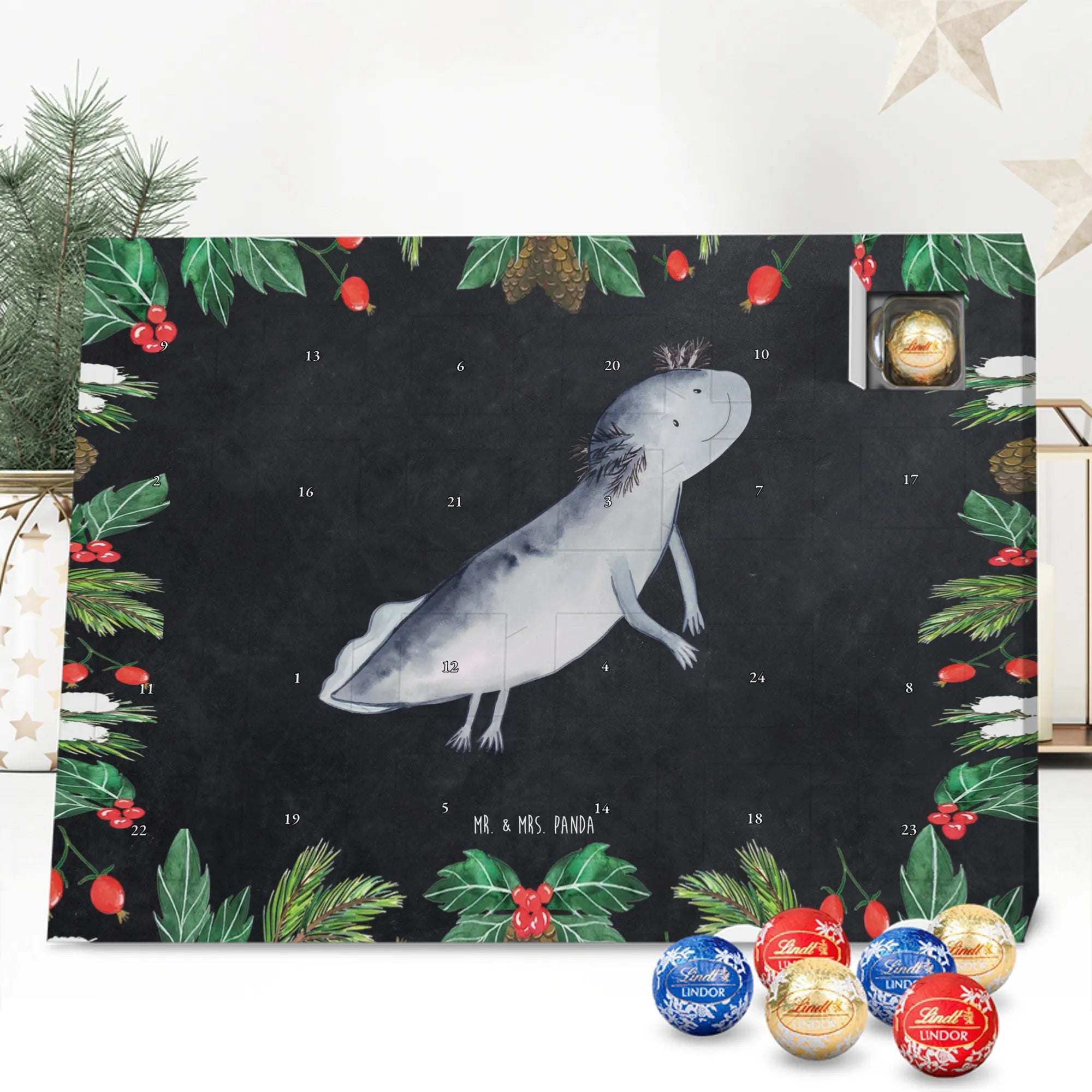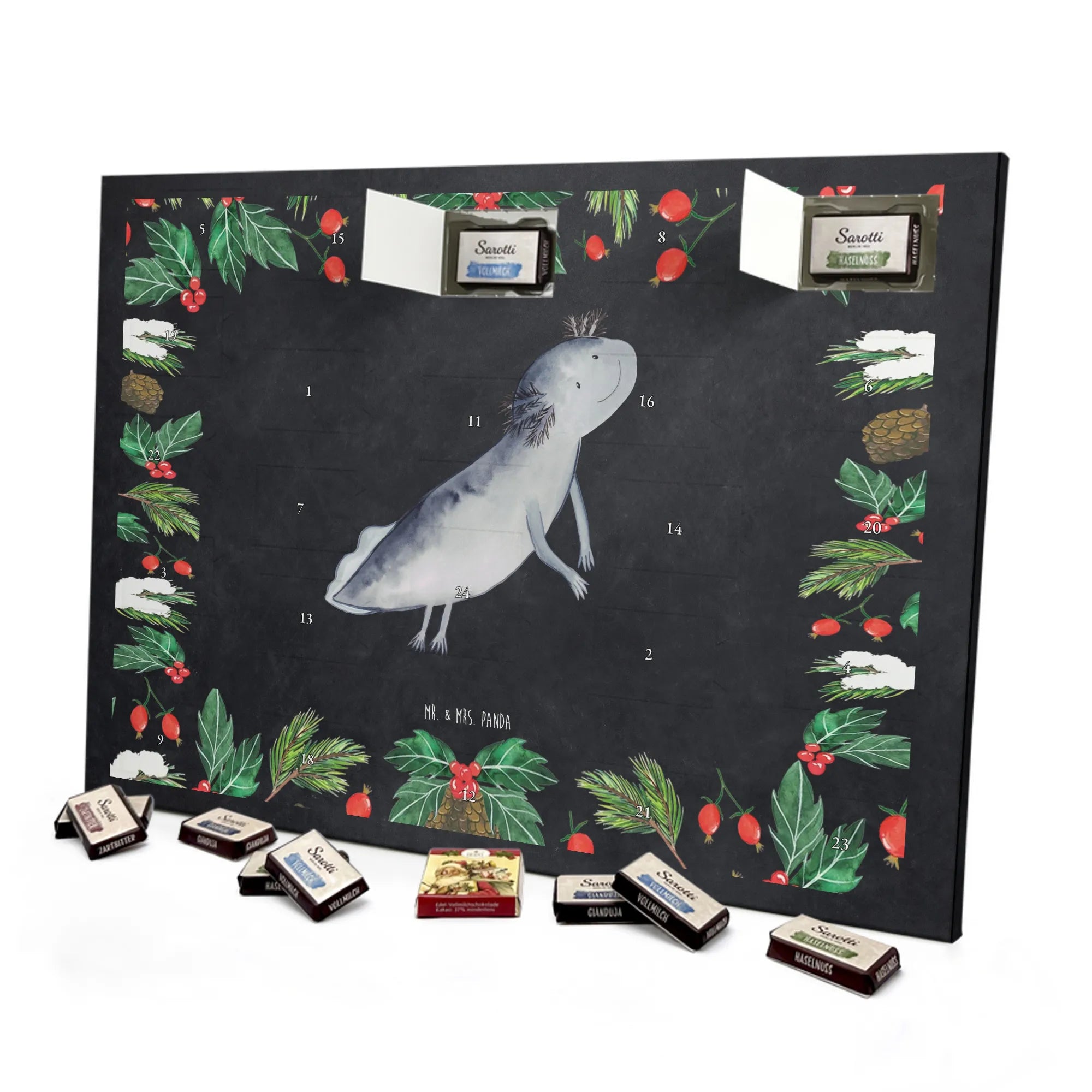 adventskalender pralinen Axolotl Schwimmen - Classic - mit Spruch - Eisblau