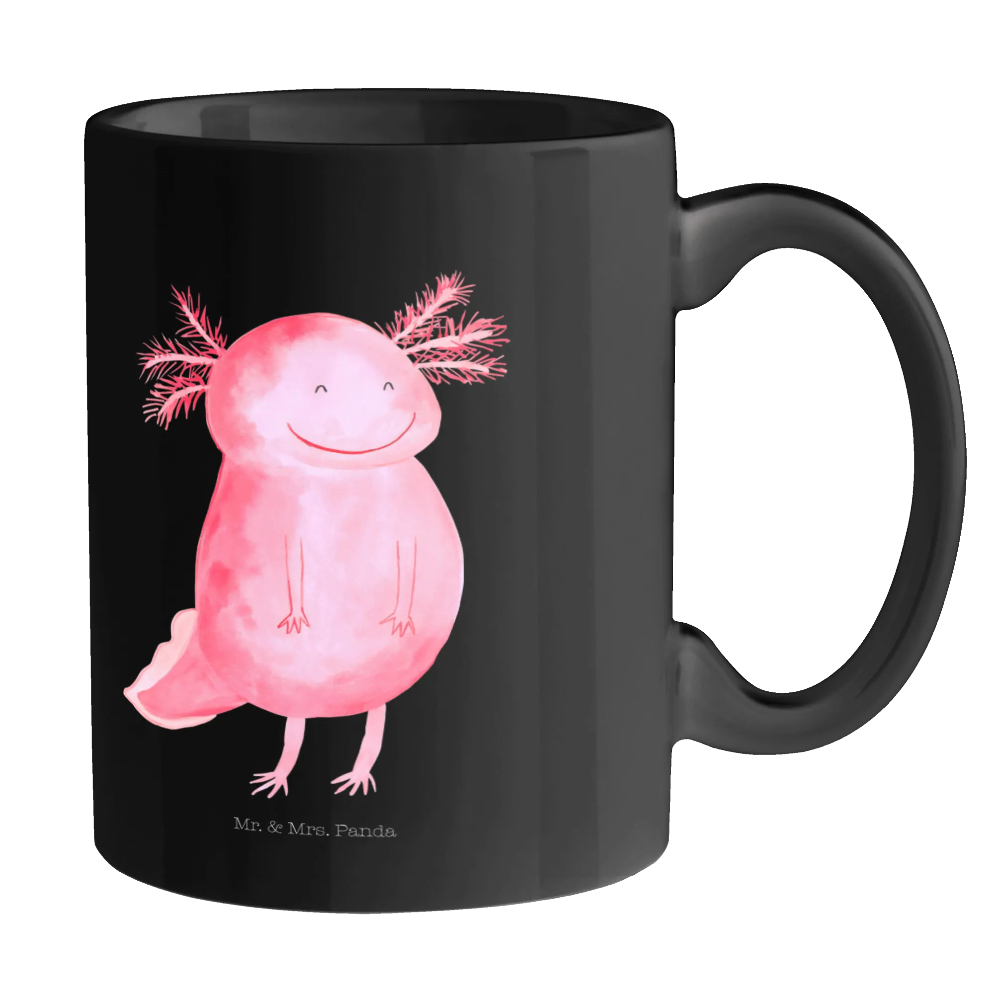 Tasse Axolotl Glücklich - ohne Spruch - Keramik Schwarz - Schwarz