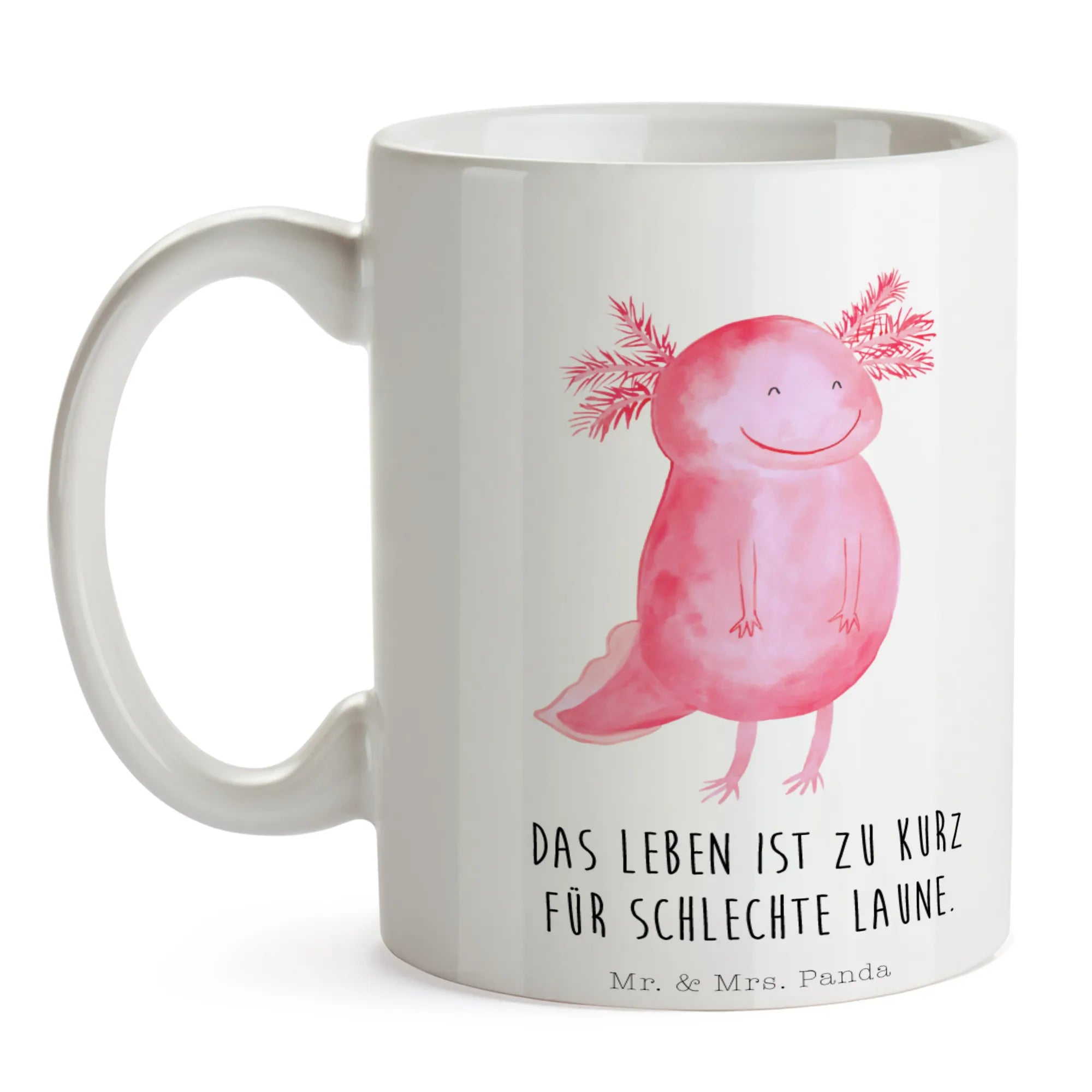 Entdecke die wundervolle Axolotl glücklich Tasse von Mr. & Mrs. Panda – der perfekte Begleiter für all Deine Kaffeepausen! Diese wunderschöne spülmaschinenfeste Keramiktasse ist nicht nur praktisch, sondern auch ein echter Blickfang. Mit dem süßen Axolotl Motiv strahlt sie Freude und gute Laune aus und erinnert Dich daran, dass das Leben zu kurz für schlechte Laune ist. Die Tasse hat eine Füllmenge von 325 ml und eignet sich bestens für Deinen Kaffee, Tee oder Cappuccino. Jeder Schluck wird mit dieser Designer Tasse zu einem kleinen Erlebnis.