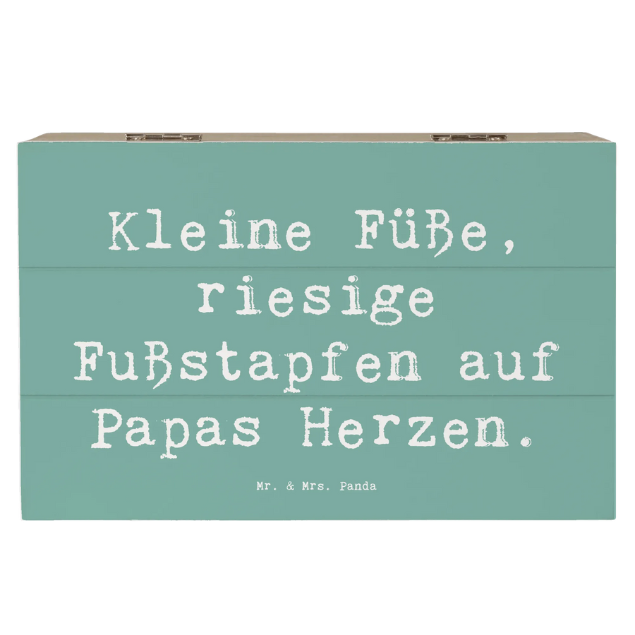 Die wunderschöne Holzkiste "Kleine Füße, riesige Fußstapfen auf Papas Herzen" aus der Kollektion Familie & Verwandte von Mr. & Mrs. Panda ist das perfekte Geschenk für frischgebackene Eltern zur Geburt ihres Babys oder für besondere Anlässe wie die Taufe. Diese Erinnerungskiste ist nicht nur praktisch, sondern auch ein liebevolles Andenken, das die ersten Meilensteine im Leben Deines kleinen Wunders festhält.