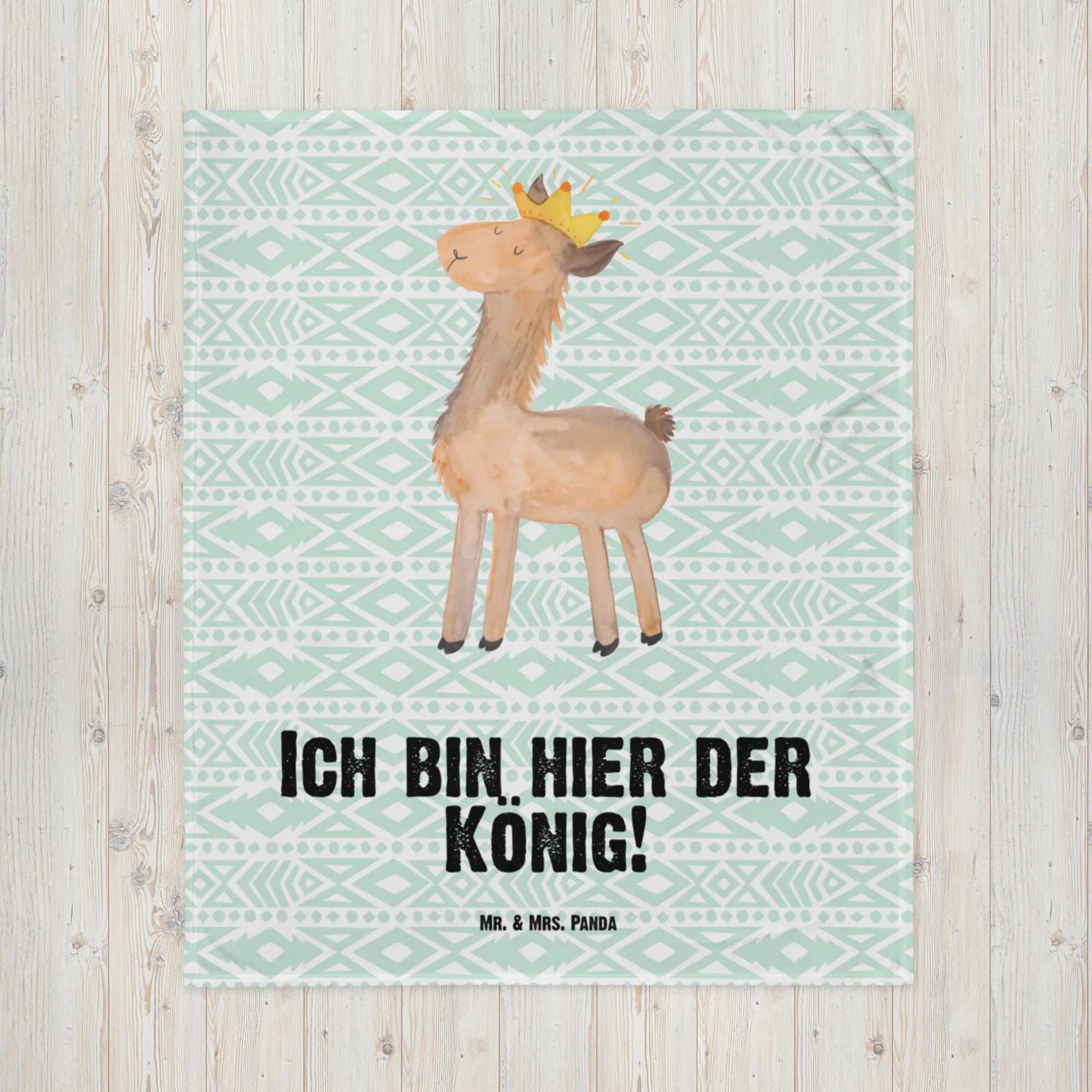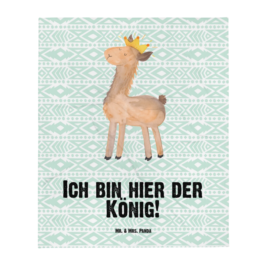 Babydecke Lama König - mit Spruch - Aztekenblau