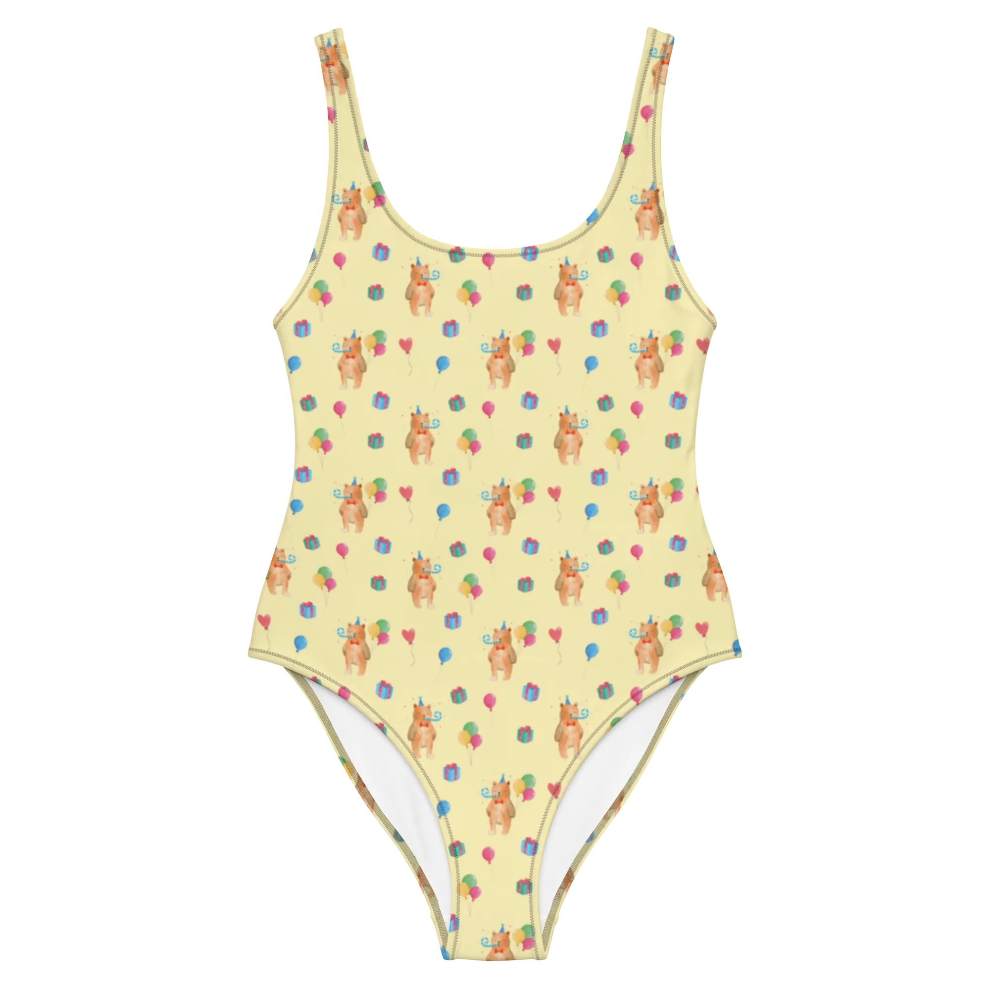 Wähle den "Birthday Bär" Badeanzug und bringe jede Menge Freude in deinen Sommer! Die fröhlichen Motive und der hohe Tragekomfort werden dich begeistern. Das ist nicht nur ein Badeanzug, das ist ein Stück Lebensfreude, das jeder tragen sollte!