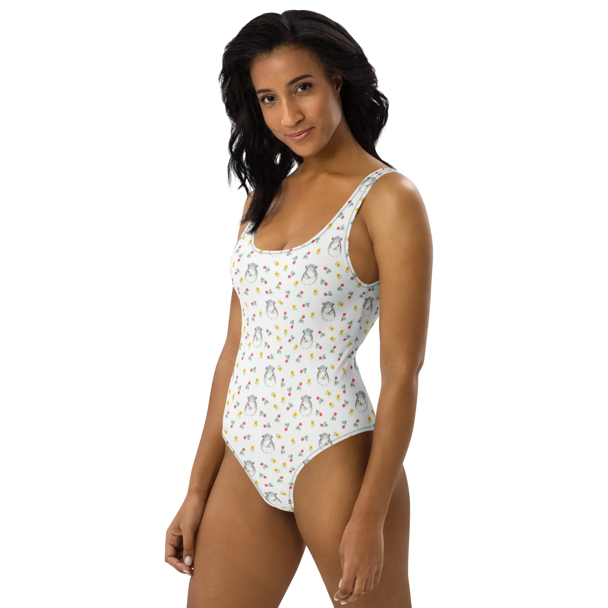Entdecke den bezaubernden Badeanzug mit dem niedlichen Chinchilla mit Blume aus der Small World Kollektion! Dieser fantastische Rückenfreie Badeanzug ist nicht nur ein echter Hingucker, sondern bringt auch die perfekte Portion Gute Laune mit sich.